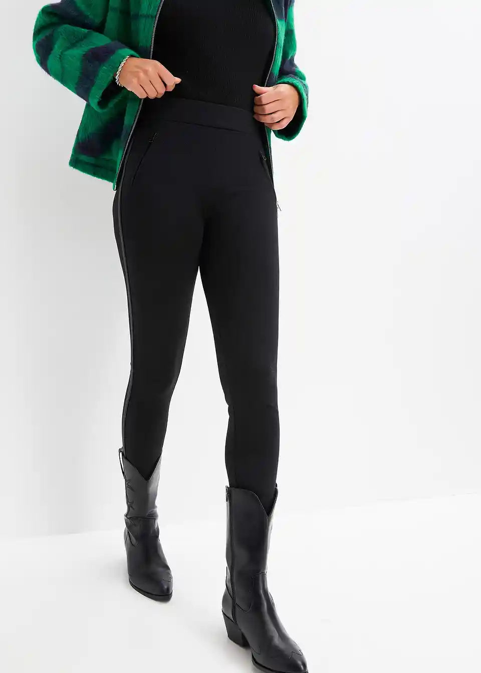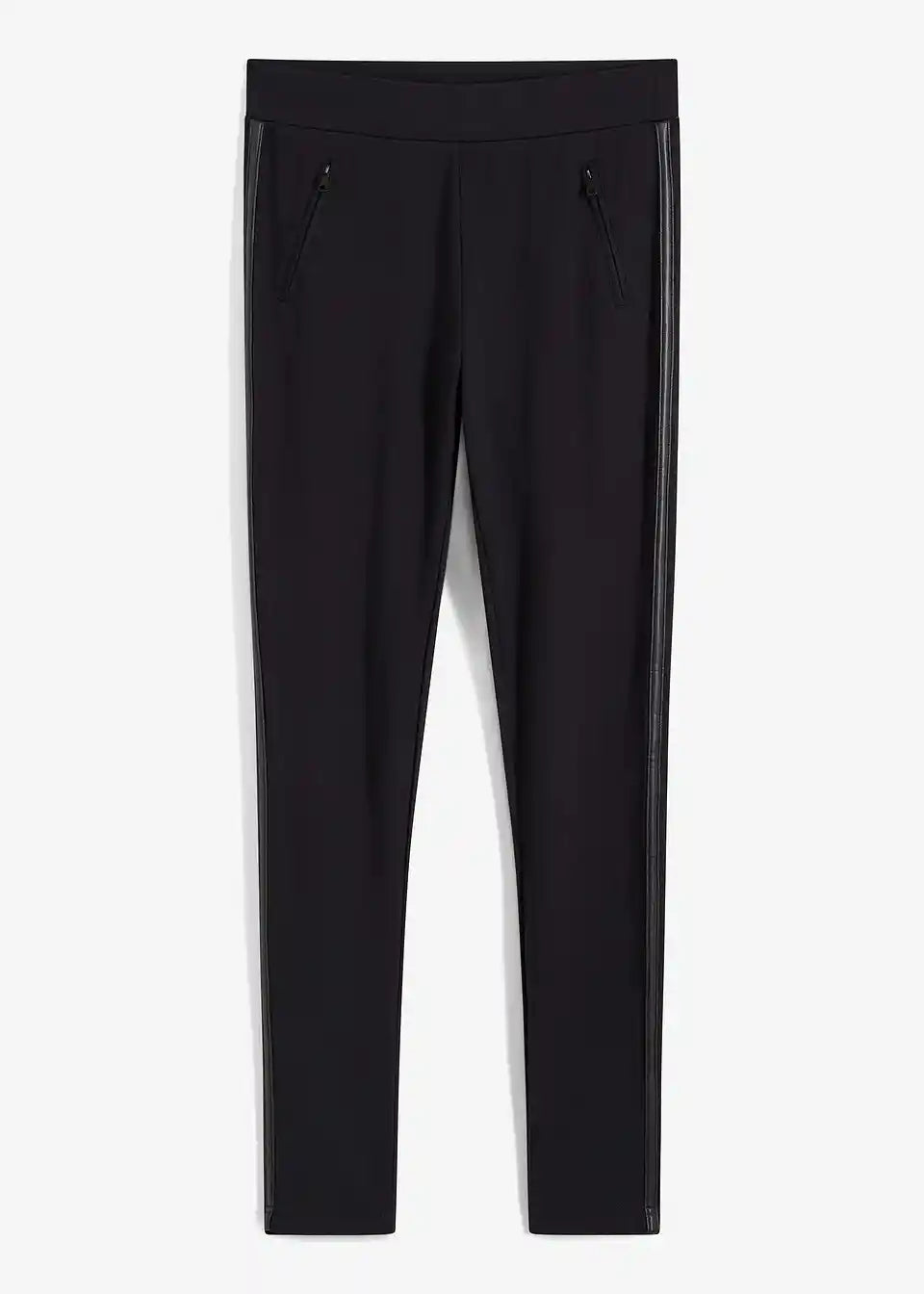 Modische Punto-Leggings mit stylischem Lederimitateinsatz.