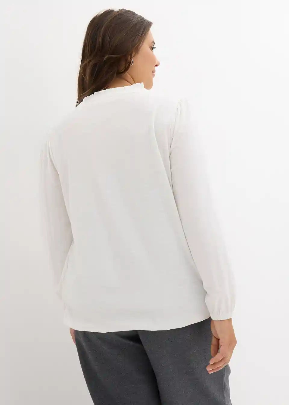 Flammgarn-Langarmshirt mit Rüschen