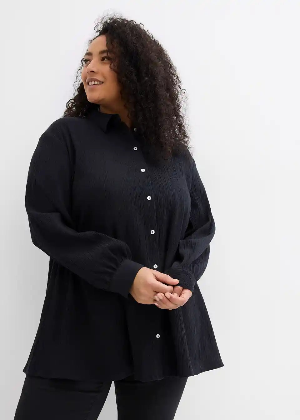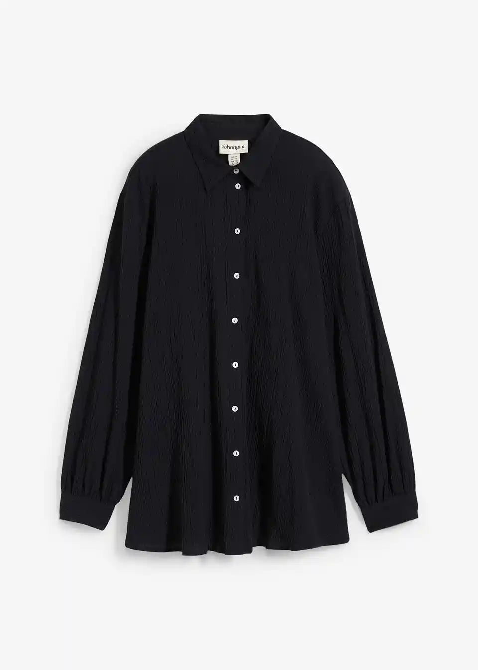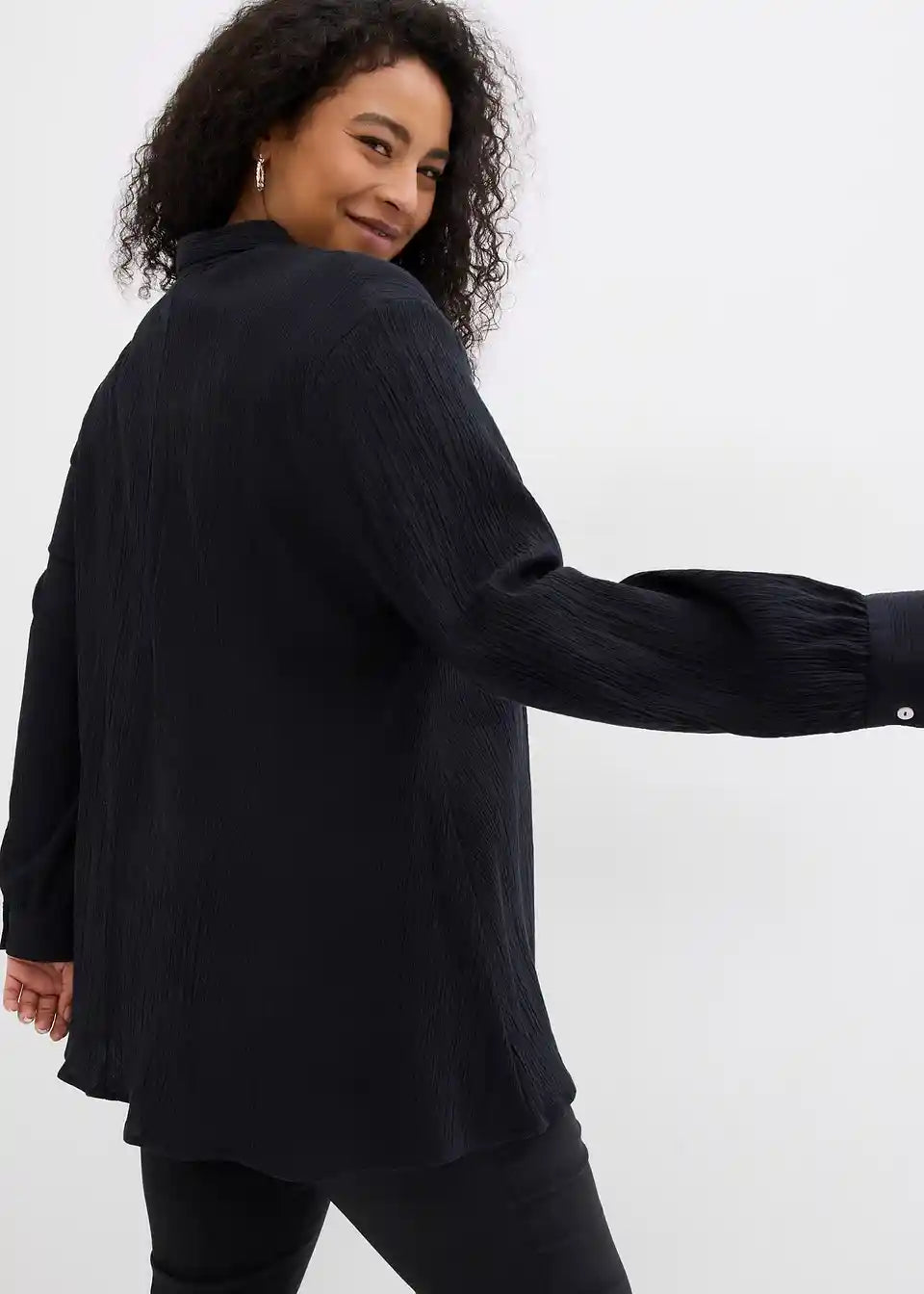 Longbluse aus Crincle mit Kragen und Knopfleiste