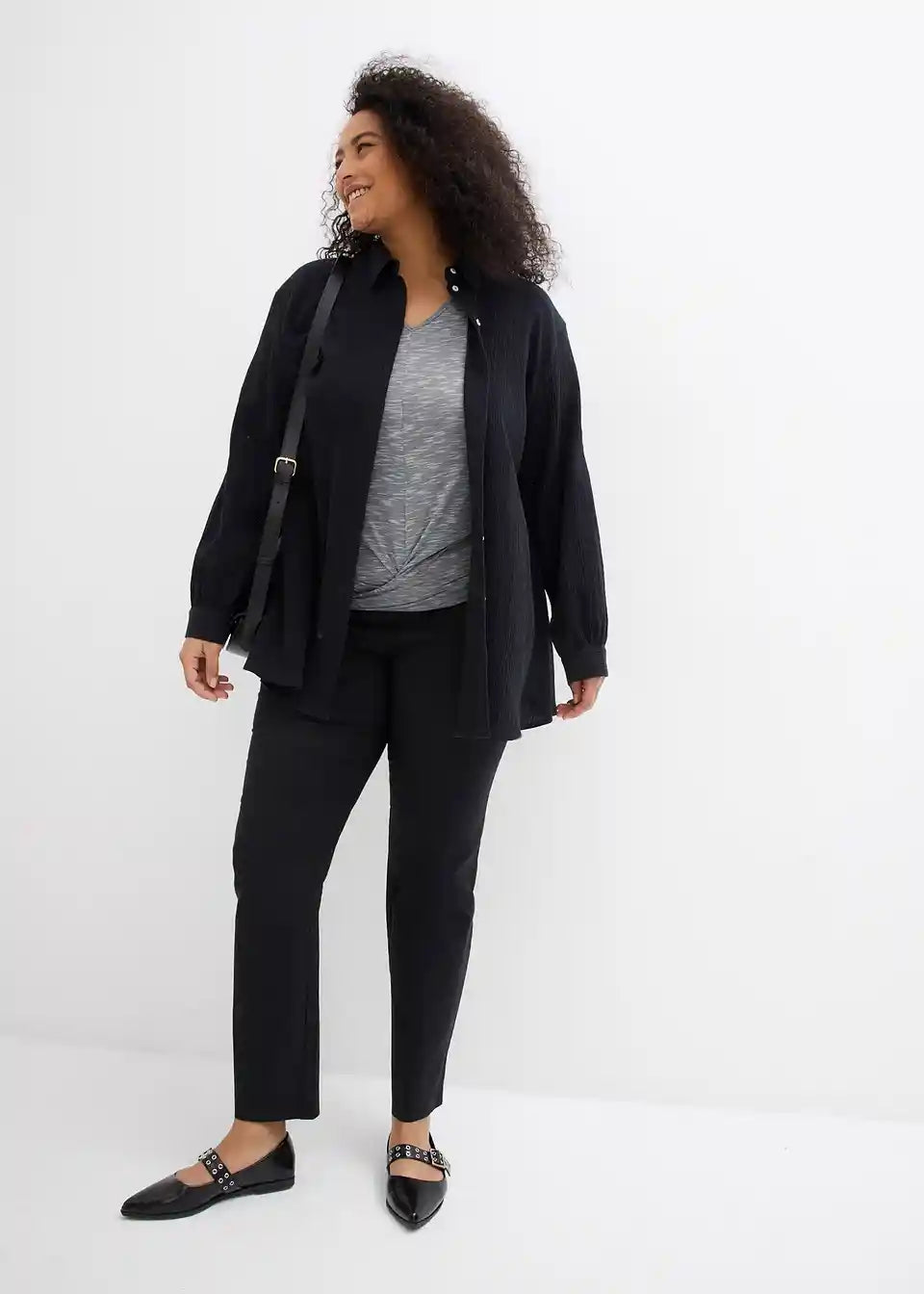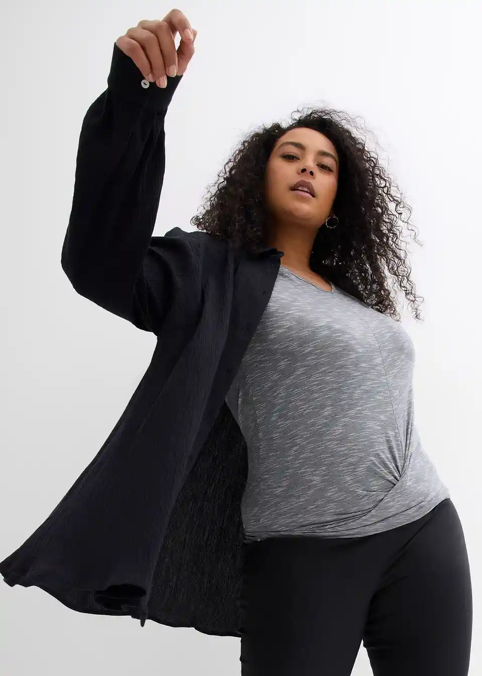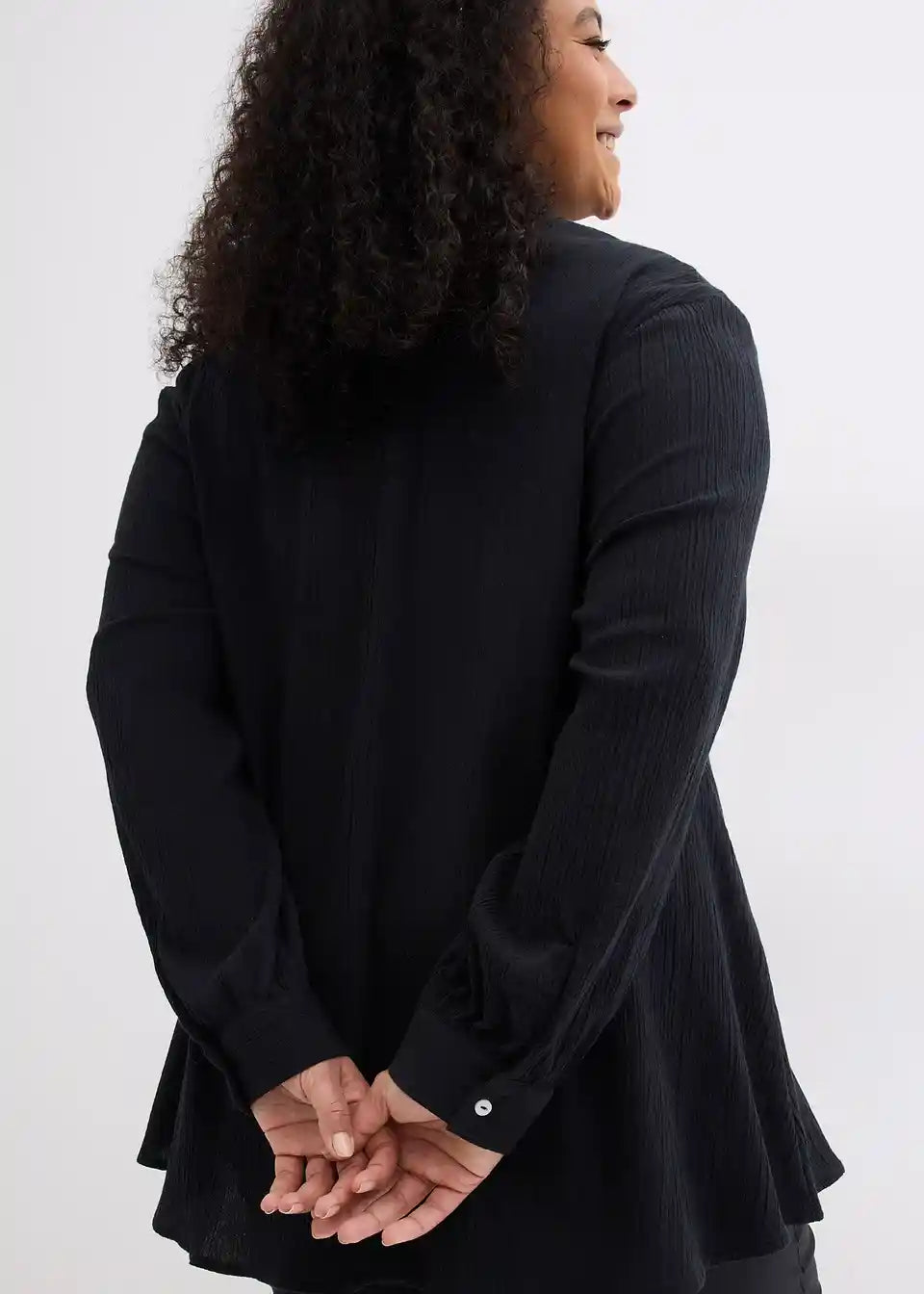 Longbluse aus Crincle mit Kragen und Knopfleiste