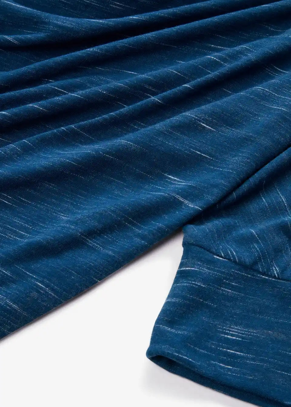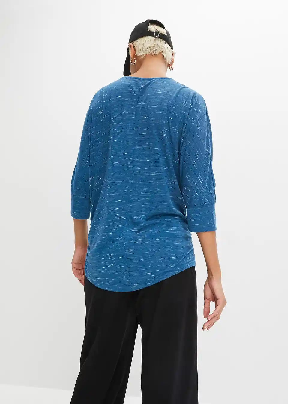 Der weich fallende Kragen geht hier mit der lockeren Passform eine coole Connection ein. Das Shirt von RAINBOW mit 3/4-Ärmeln in leichter Melange-Optik ist stylish kombinierbar.Ankle Boots und gekrempelte Skinny Jeans mit Destroyed-Effekten sorgen für einen lockeren Look. Statement-Kette und Shorts oder ein Minirock aus Lederimitat sowie Stiefel geben dem Shirt eine edgy Note.