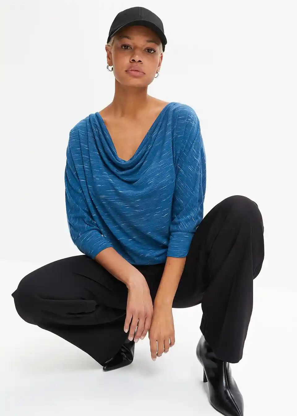 Fließendes Shirt mit Wasserfall-Ausschnitt