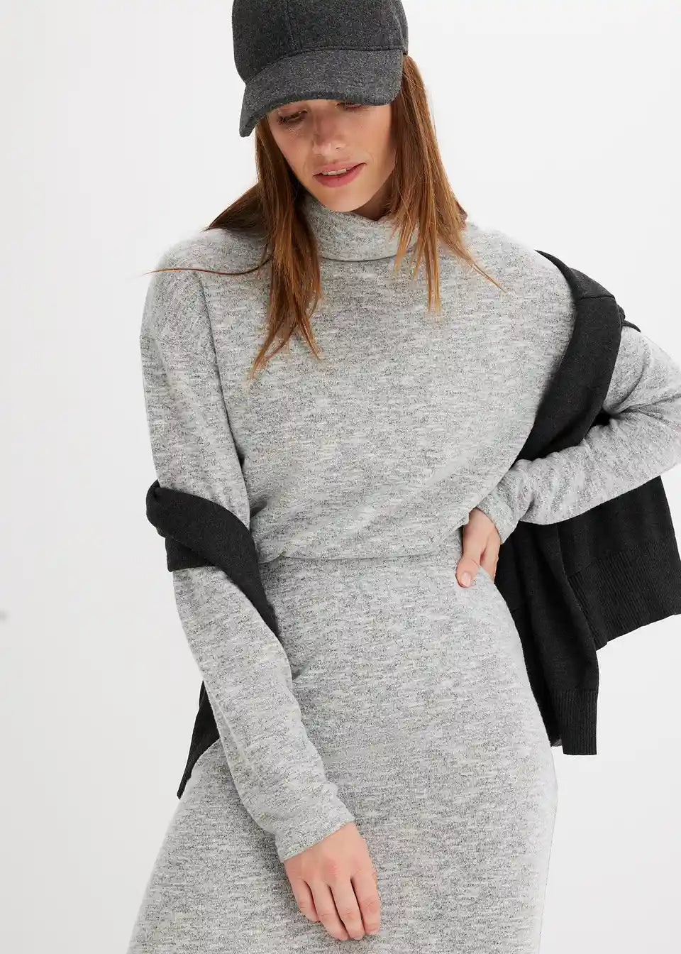 Passt sehr gut zum Pullover. Allerdings ist er bei kleinen Frauen zu lang
