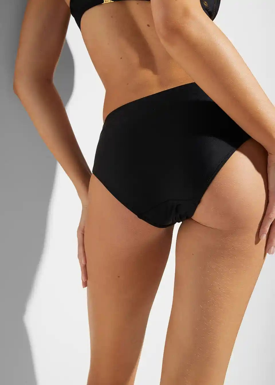 Schöne Farbe interessantes Design. Leider ist der Schnitt vorne durch die abgesenkte v foermige Naht SEHR unvorteilhaft. Wenn man etwas Bauch hat hält es dort nicht sondern rollt sich nach unten. Daher zurück!