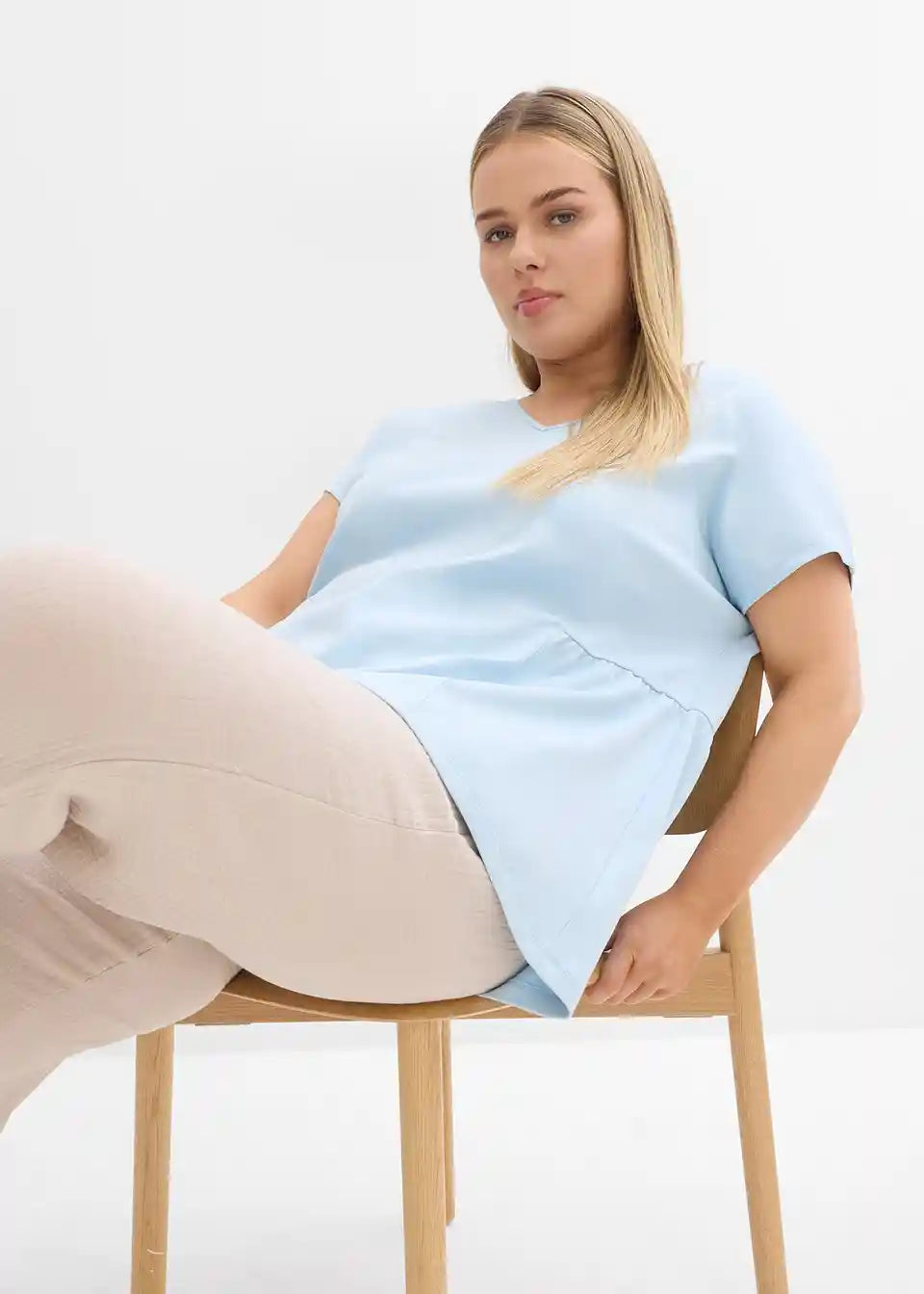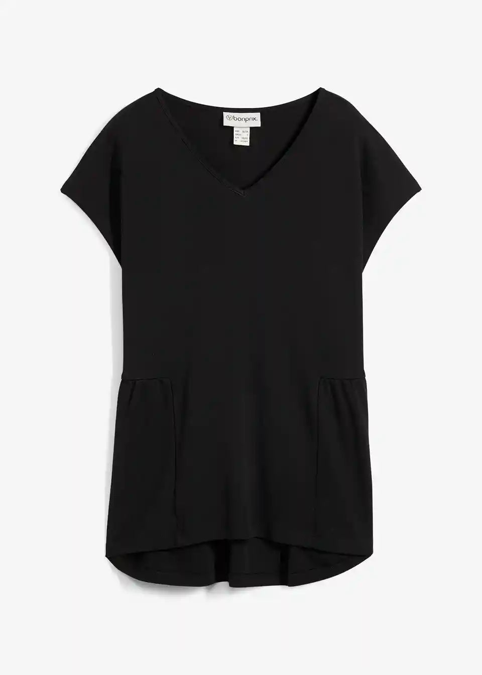 Shirt in A-Linie mit Taillennaht und hinten verlängertem Saum