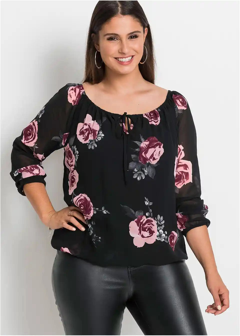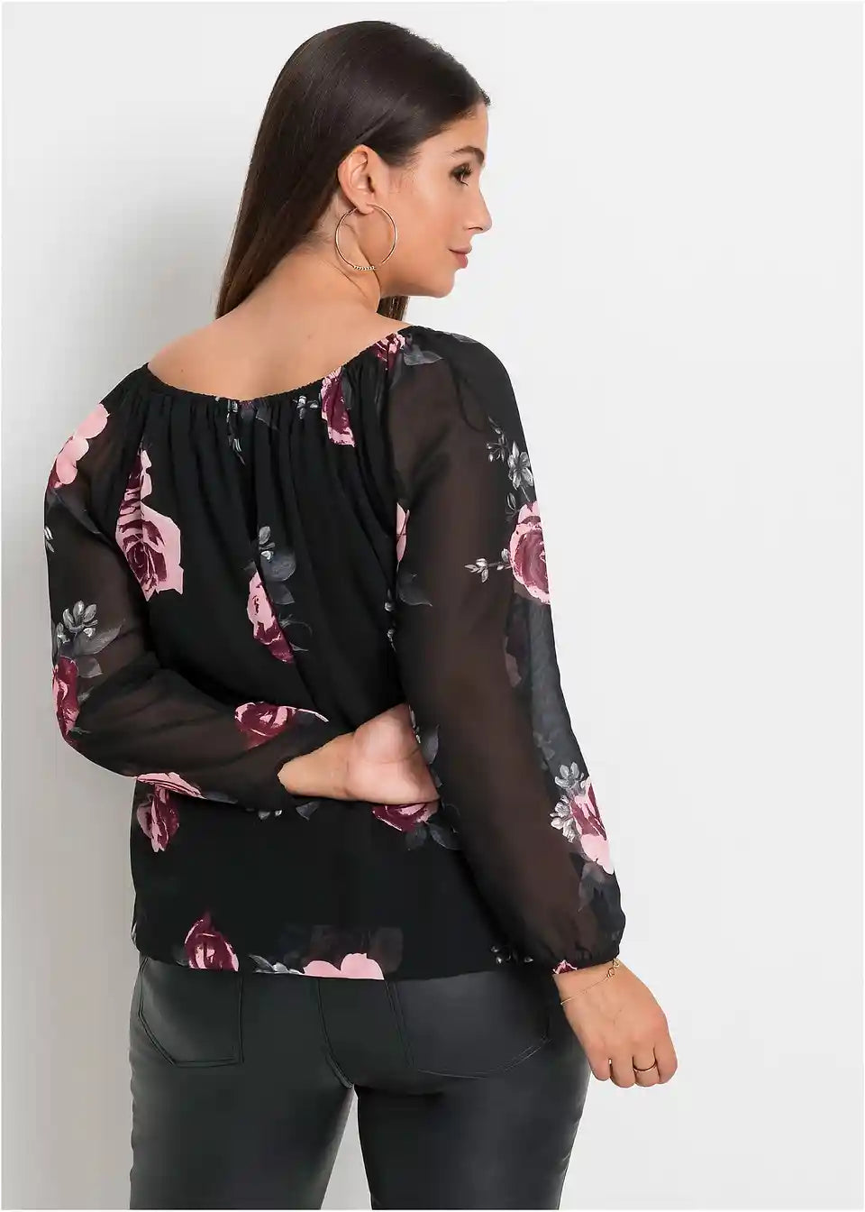 Langärmlige Bluse mit Tunnelzug am breiten Ausschnitt