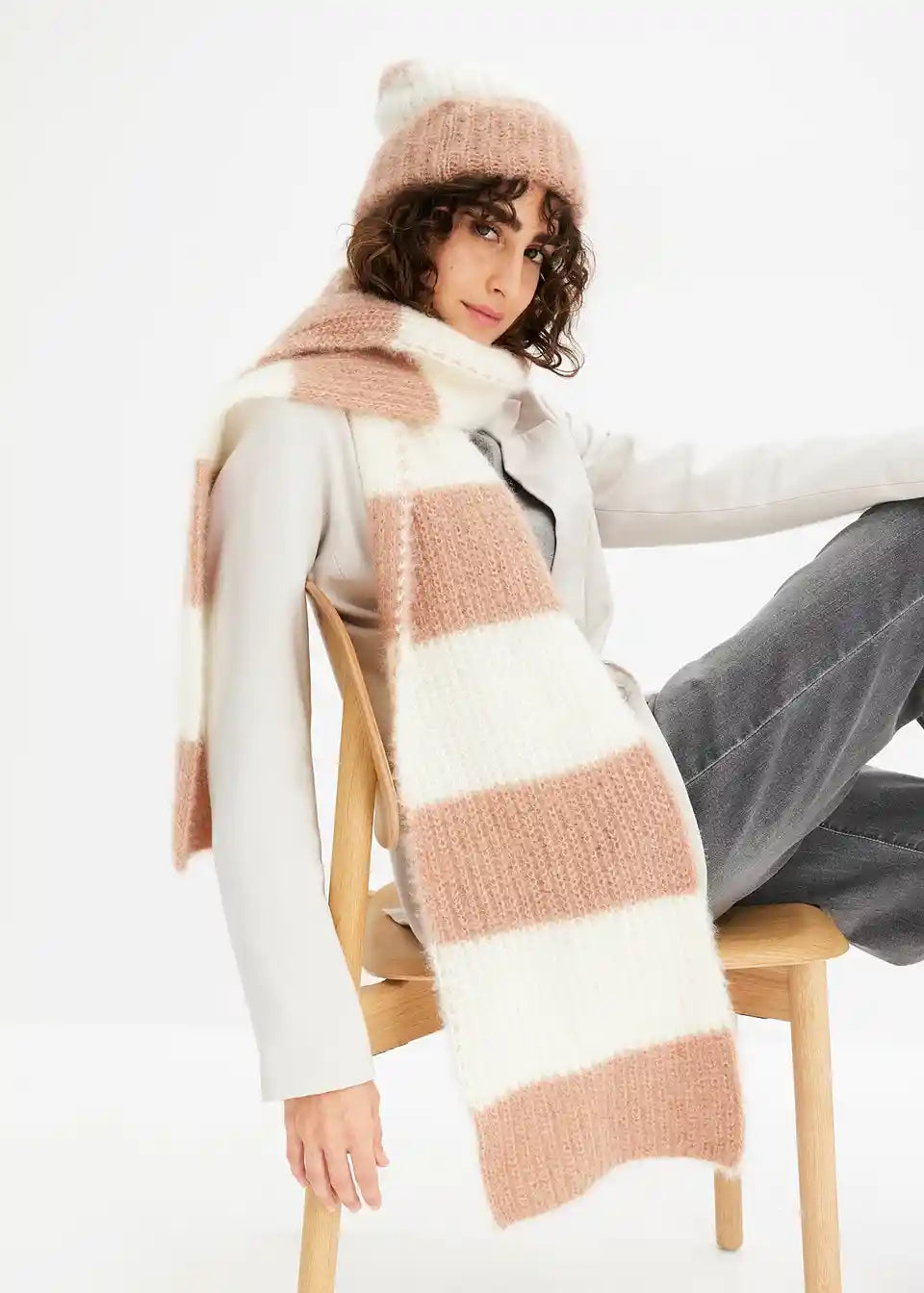 Kuscheliges Strickset mit Streifen für die kalte Jahreszeit