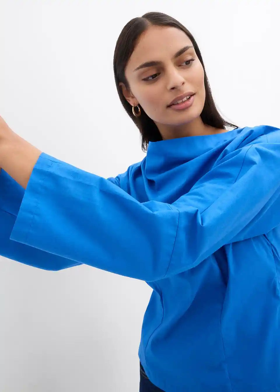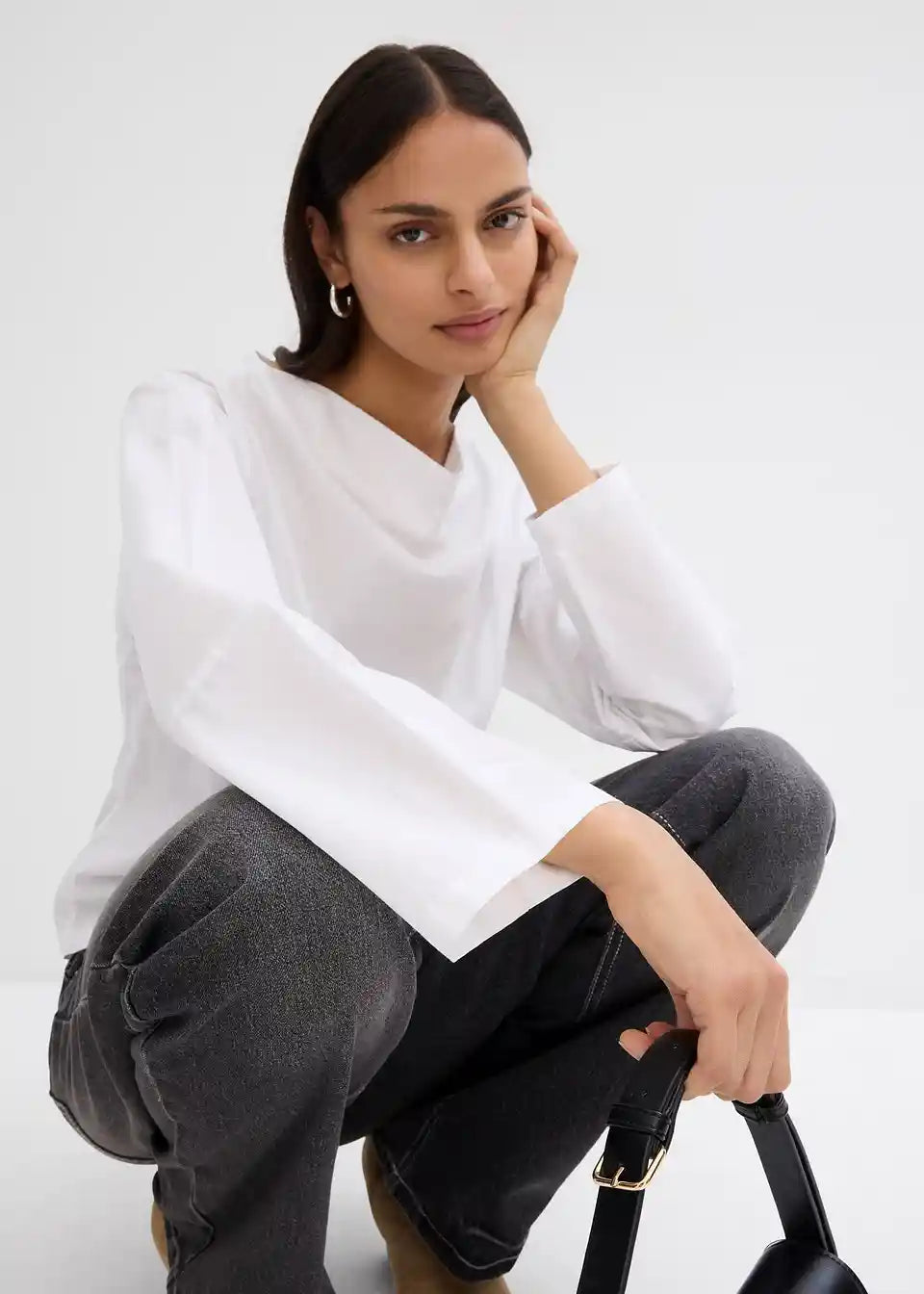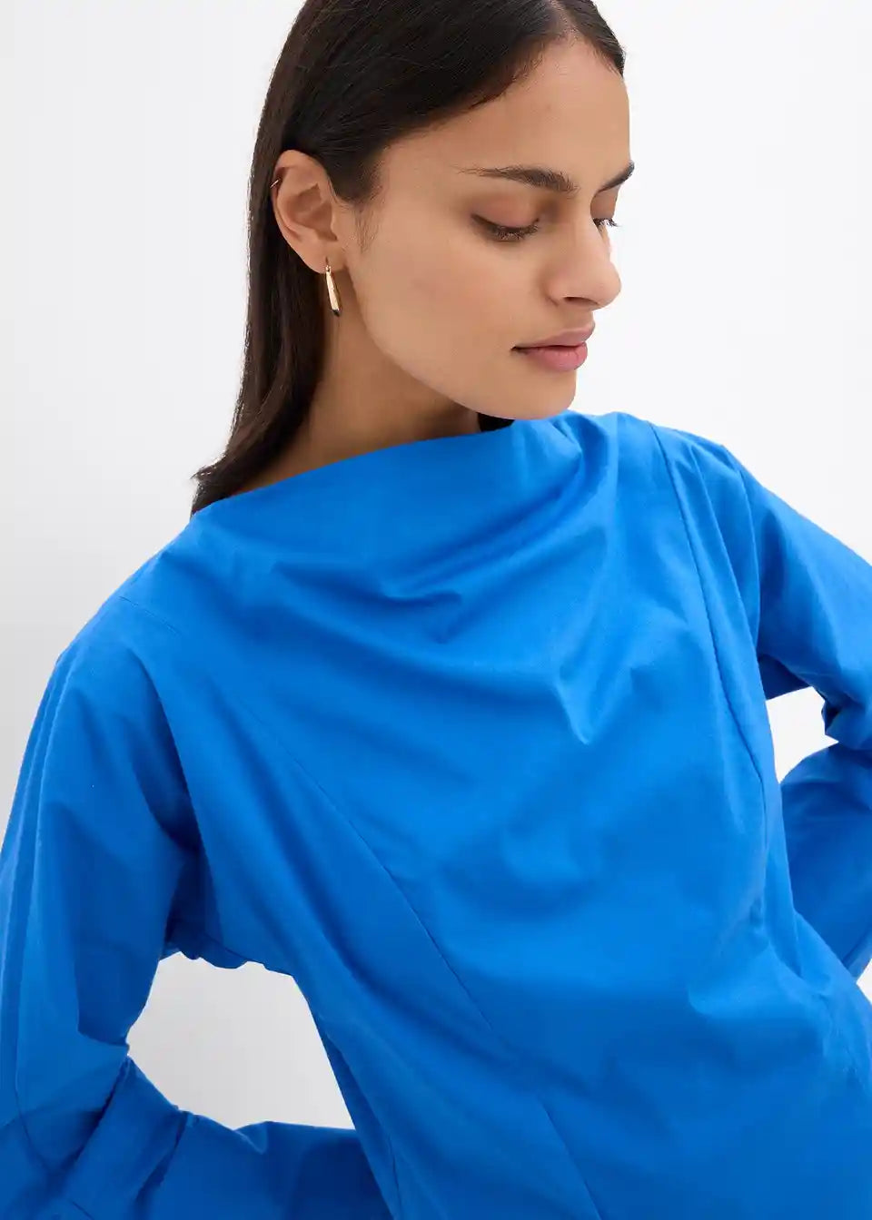 Popeline Bluse mit Wasserfall-Ausschnitt