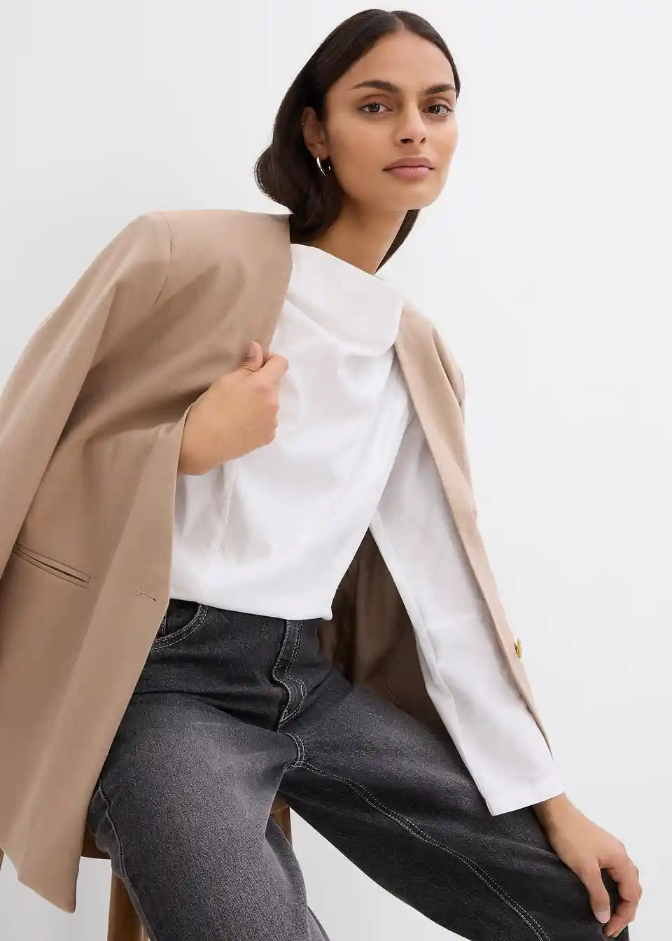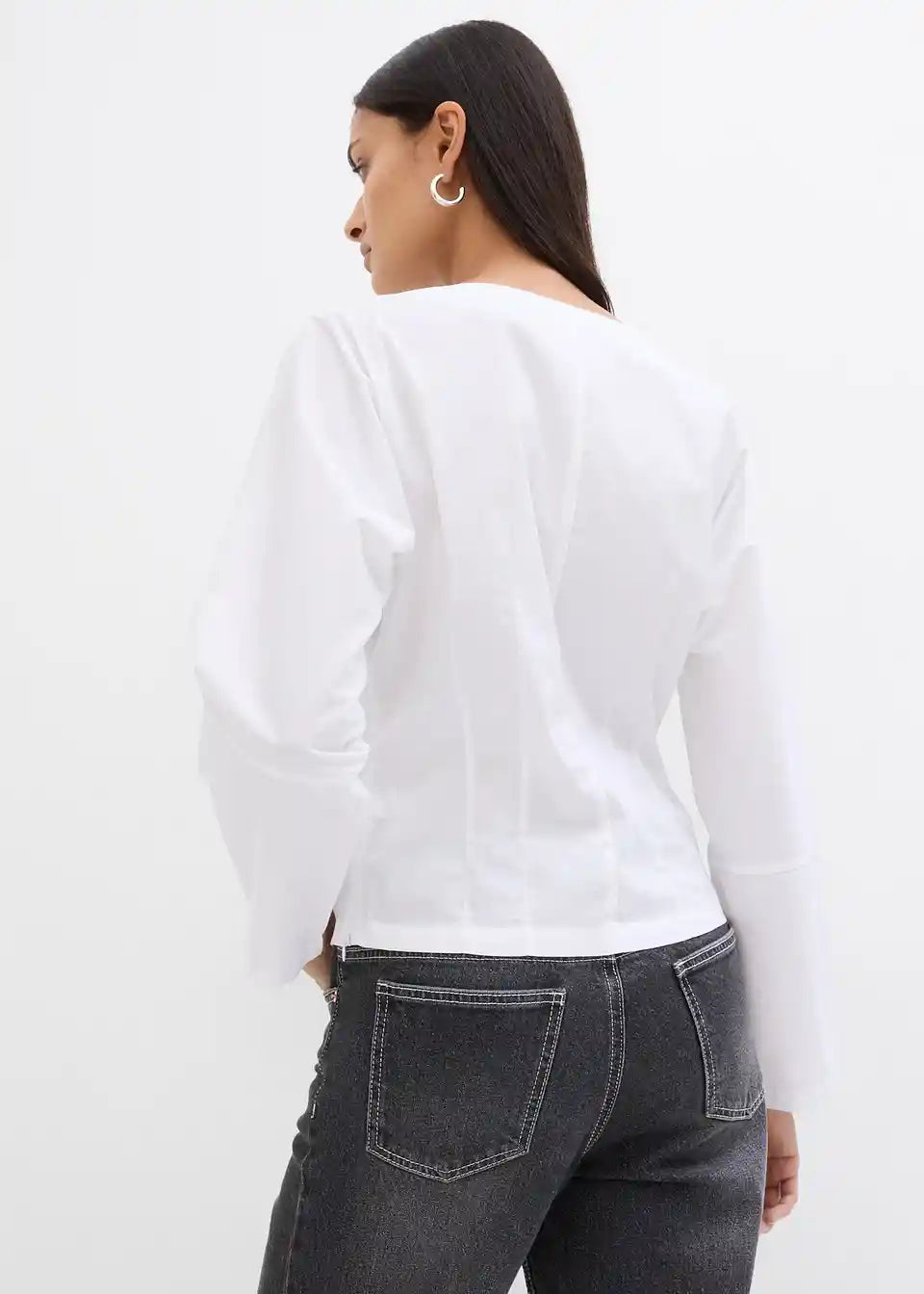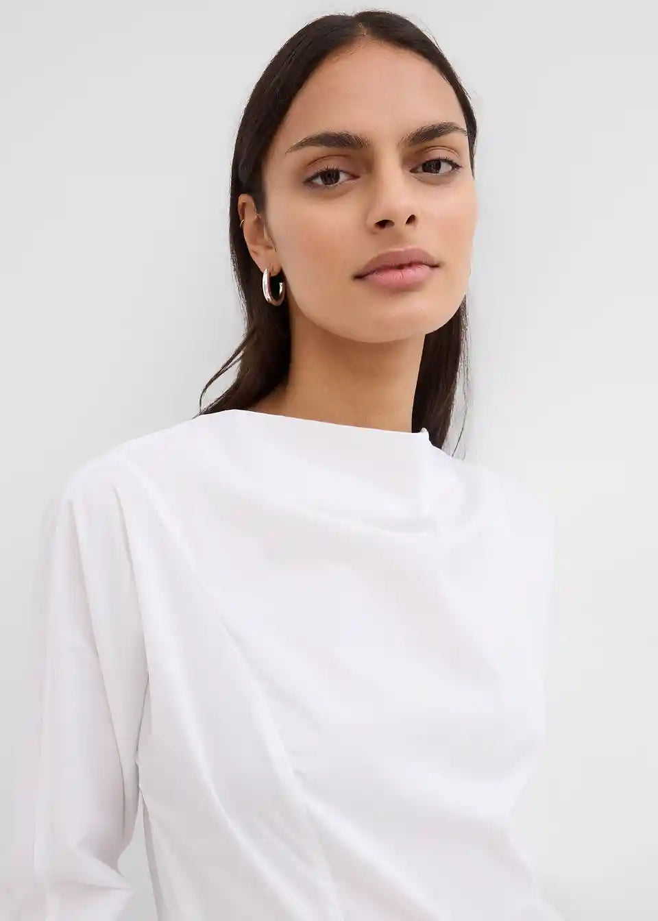Popeline Bluse mit Wasserfall-Ausschnitt