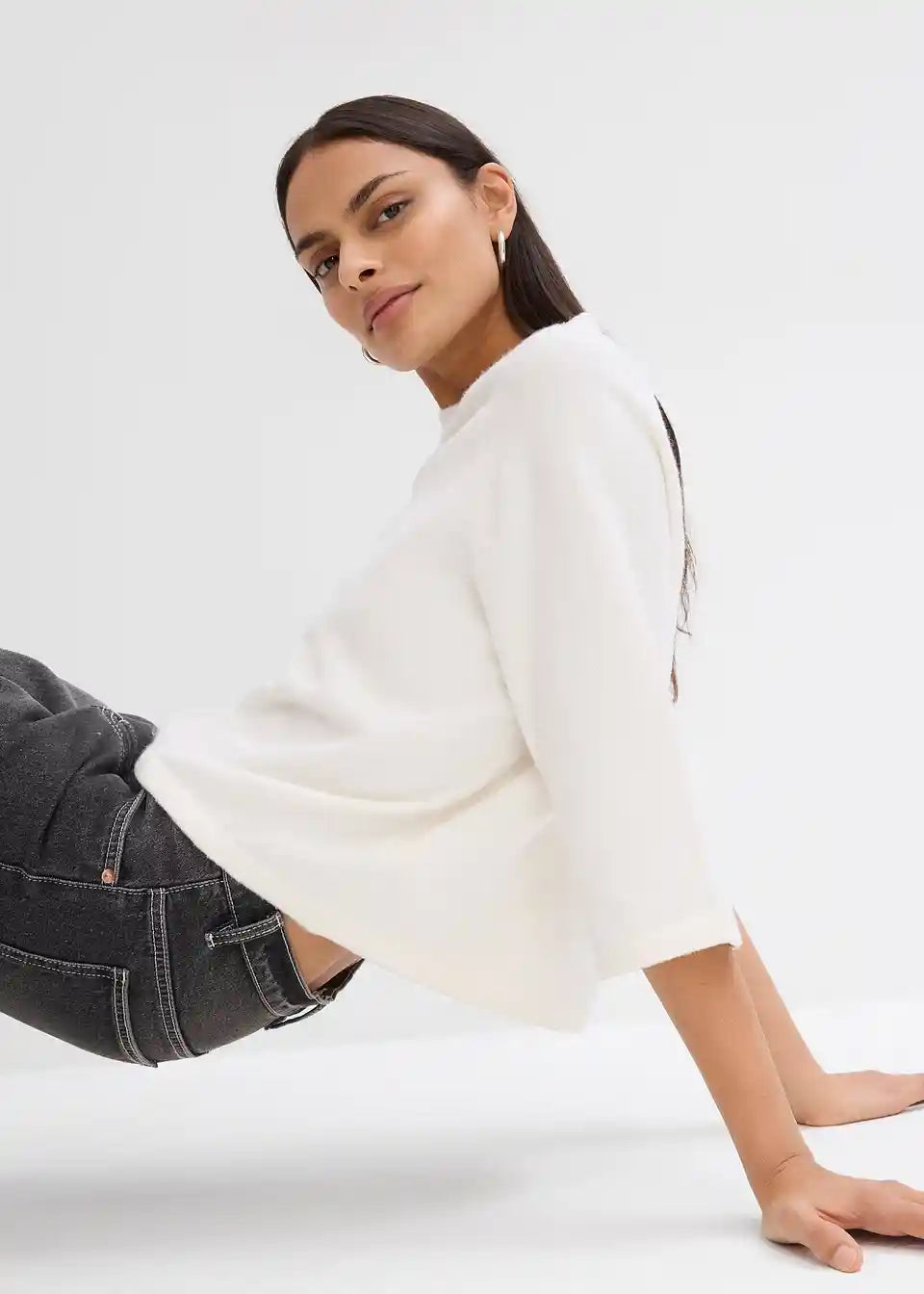 Strickshirt in Oversized-Passform mit Rundhalsausschnitt und gerippten kurzen Ärmeln