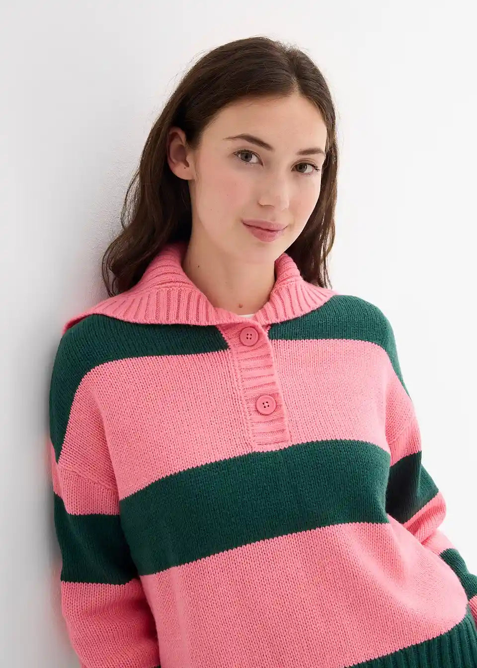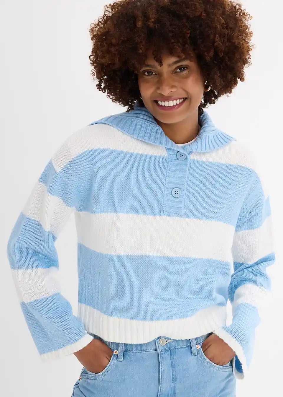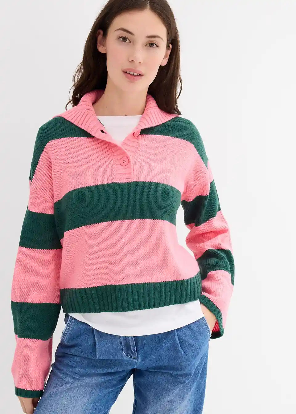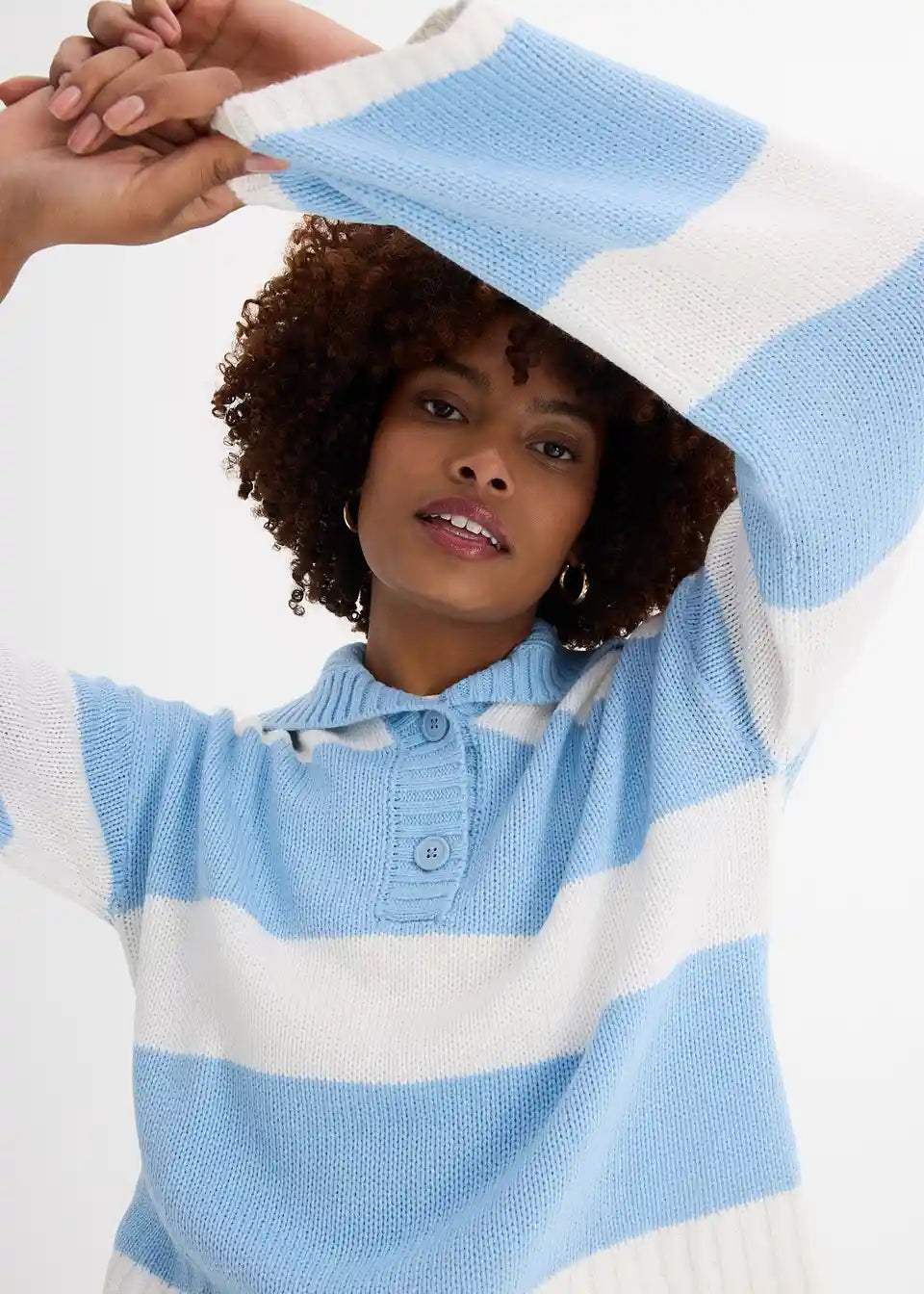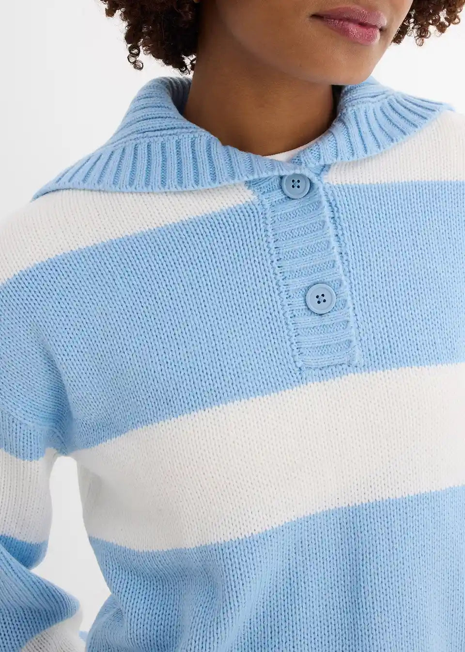 Modisch gestreifter Pullover mit Knopfleiste und Kragen
