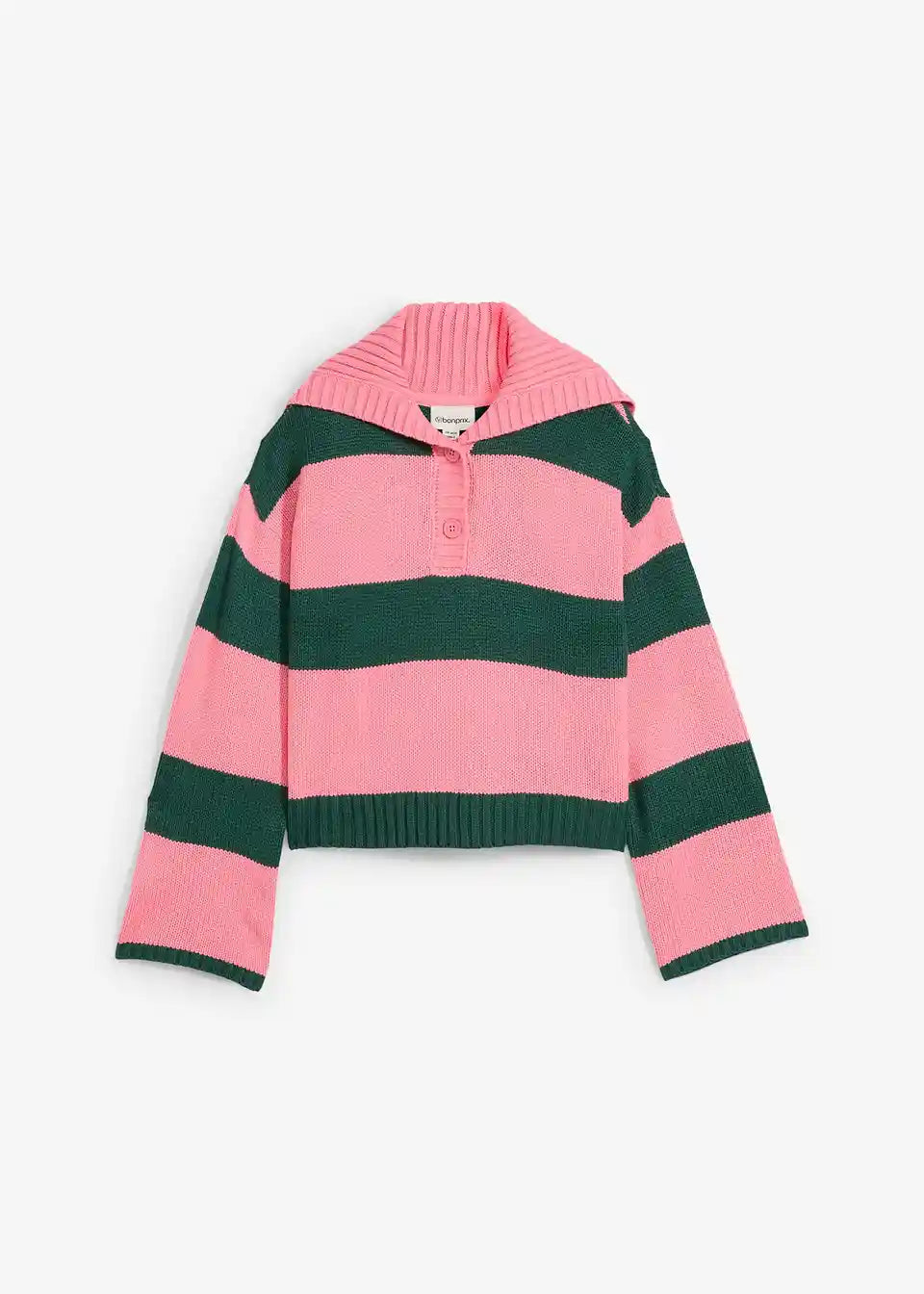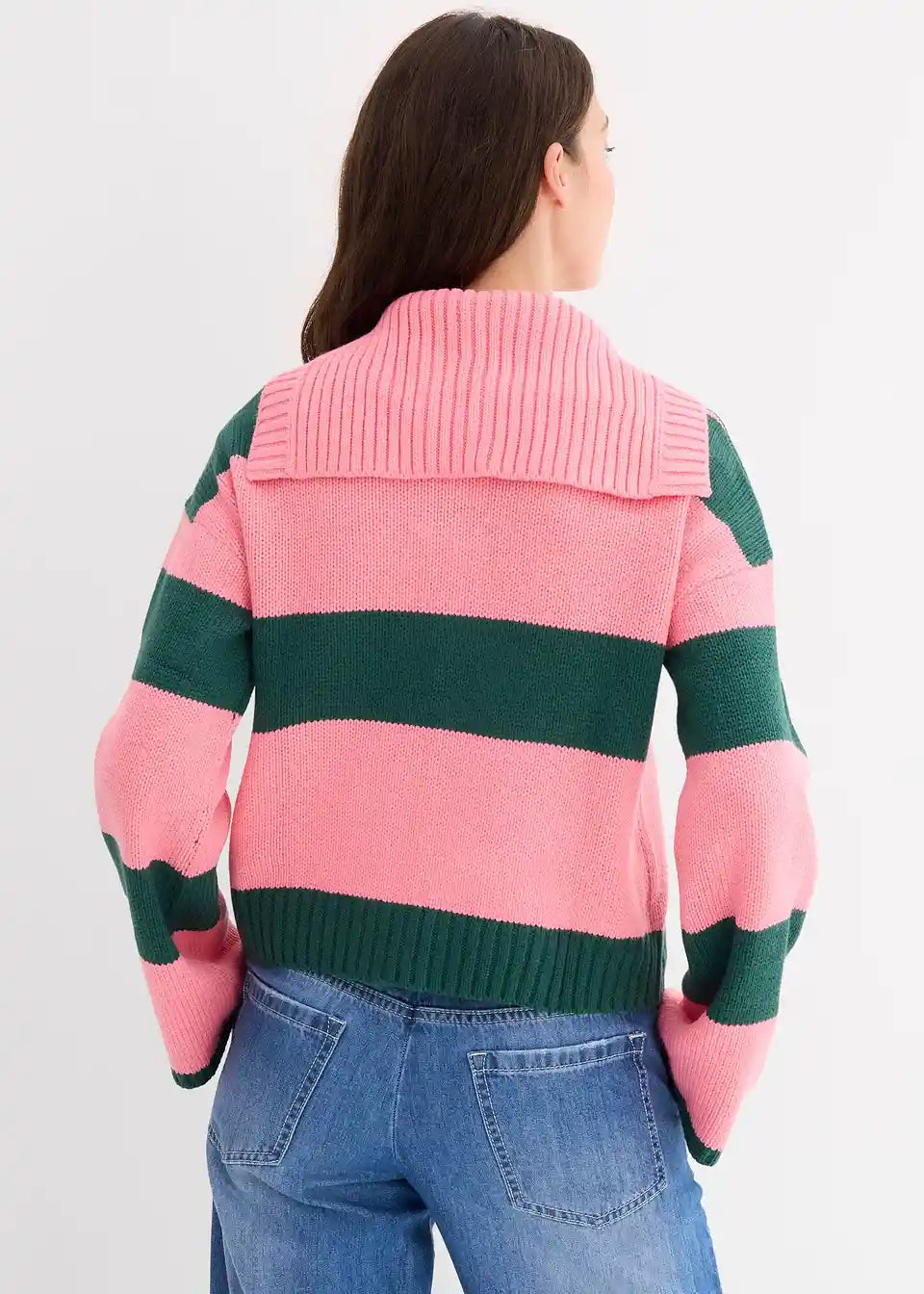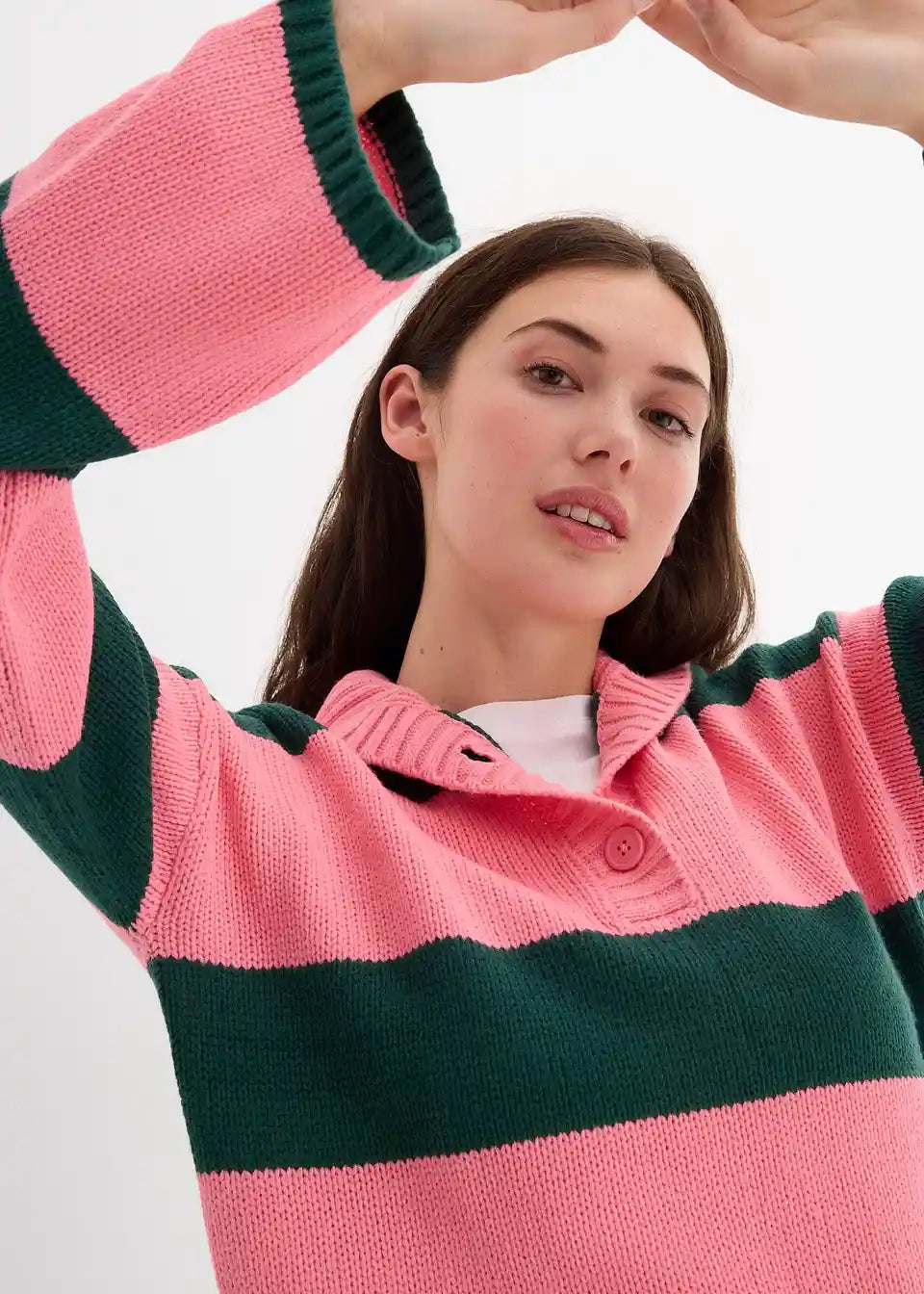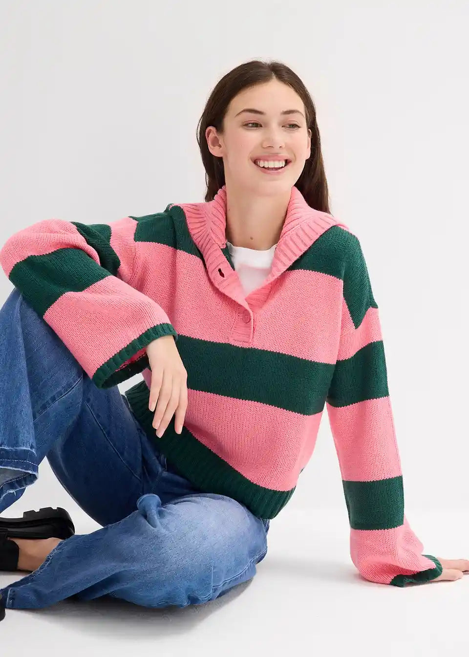 Modisch gestreifter Pullover mit Knopfleiste und Kragen