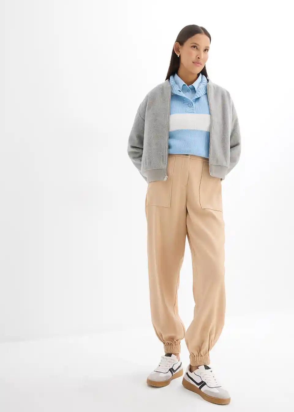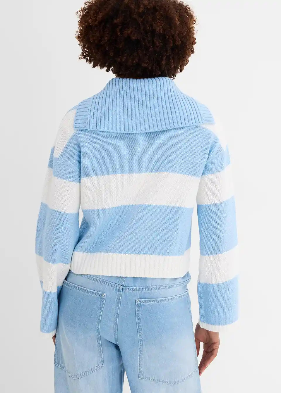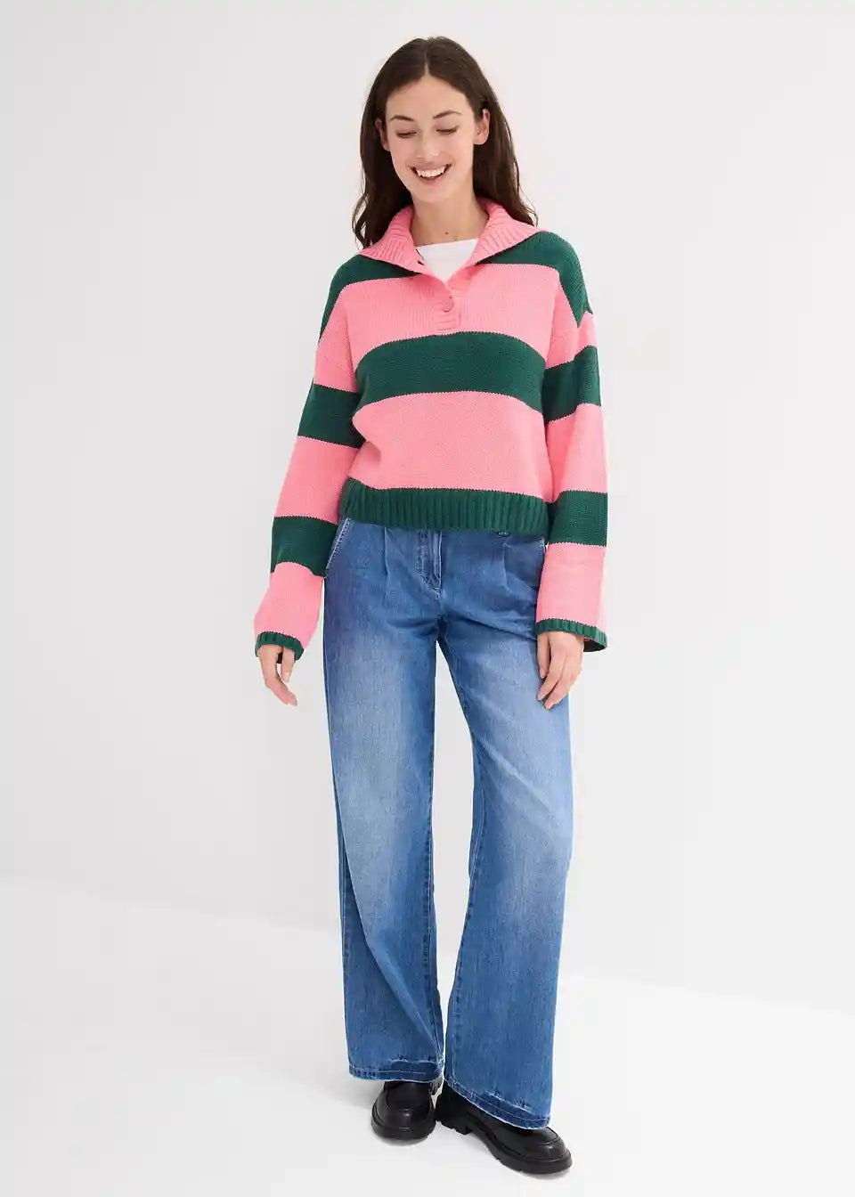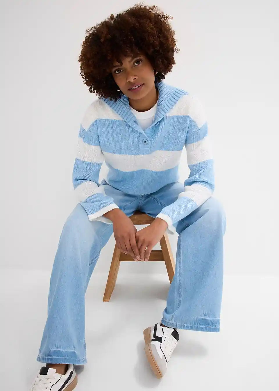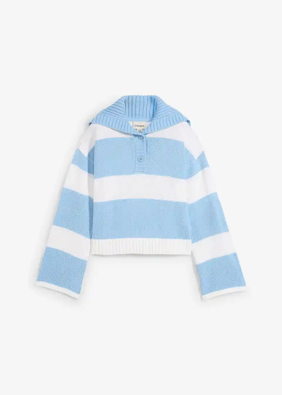 Modisch gestreifter Pullover mit Knopfleiste und Kragen
