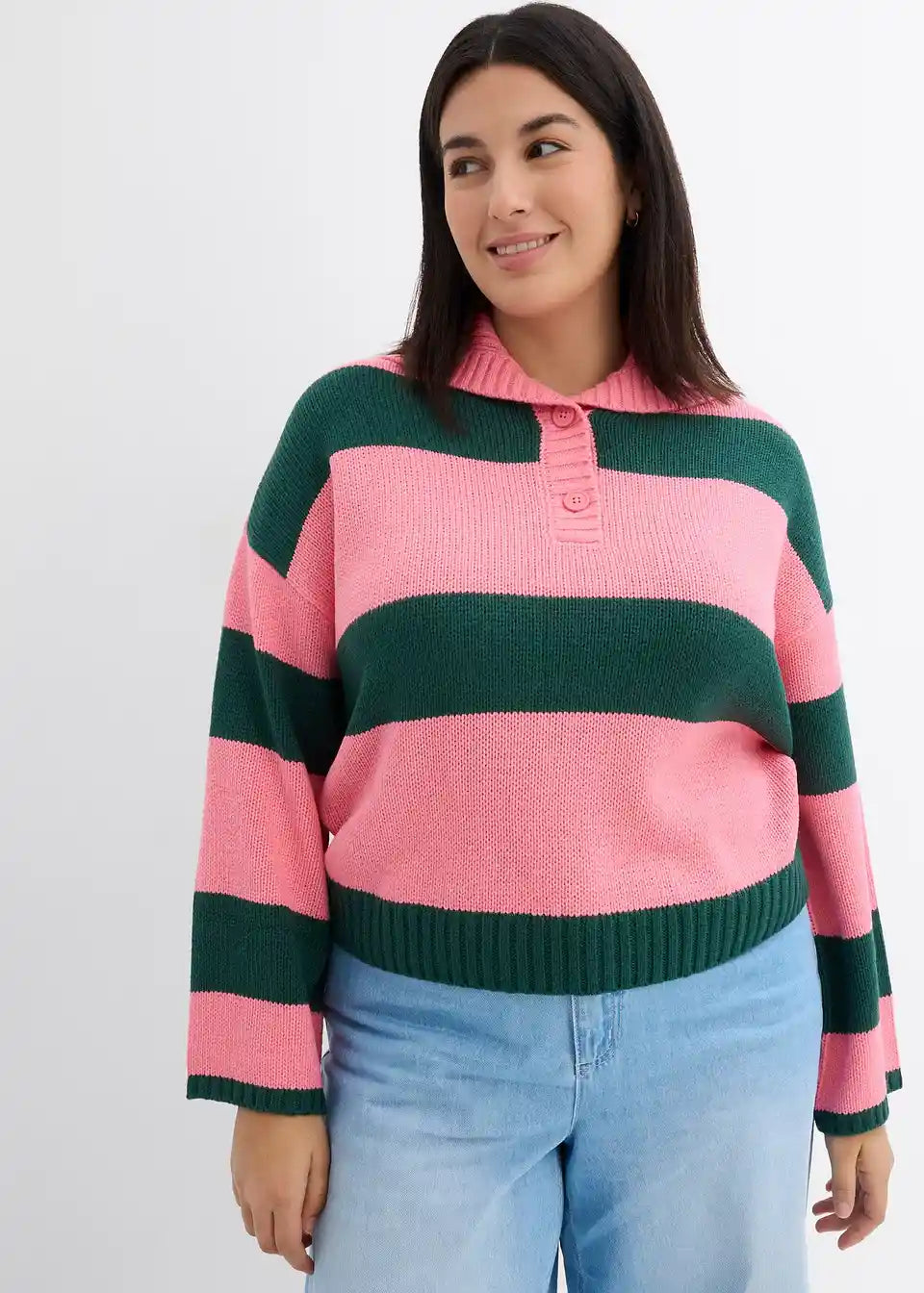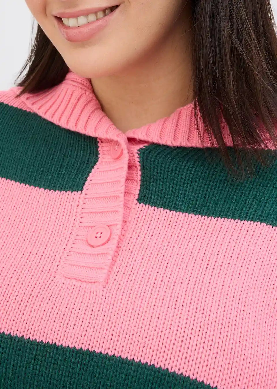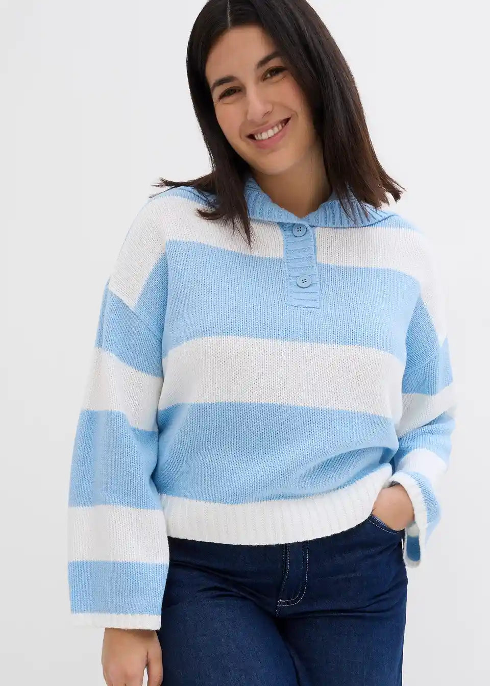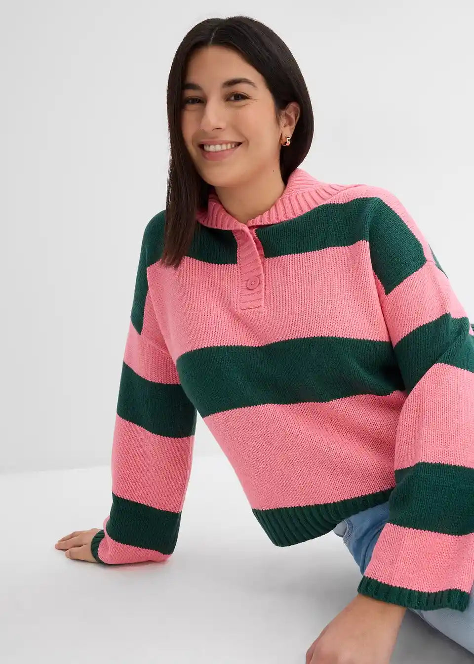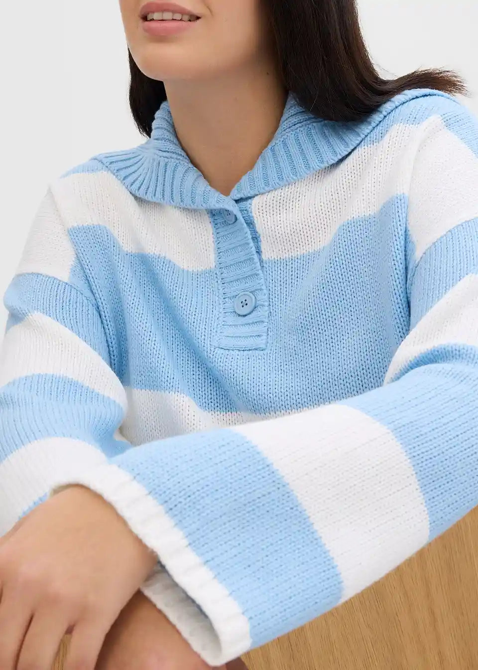 Modisch gestreifter Pullover mit Knopfleiste und Kragen