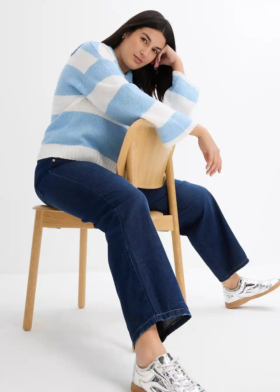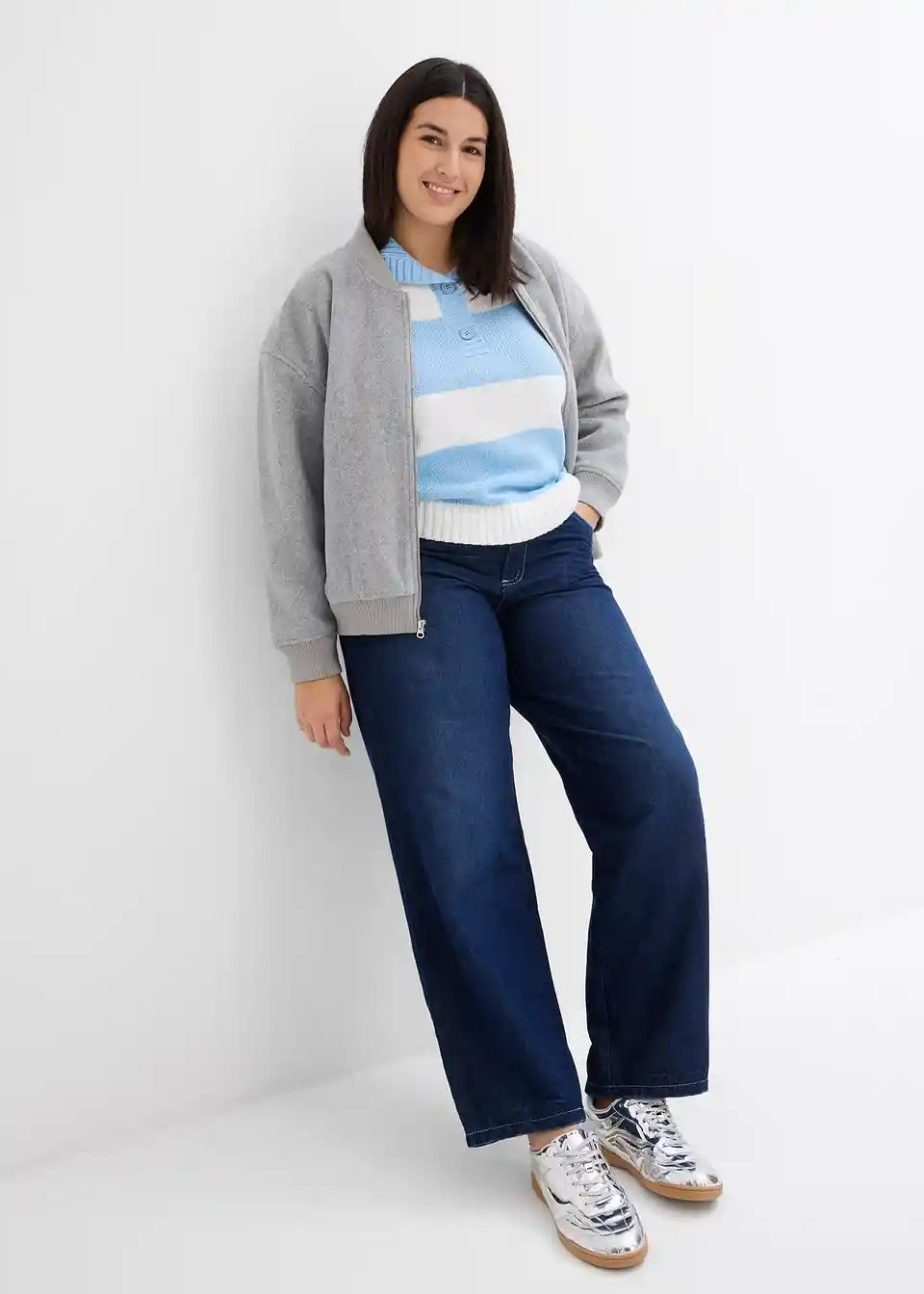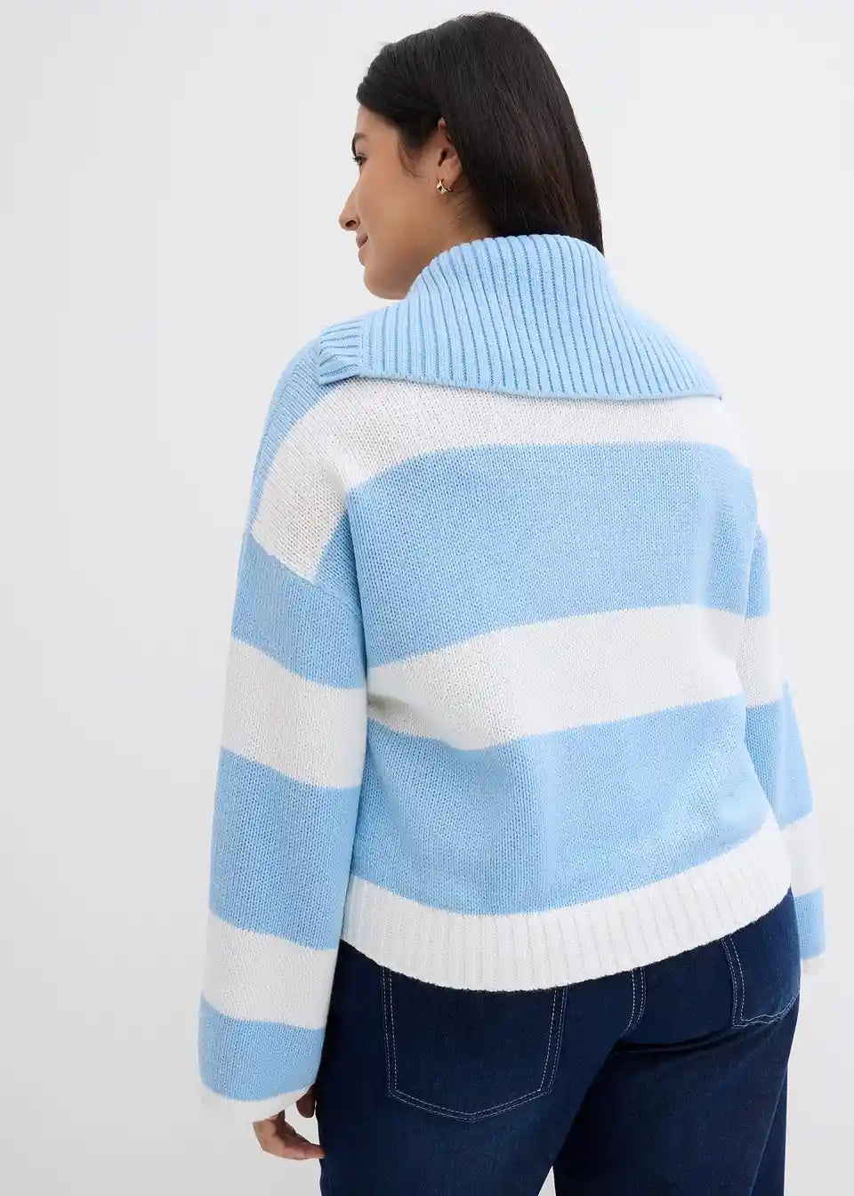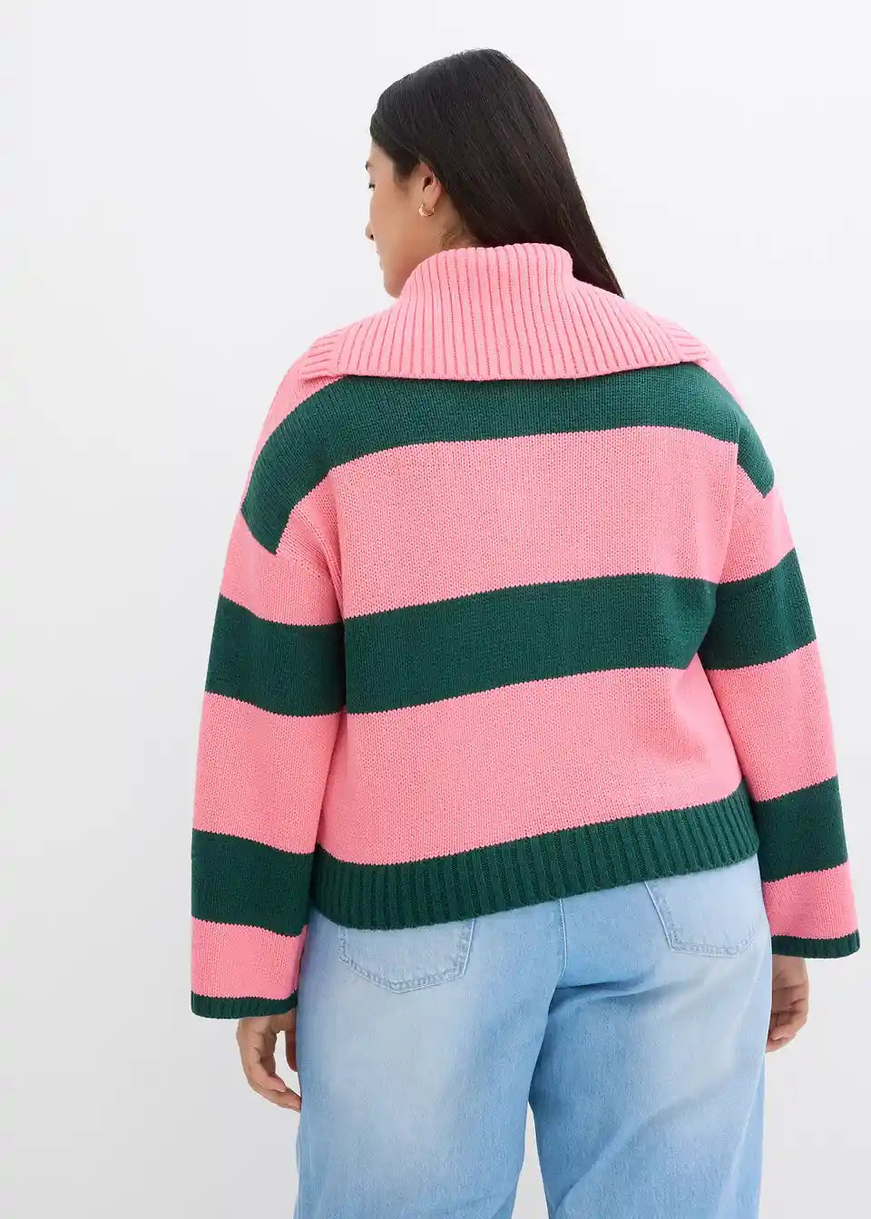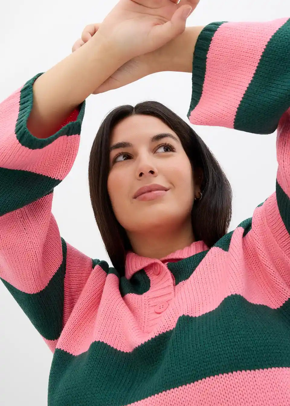 Modisch gestreifter Pullover mit Knopfleiste und Kragen