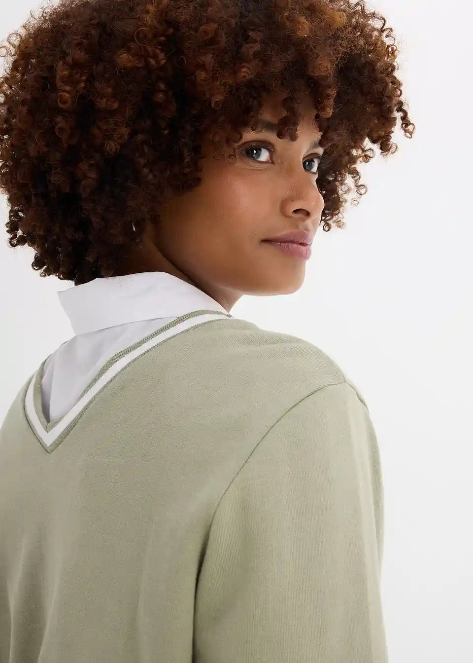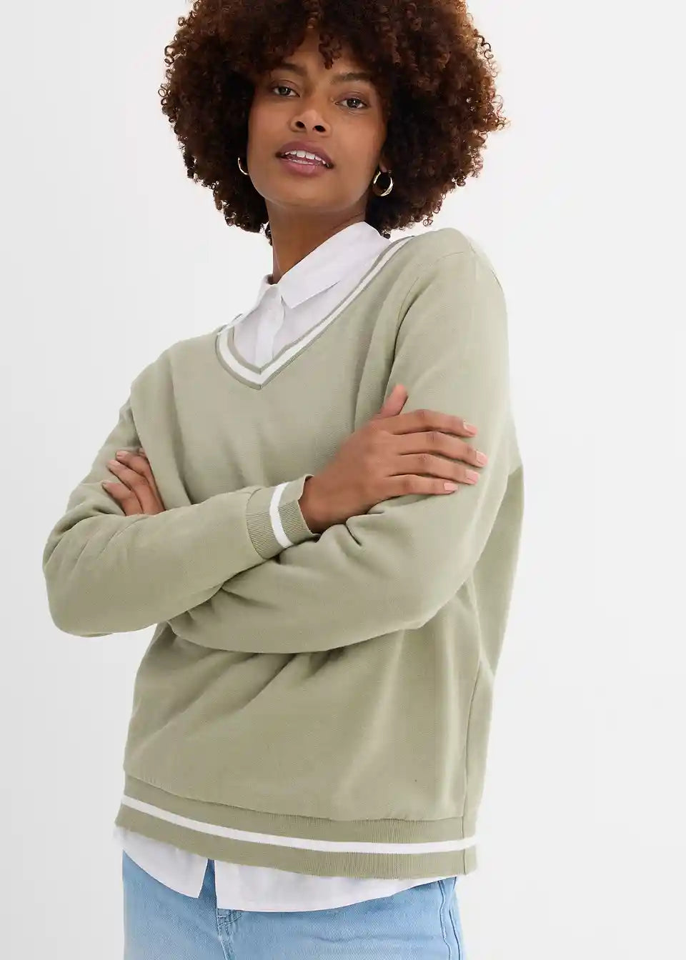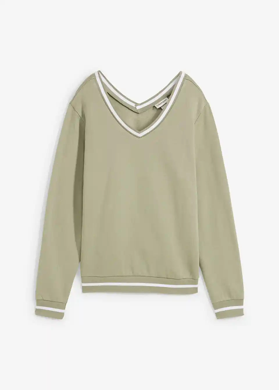 Lässiges Sweatshirt aus reiner Bio-Baumwolle mit tiefem V-Ausschnitt