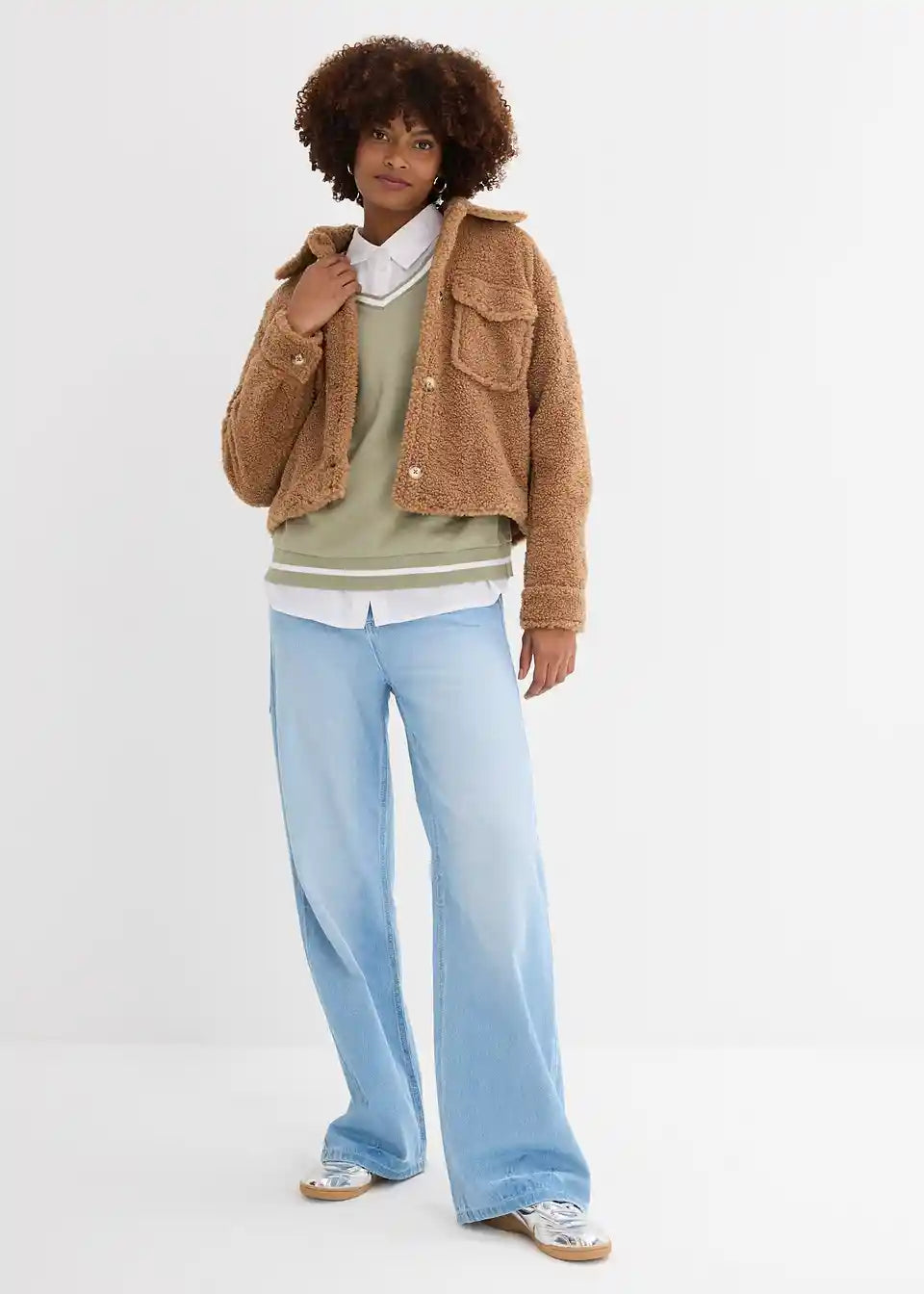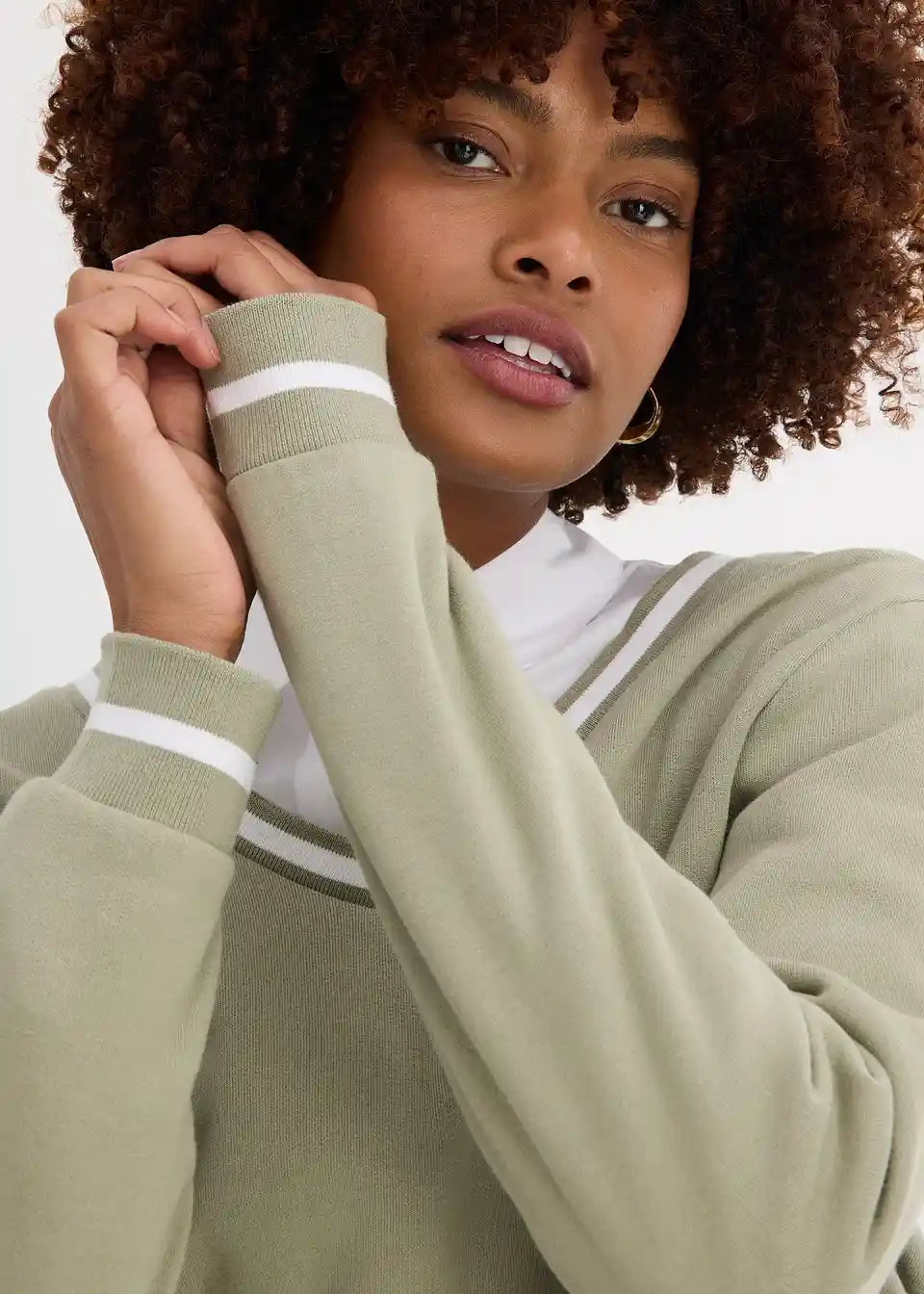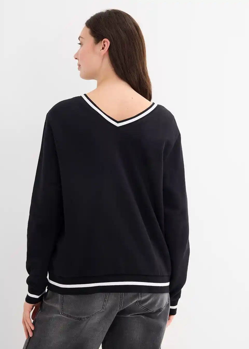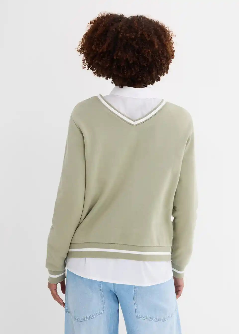 Lässiges Sweatshirt aus reiner Bio-Baumwolle mit tiefem V-Ausschnitt