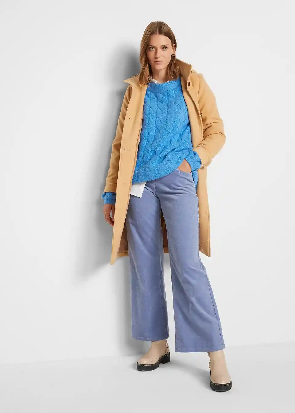 Stylischer Strickpullover mit großen Ärmeln und Zopfmuster