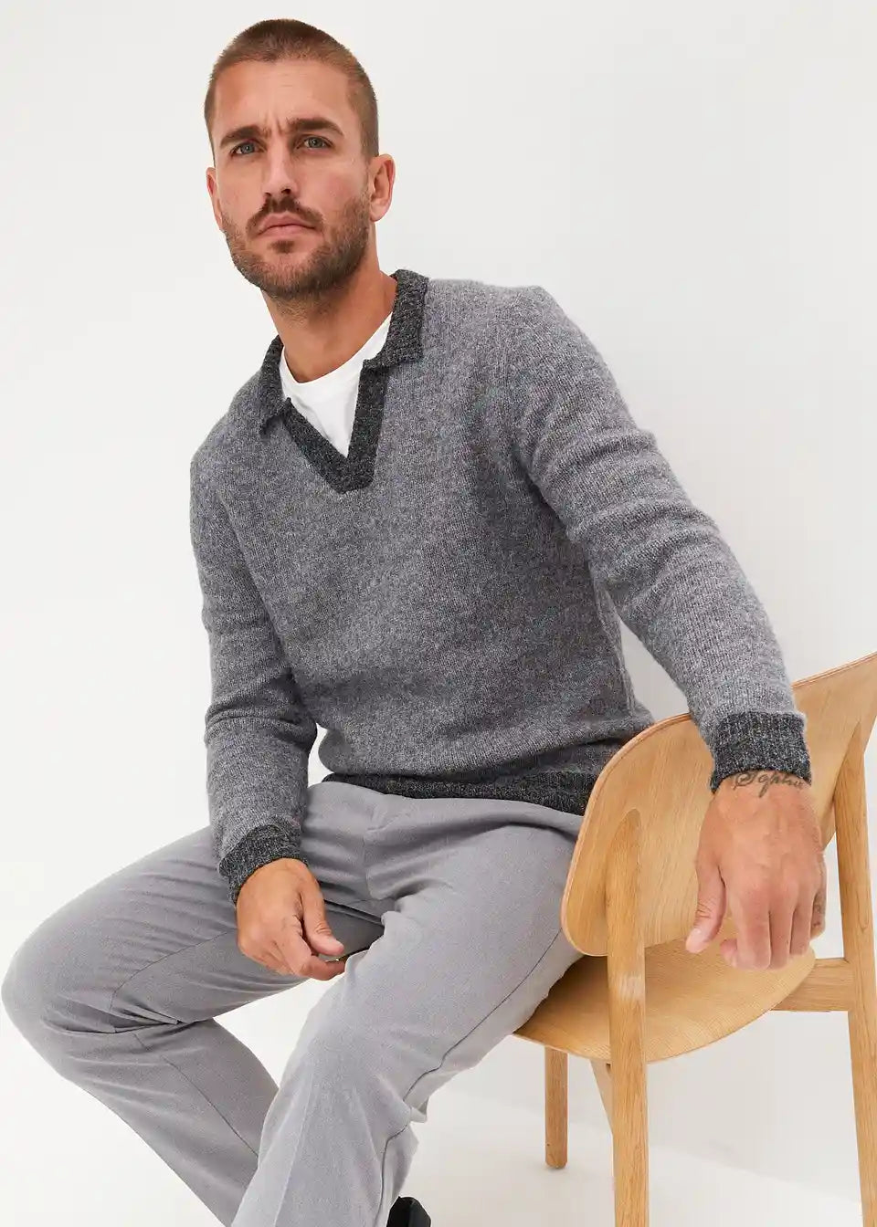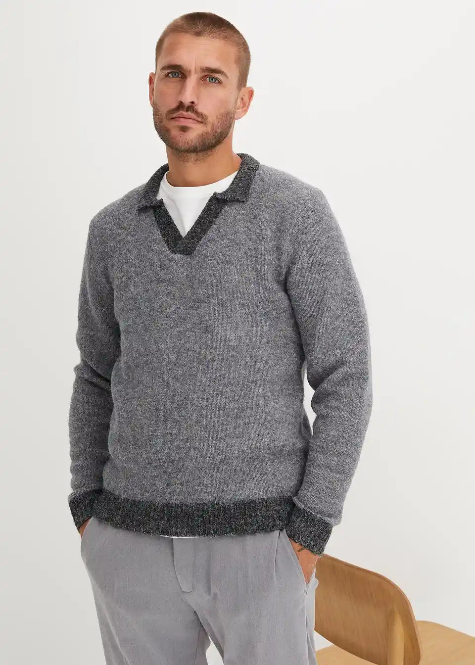 Schöner flauschig haariger Pullover mit einem V-Kragen