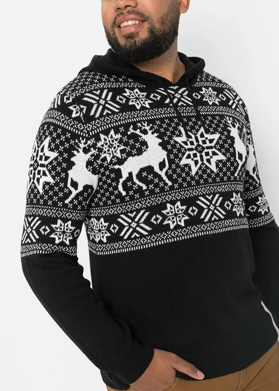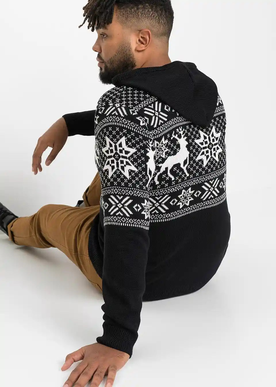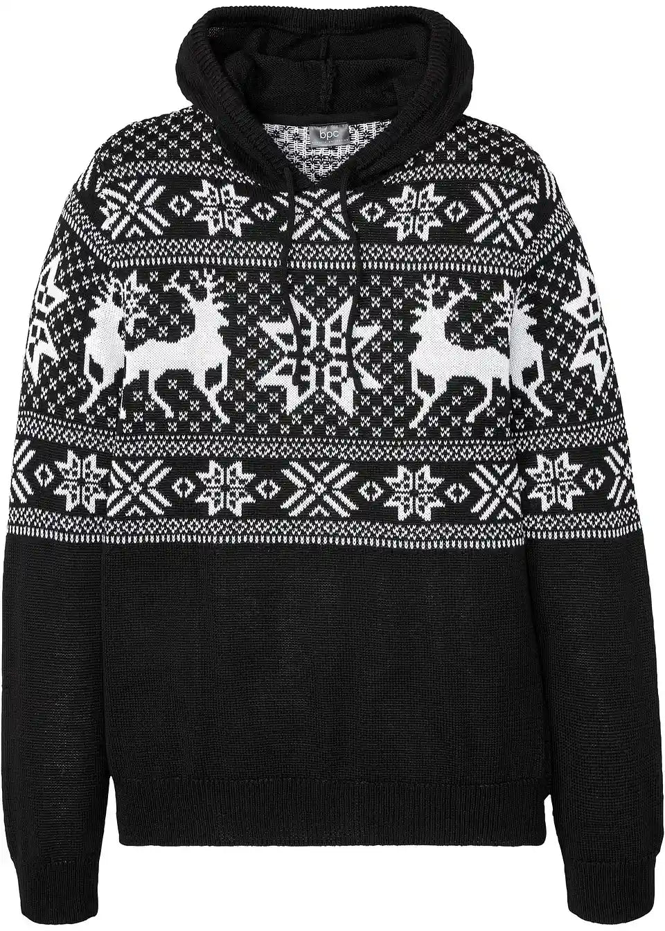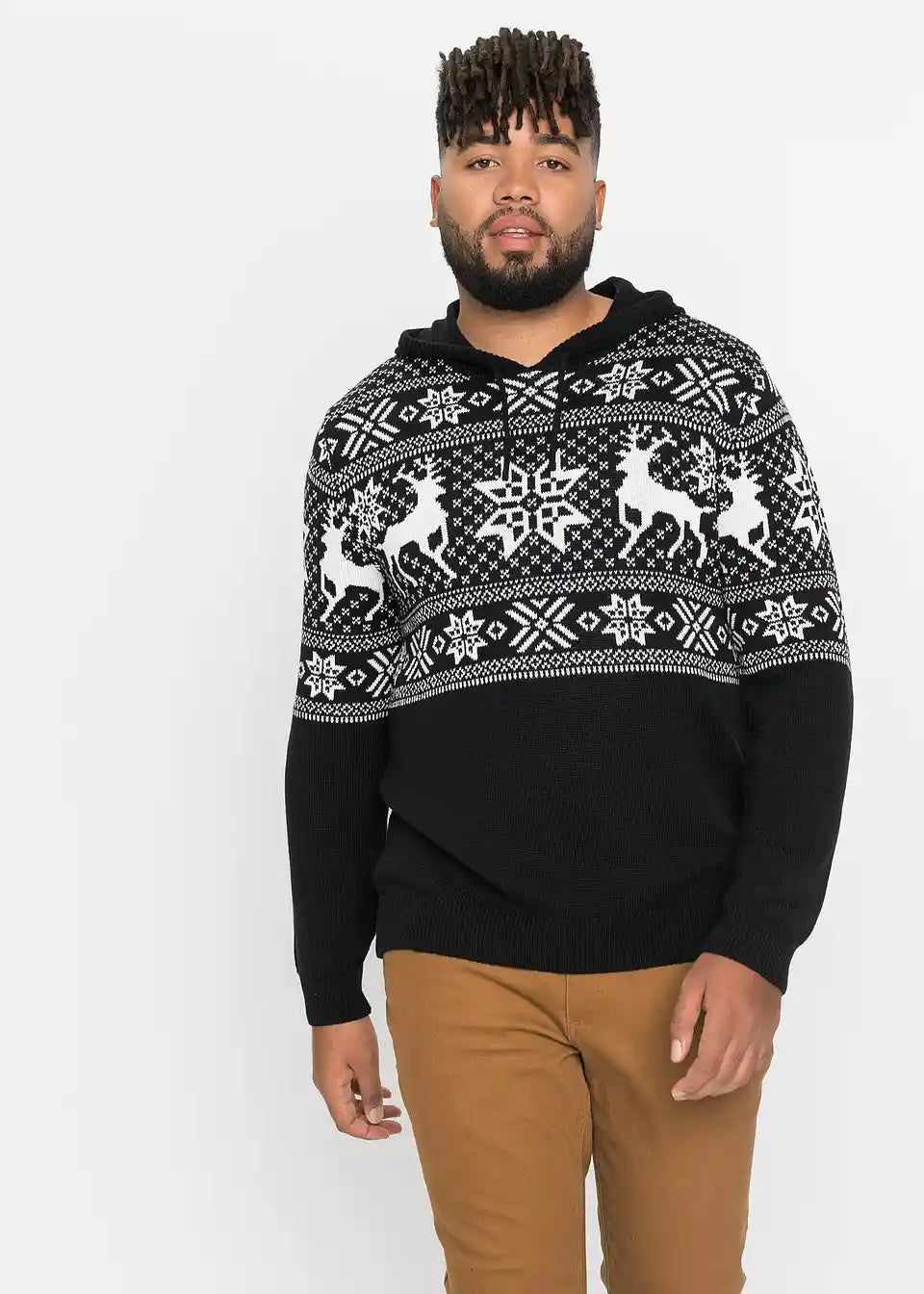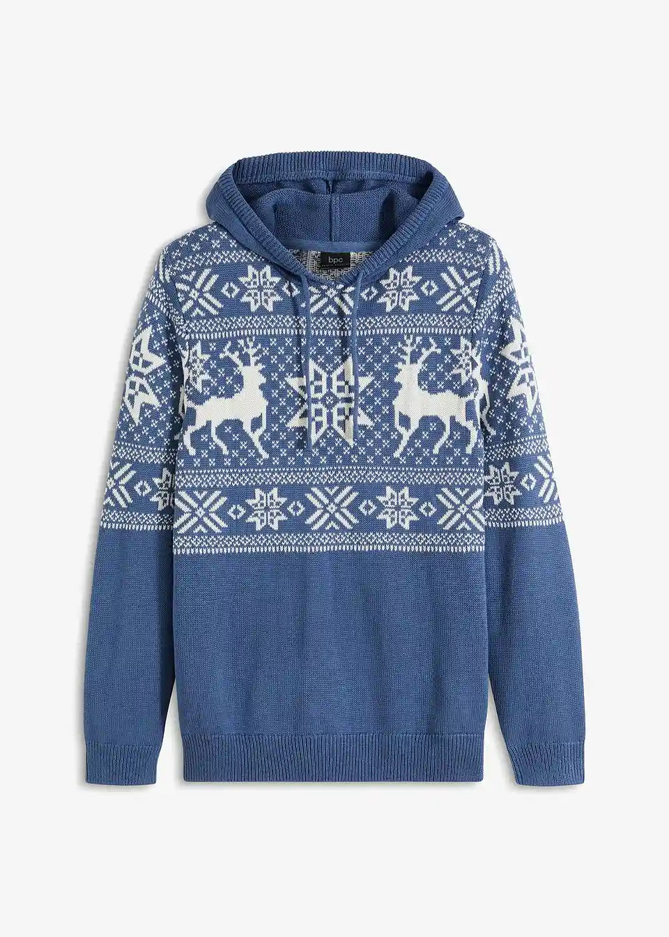 Schöner Kapuzenpullover mit winterlichem Design und Rippbündchen, maschinenwaschbar
