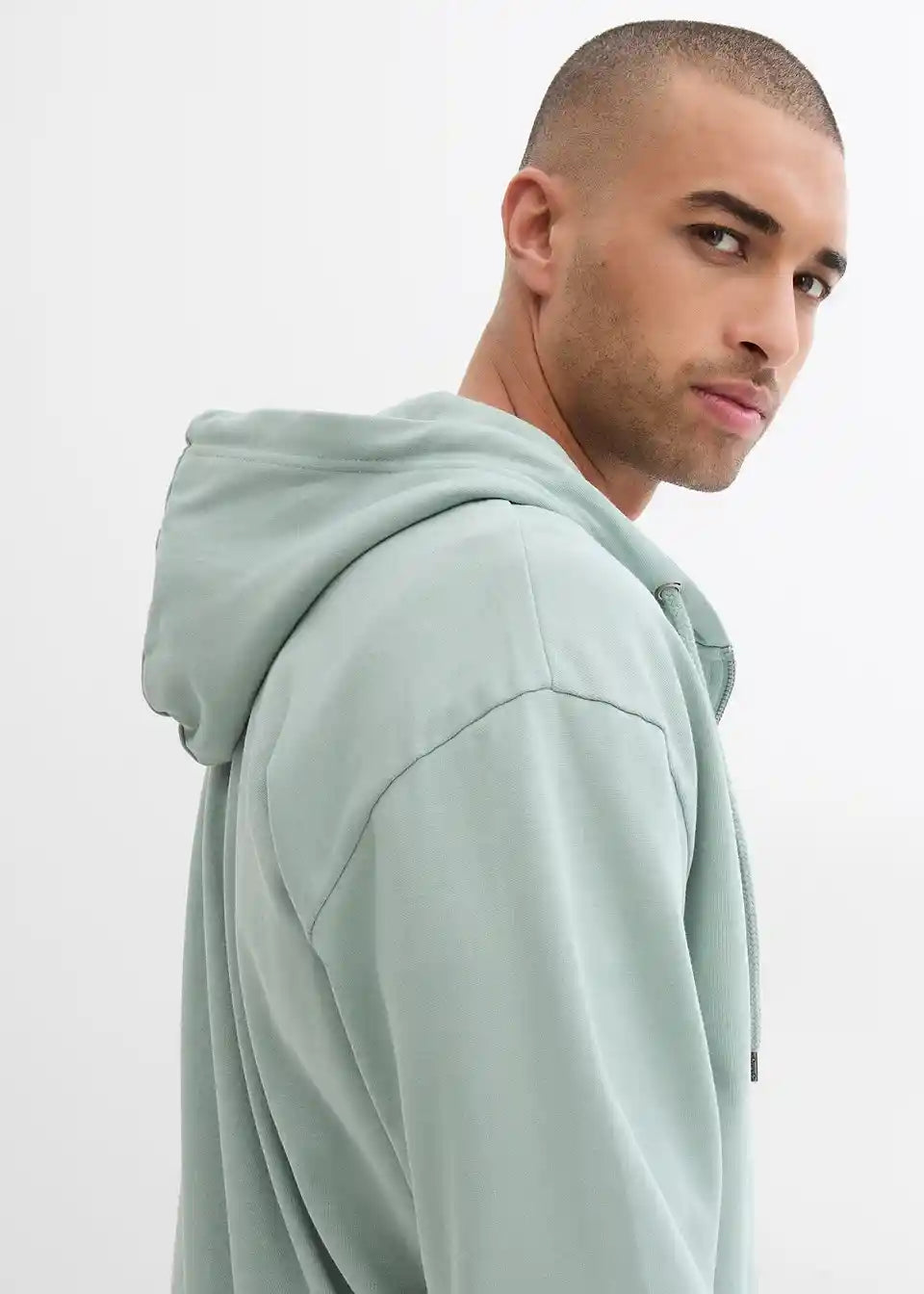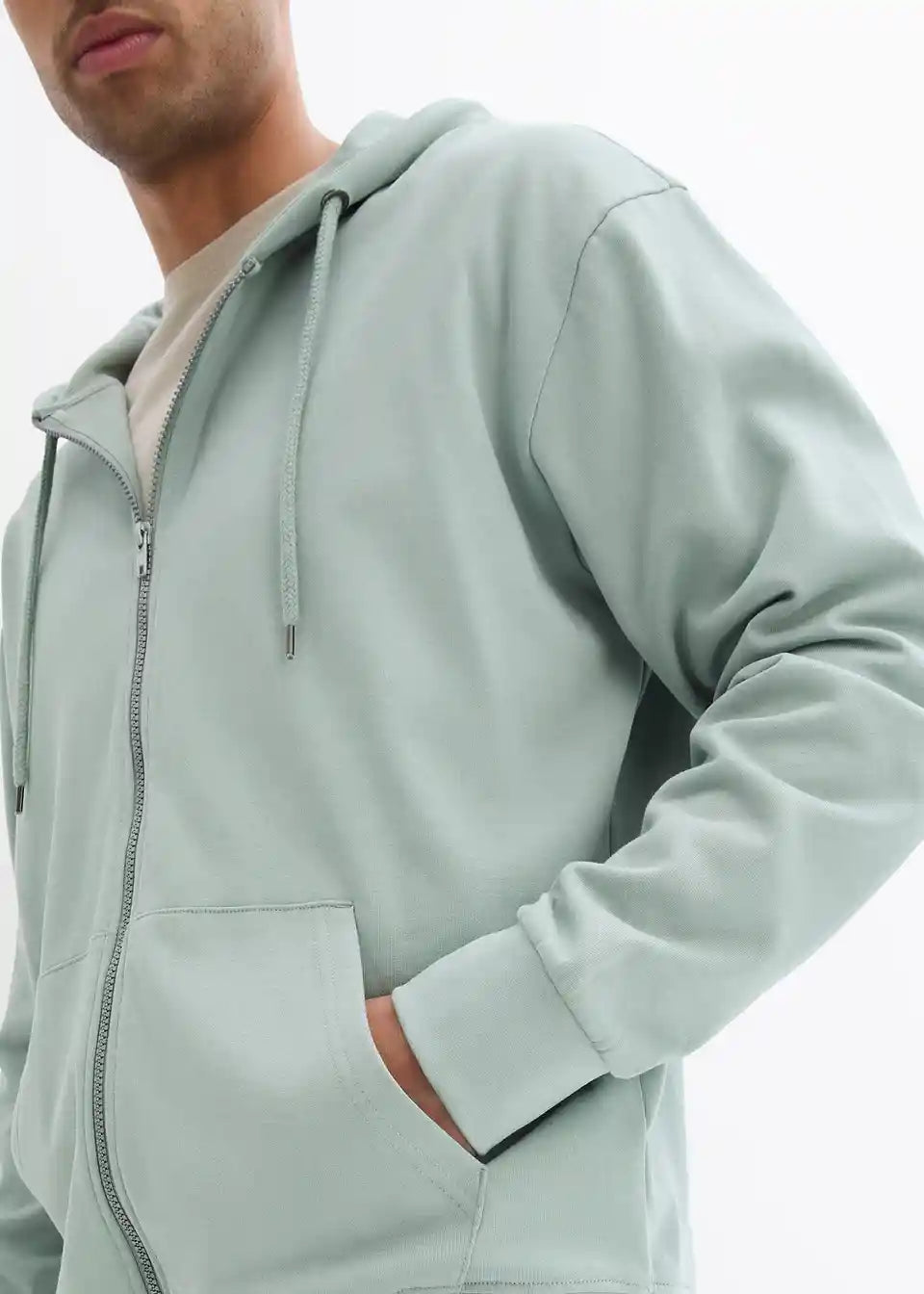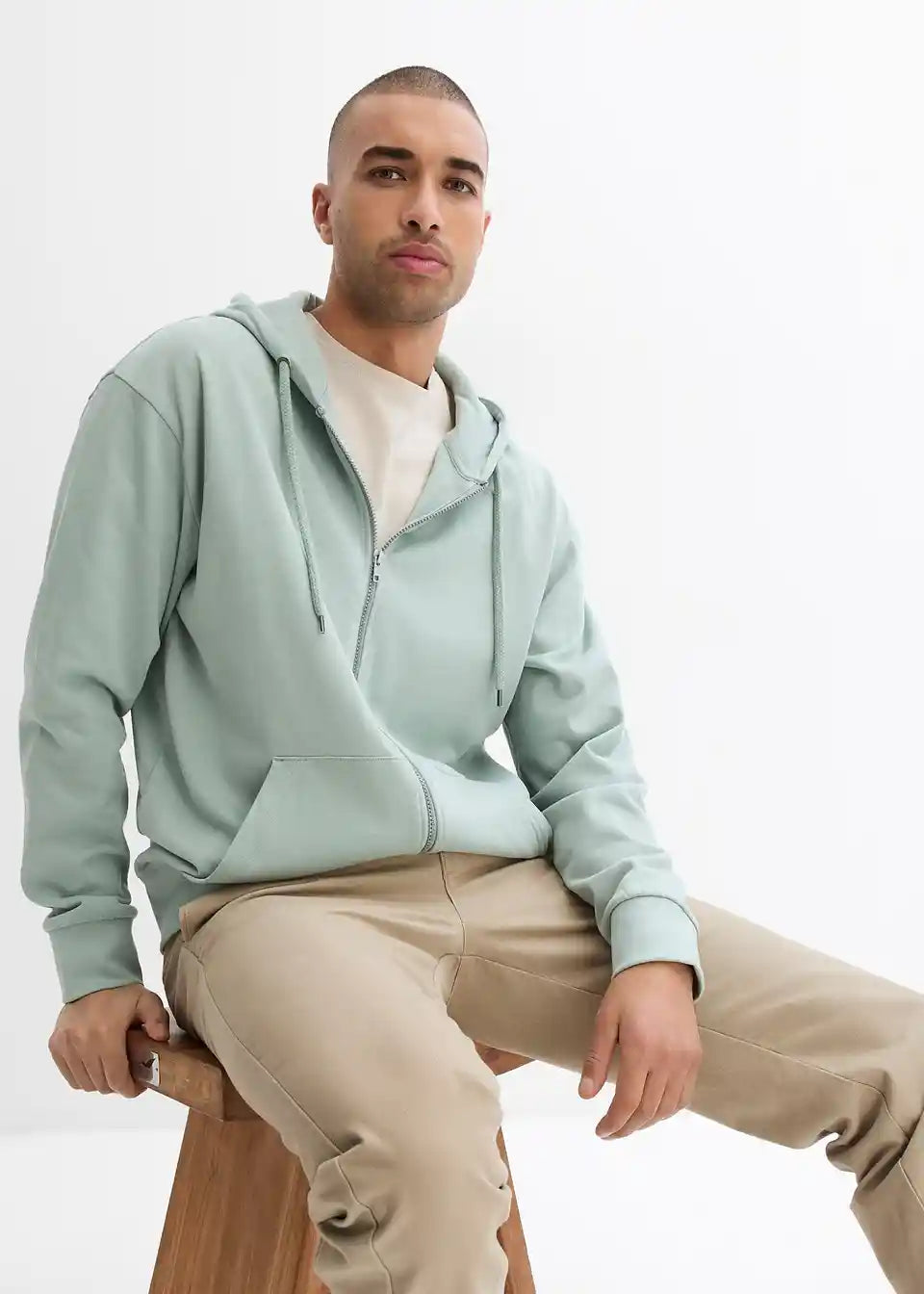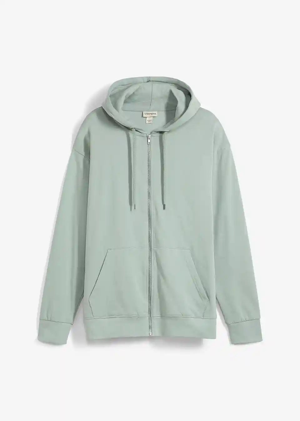 moderne Kapuzen-Sweatjacke mit Reißverschluss und in hautfreundlicher Bio-Baumwolle, innen weich angeraut