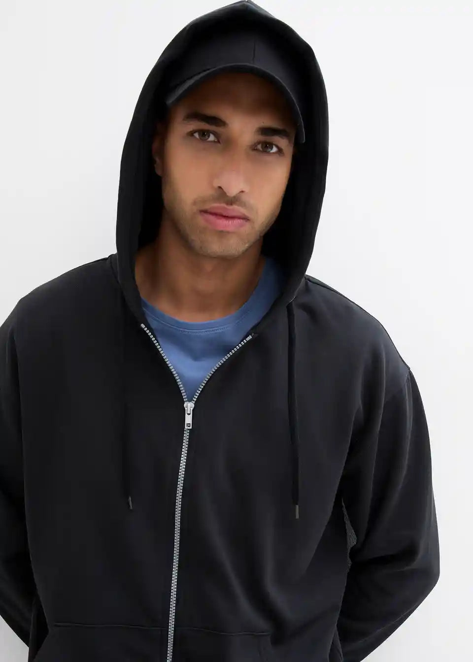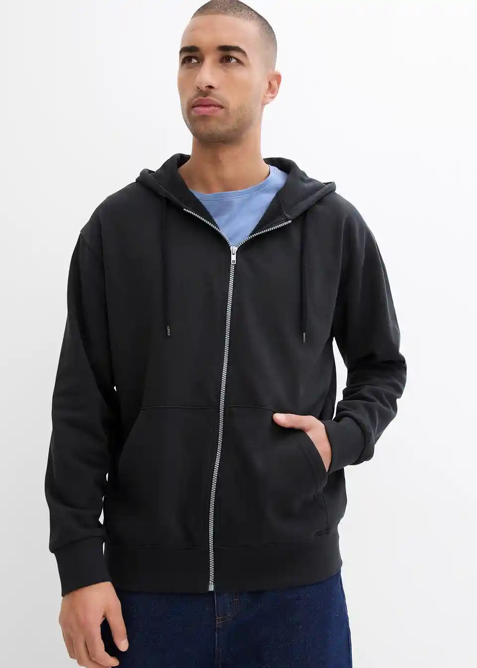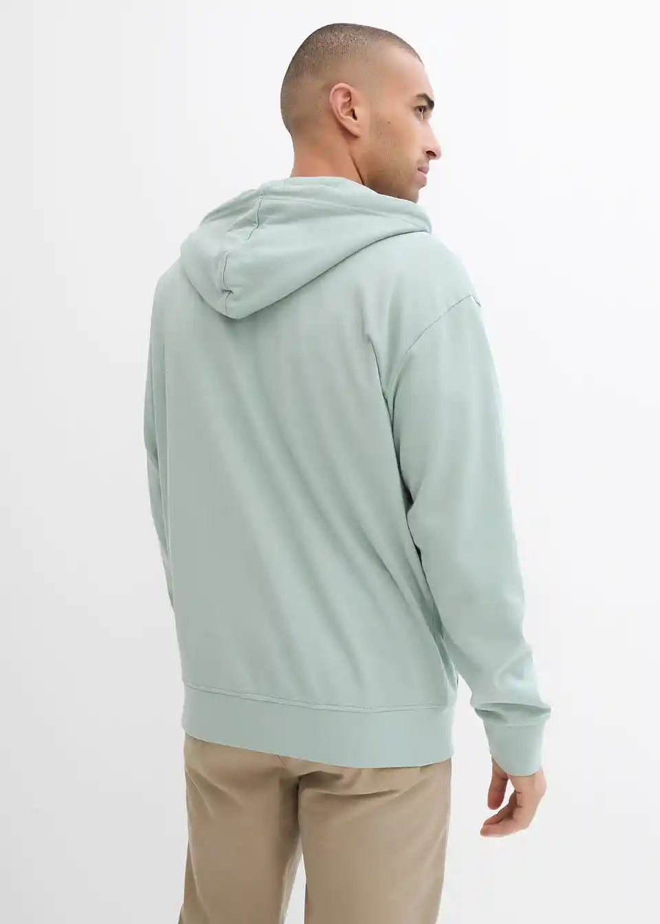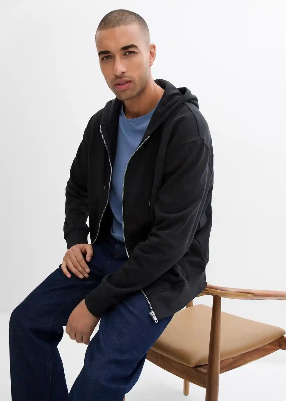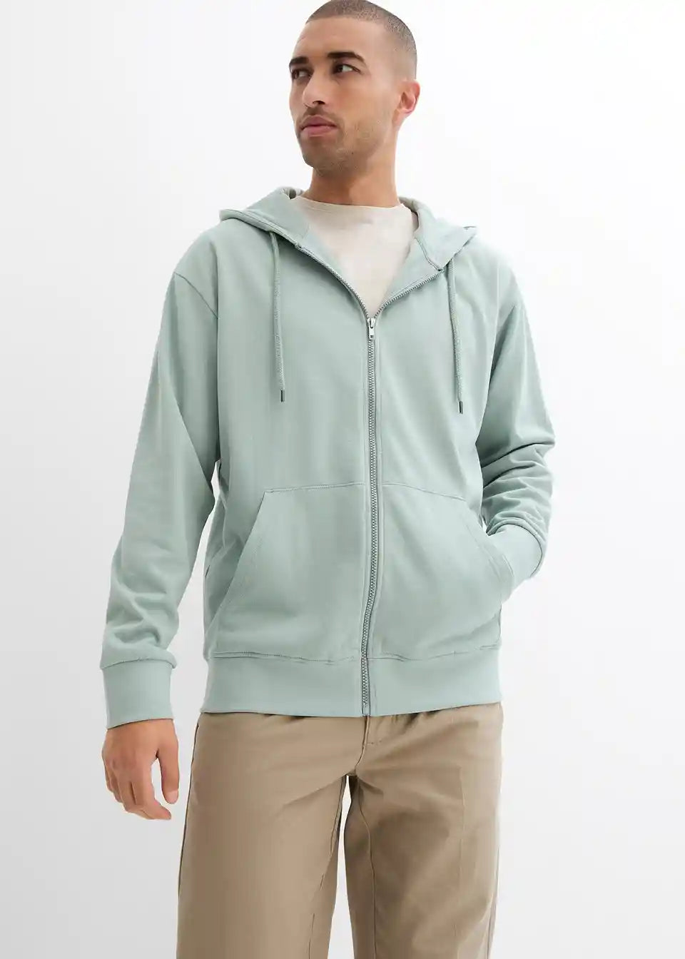 moderne Kapuzen-Sweatjacke mit Reißverschluss und in hautfreundlicher Bio-Baumwolle, innen weich angeraut