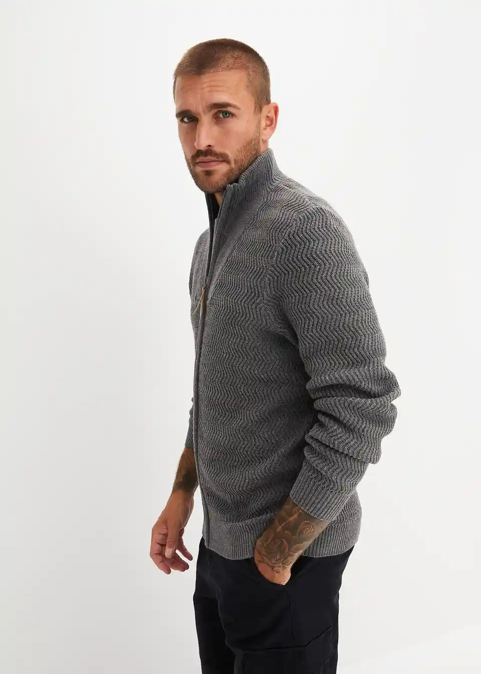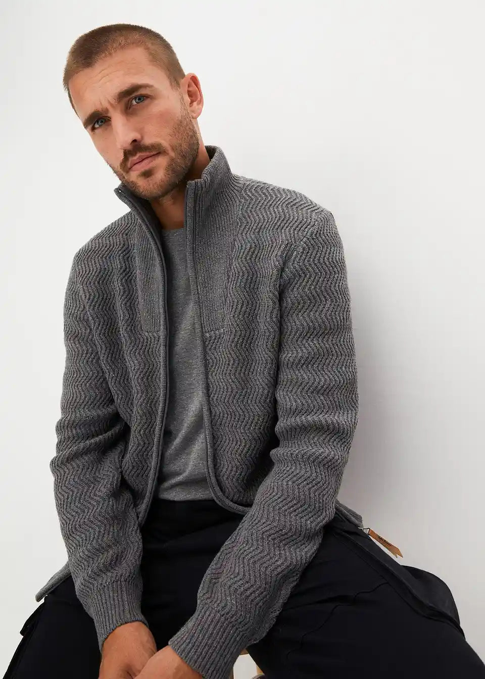 Strickjacke mit Stehkragen und recycelter Baumwolle