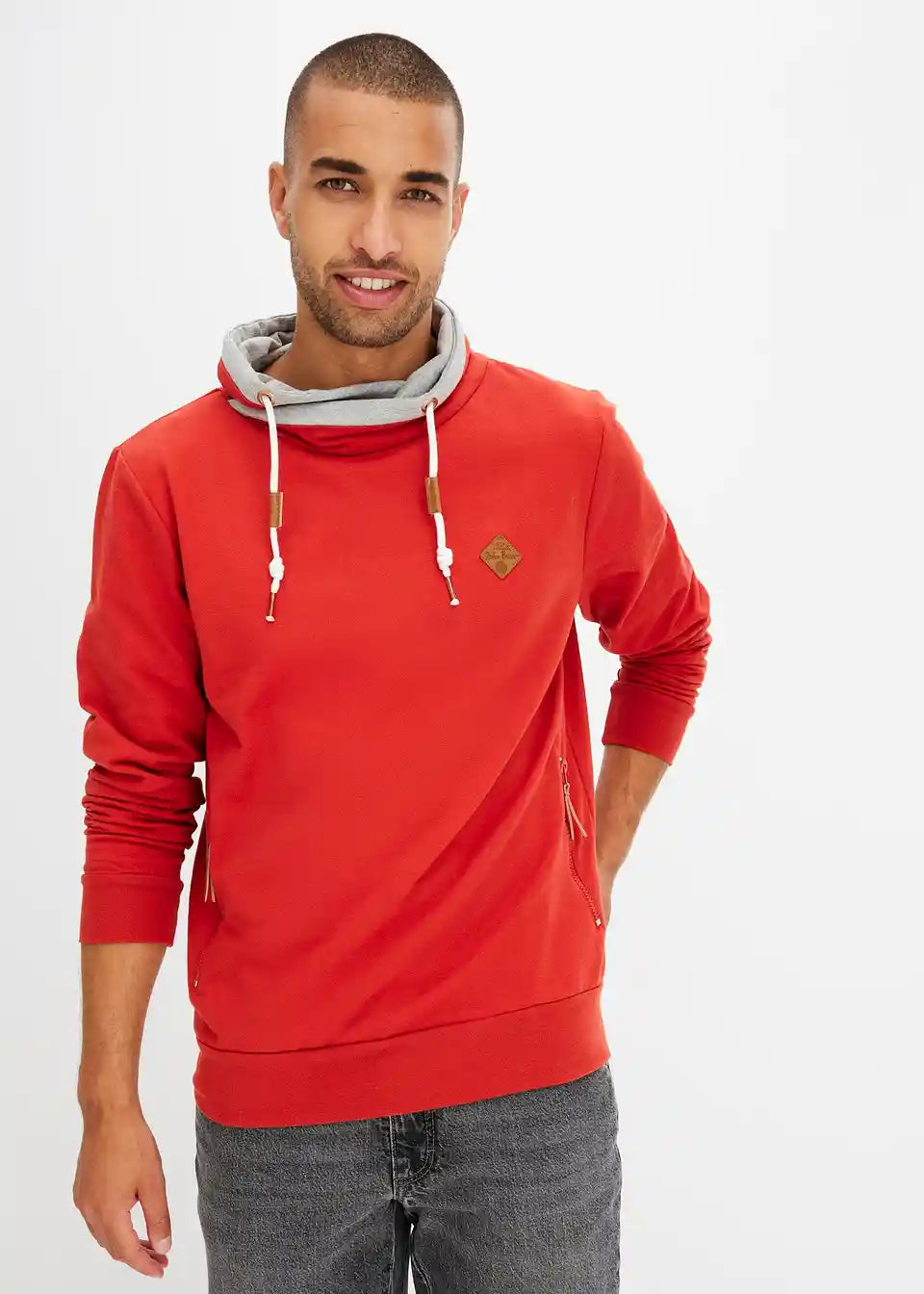 Modisches Sweatshirt mit PU-Details, innen weich angeraut
