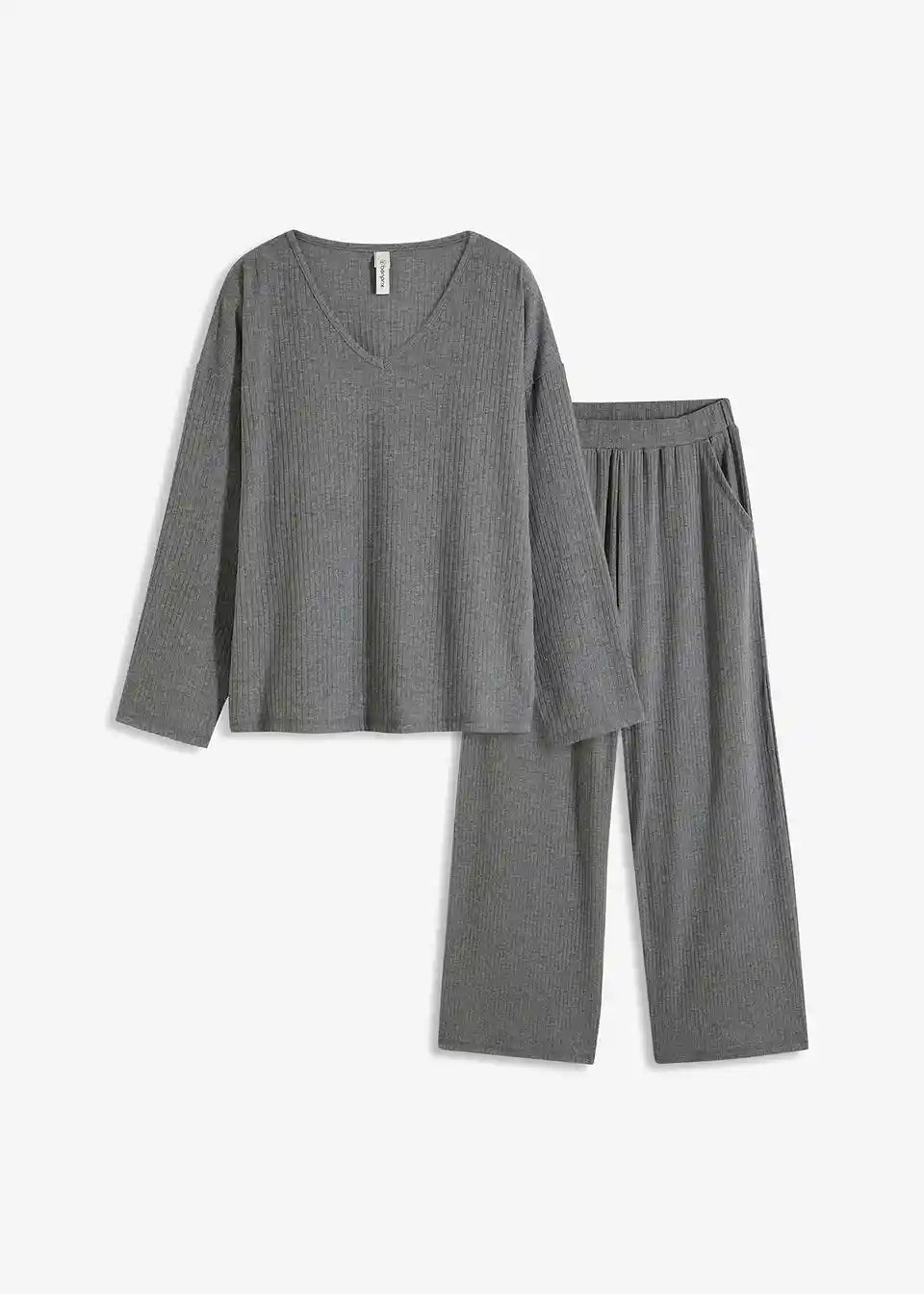 Moderner Loungewear Hausanzug aus gemütlicher Rippe im oversized Schnitt