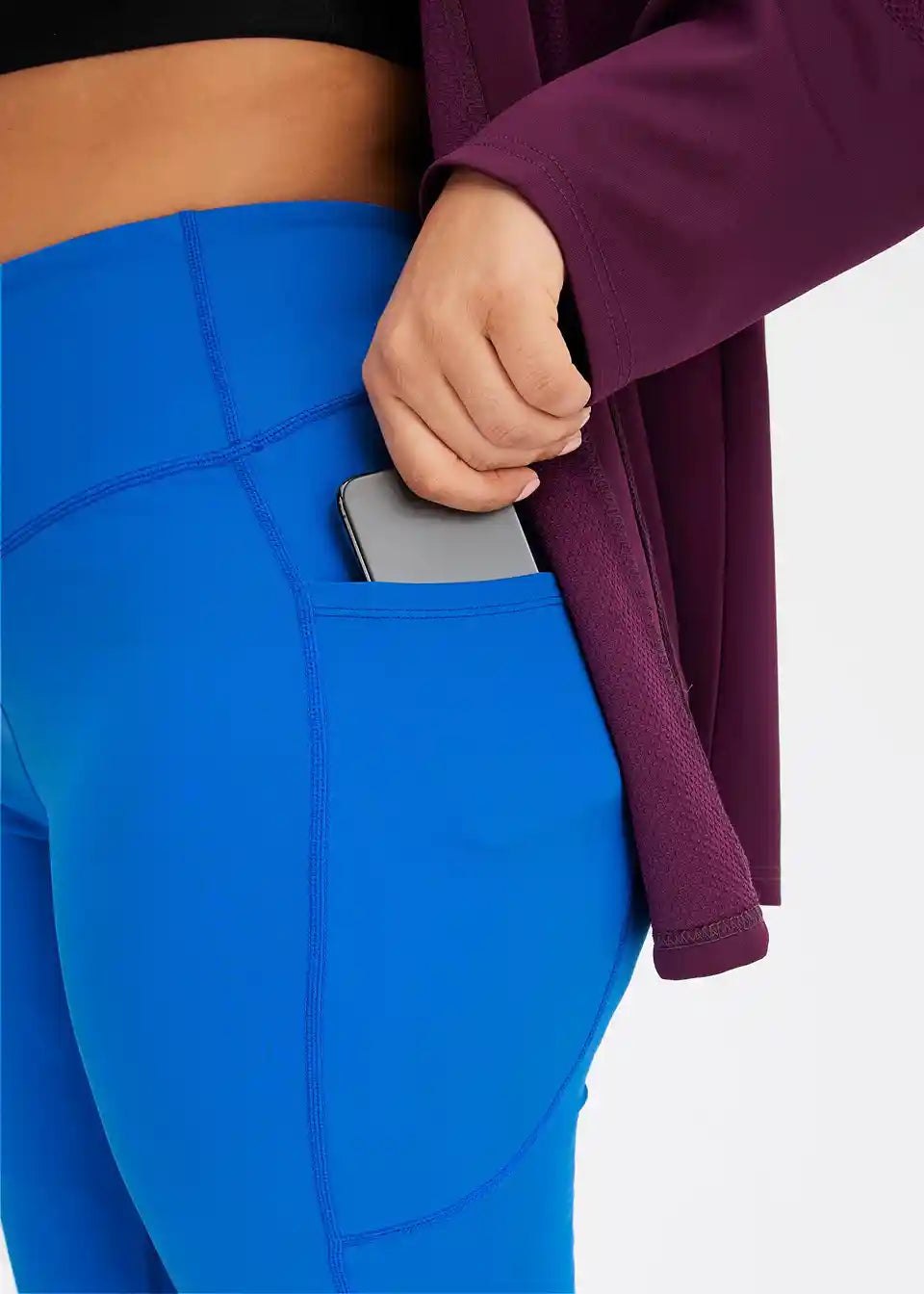 Komfort-Sport-Leggings mit Handytasche, ausgestellt