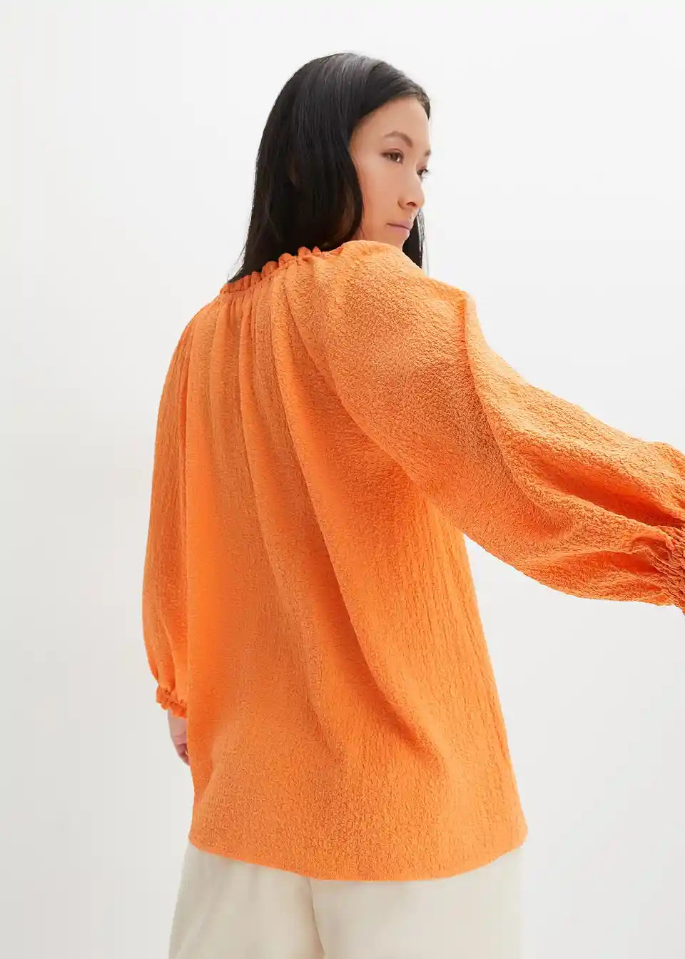 Weite Strukturbluse mit Rüschen kaschiert durch die A-Form Problemzonen