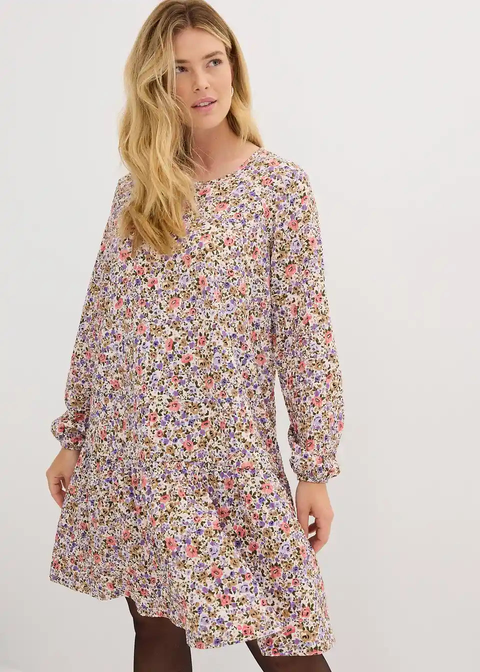 Herbstliches Jerseykleid aus weich fließender Crepe-Qualität mit langen Ärmeln