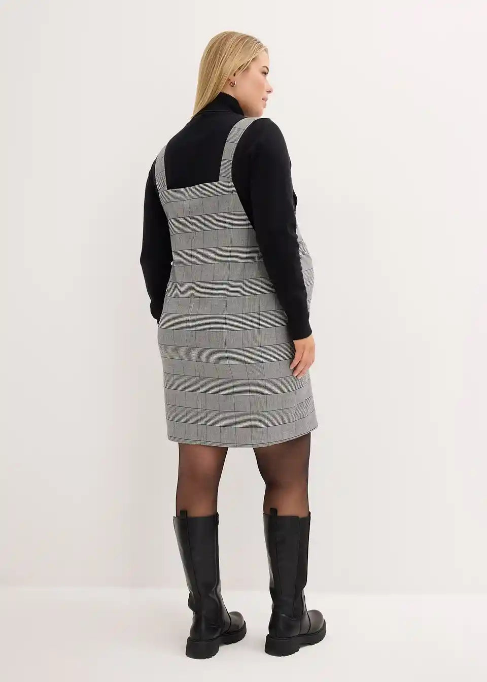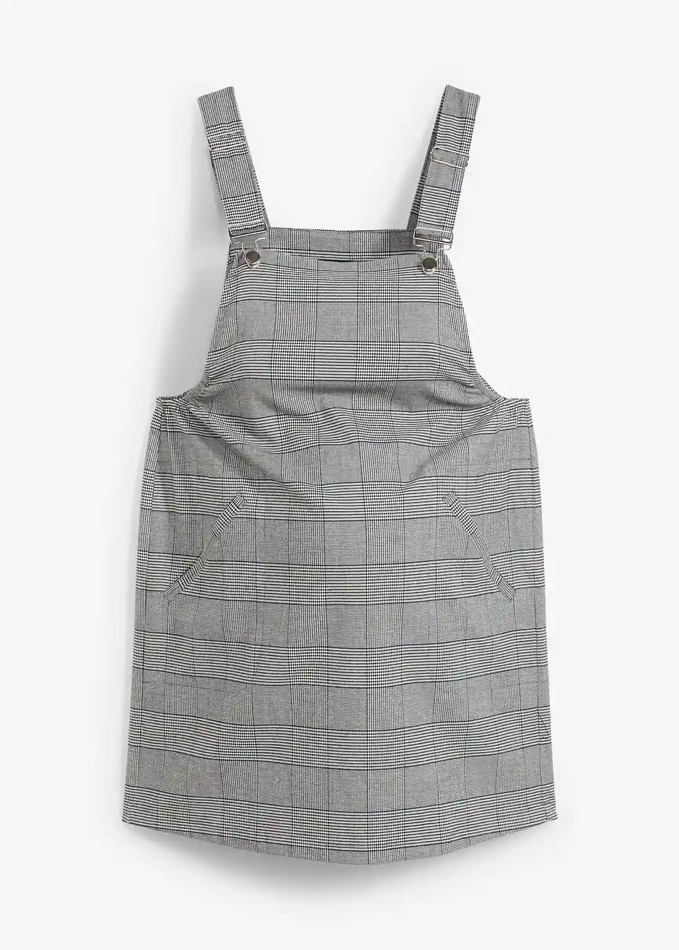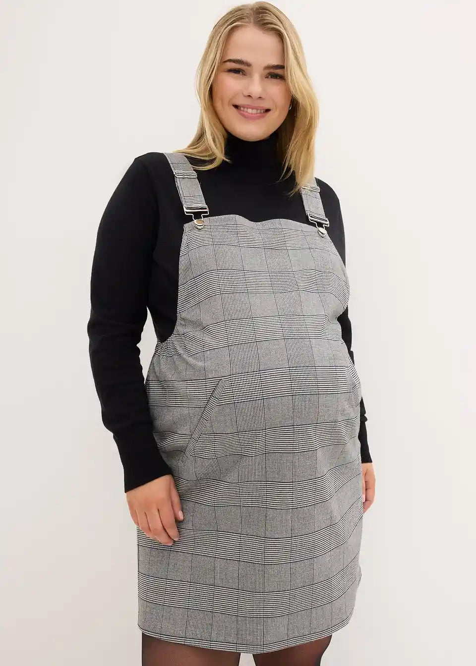 Umstandskleid mit verstellbaren Trägern aus einem leichten Webstoff. Mit Taschen vorne.