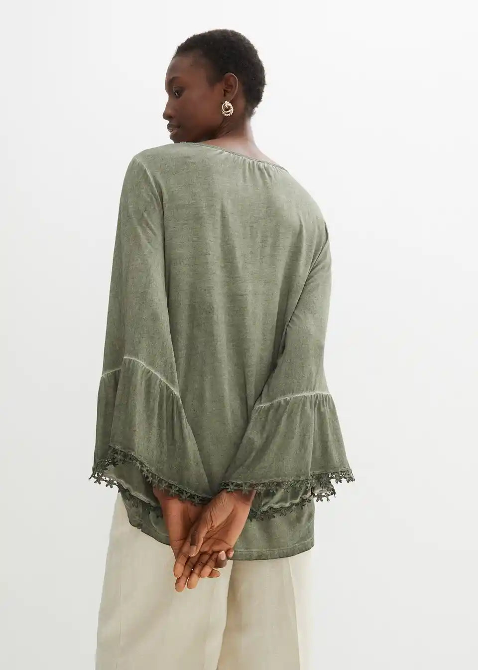 Shirt-Tunika mit Spitze am Halsausschnitt und an den Ärmeln