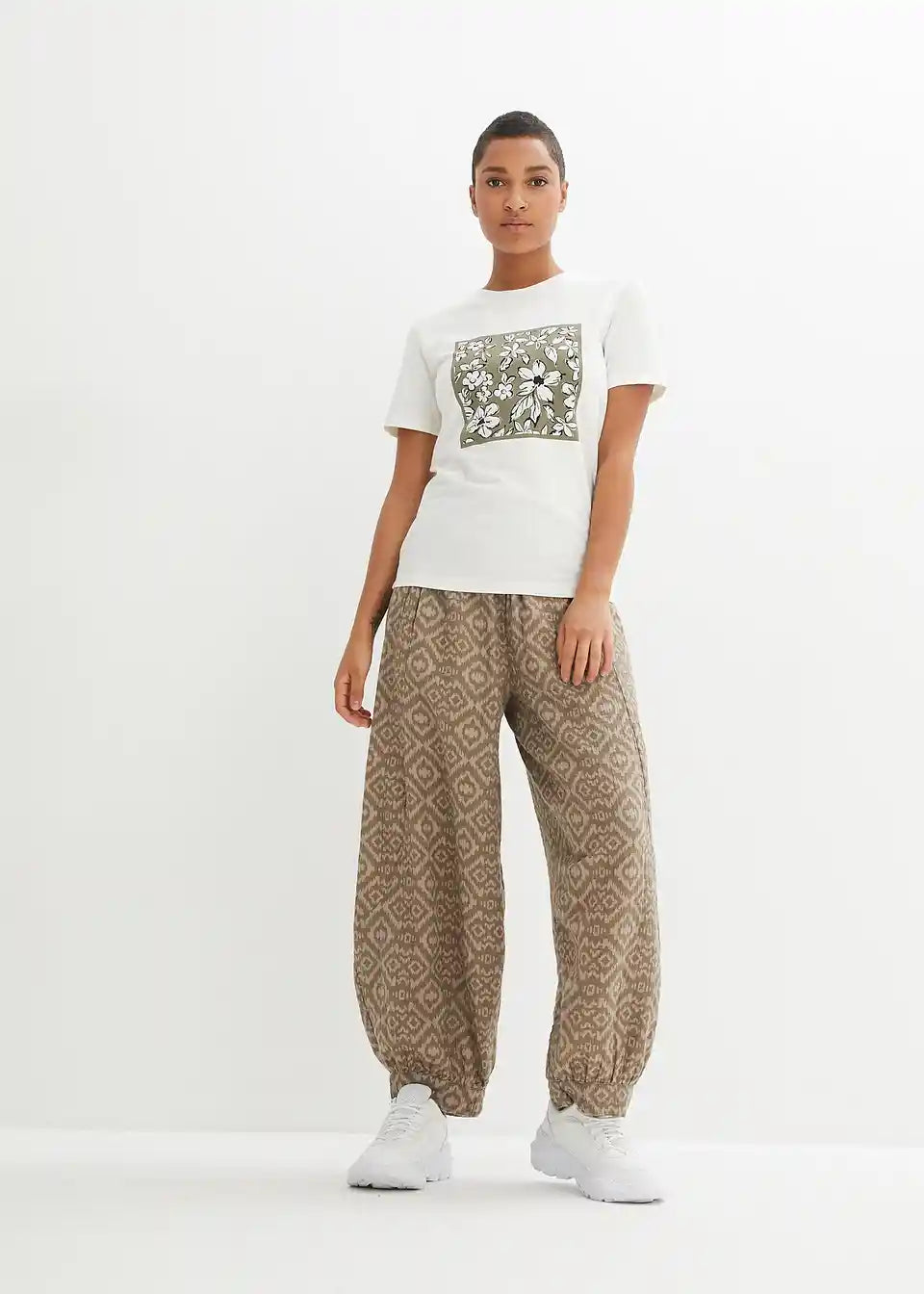 Bequeme und sommerliche Hose aus reiner Baumwolle mit weitem Bein