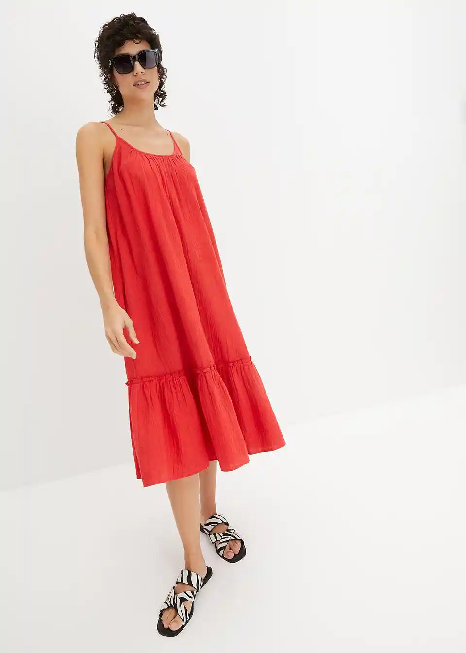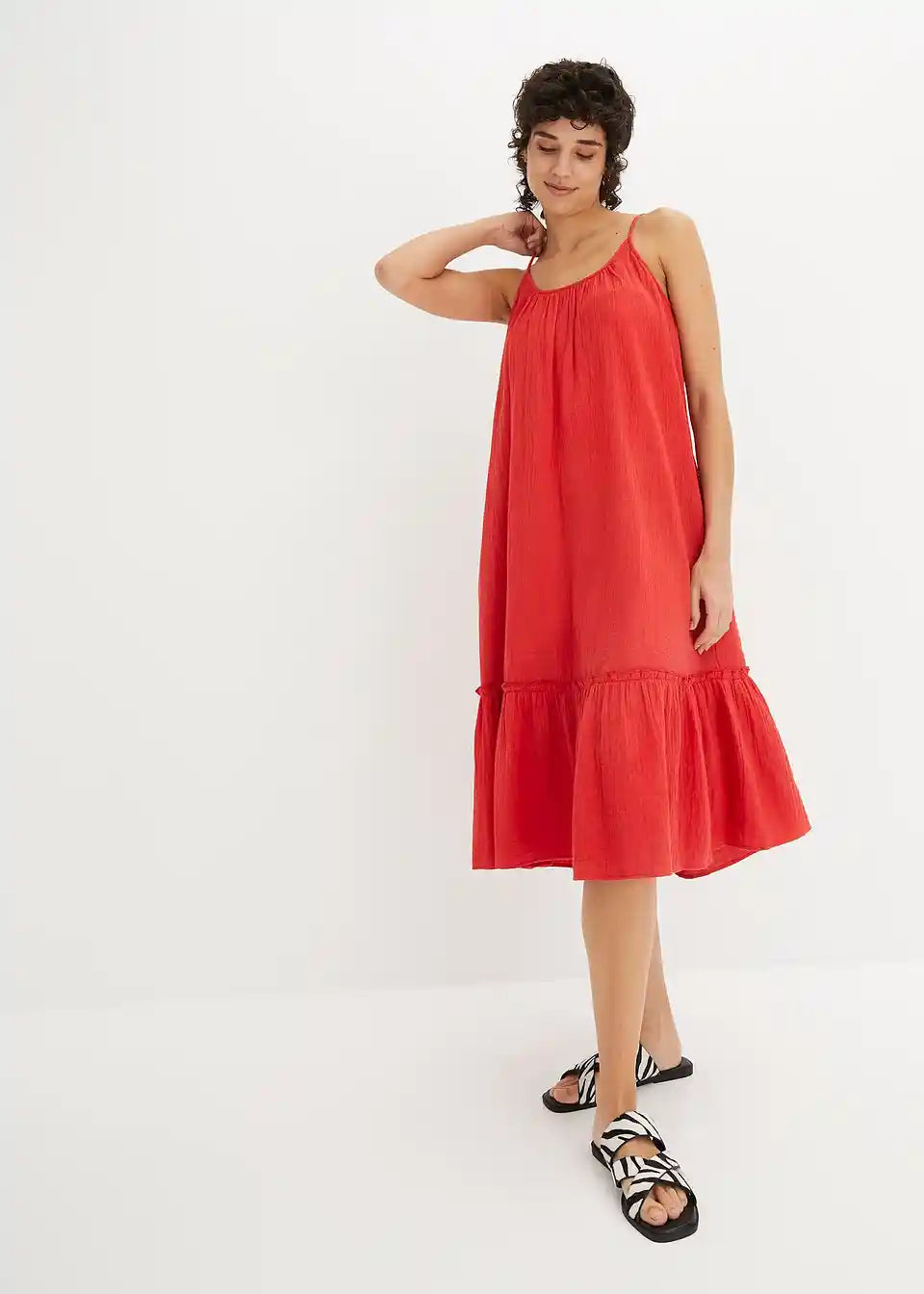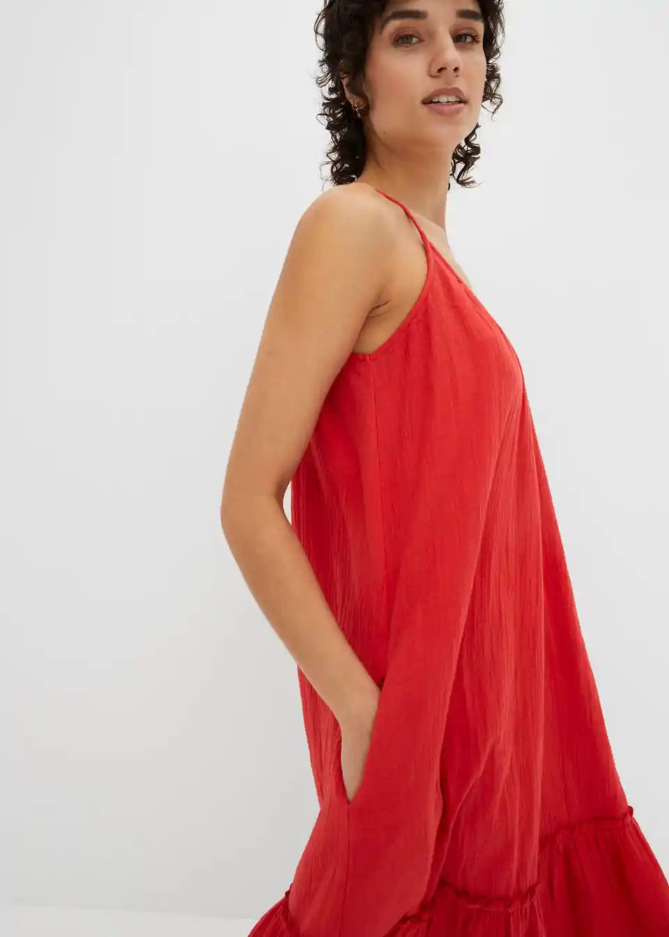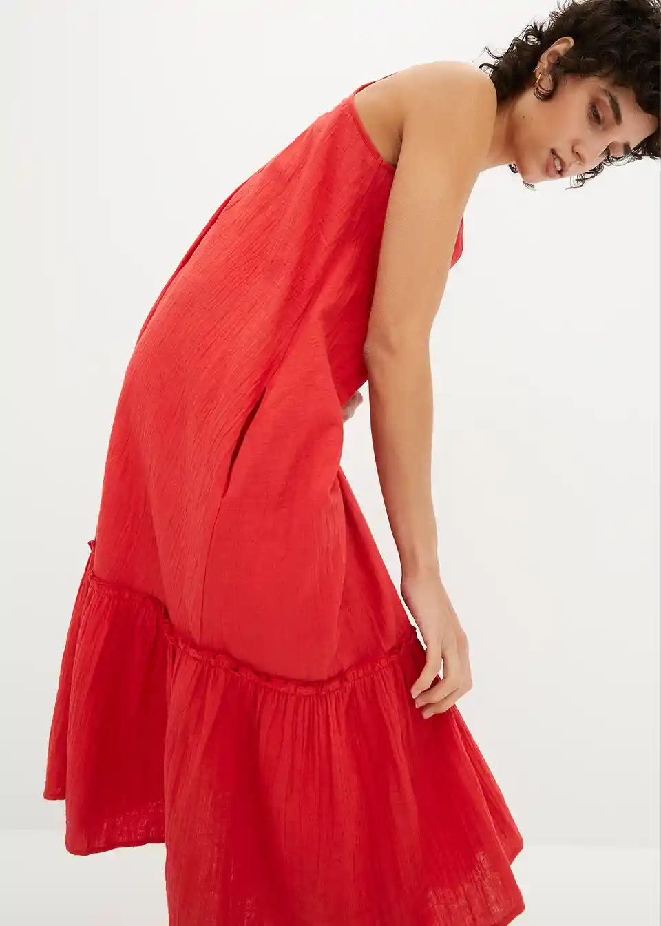 Lässiges Sommerkleid mit Eingriffstaschen in modischer, strukturierter Baumwoll-Musselin-Qualität