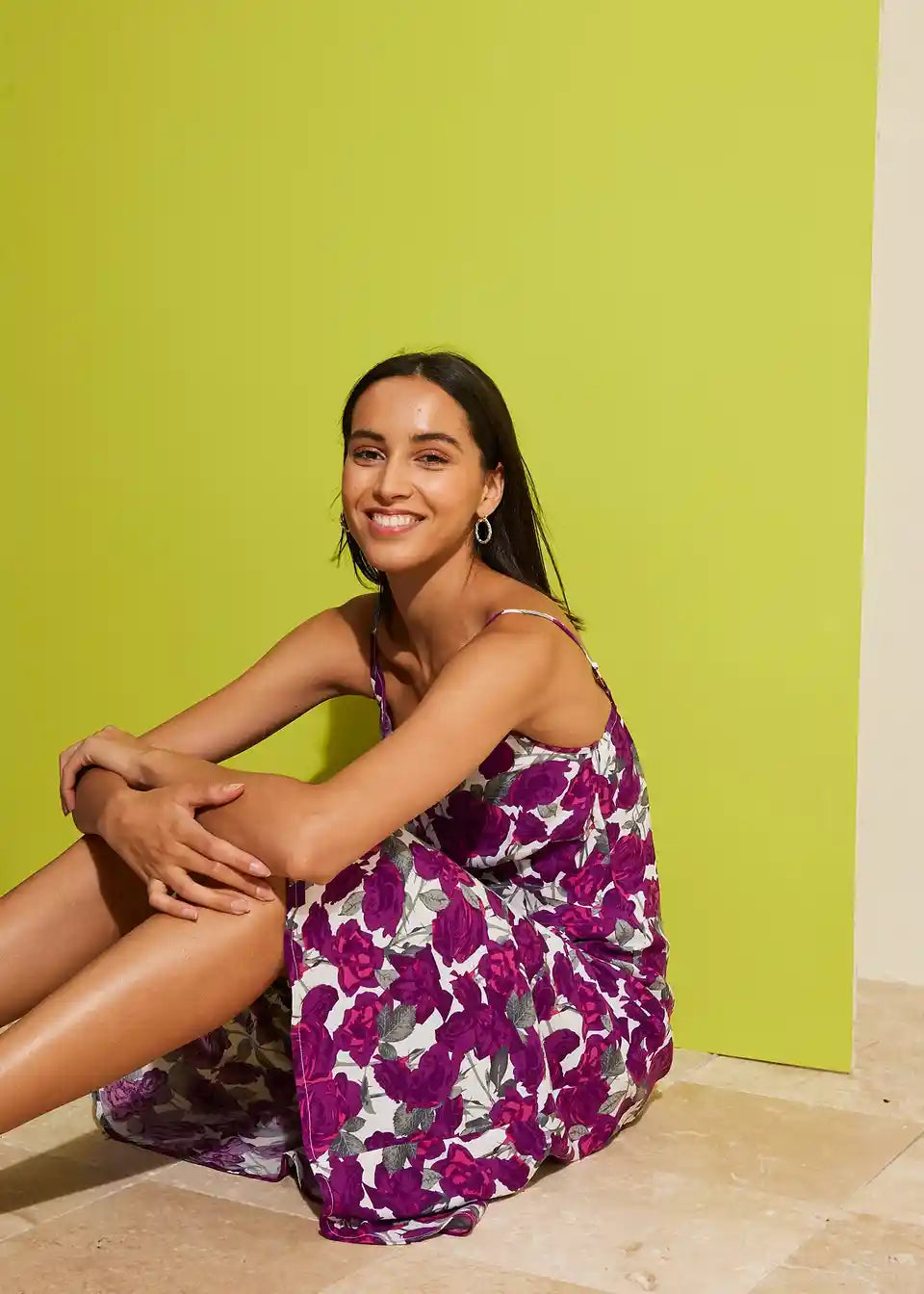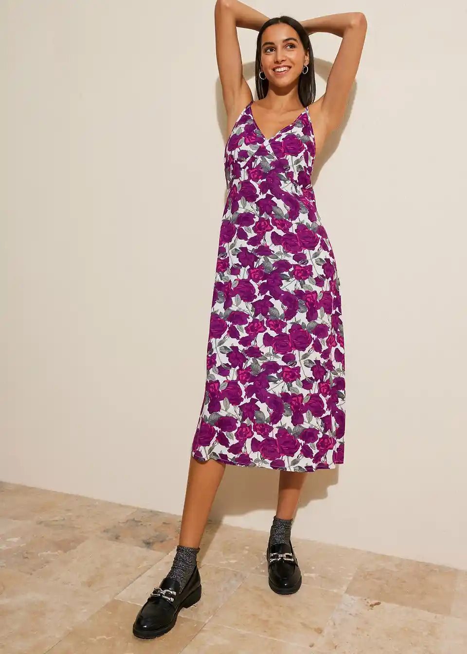 Bedrucktes Midikleid aus Viskose mit V-Ausschnitt