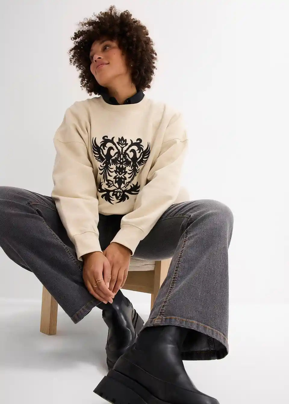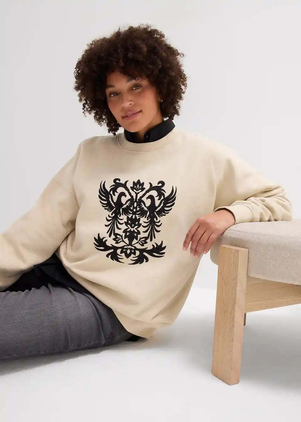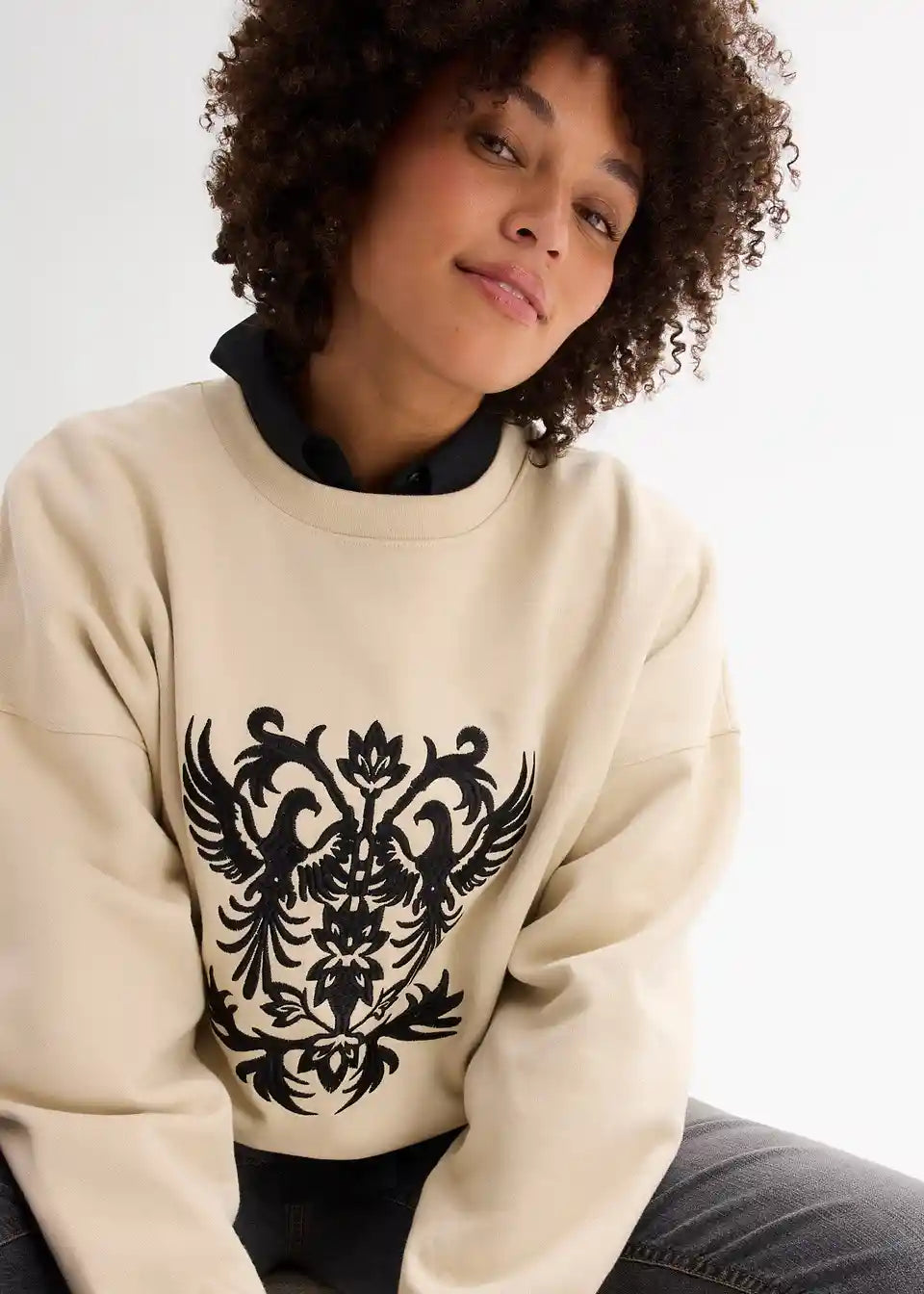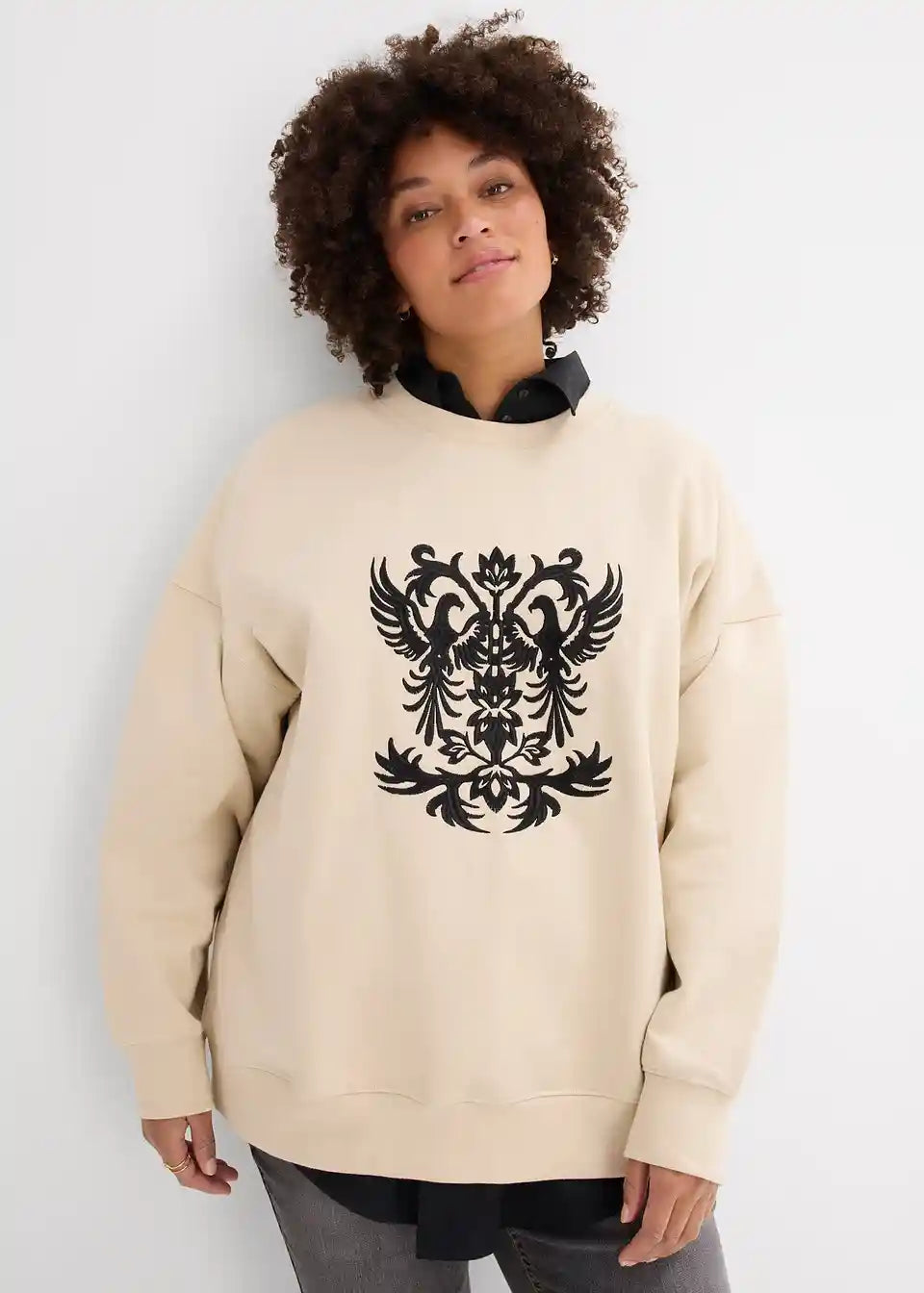 Langes Sweatshirt mit schöner Stickerei