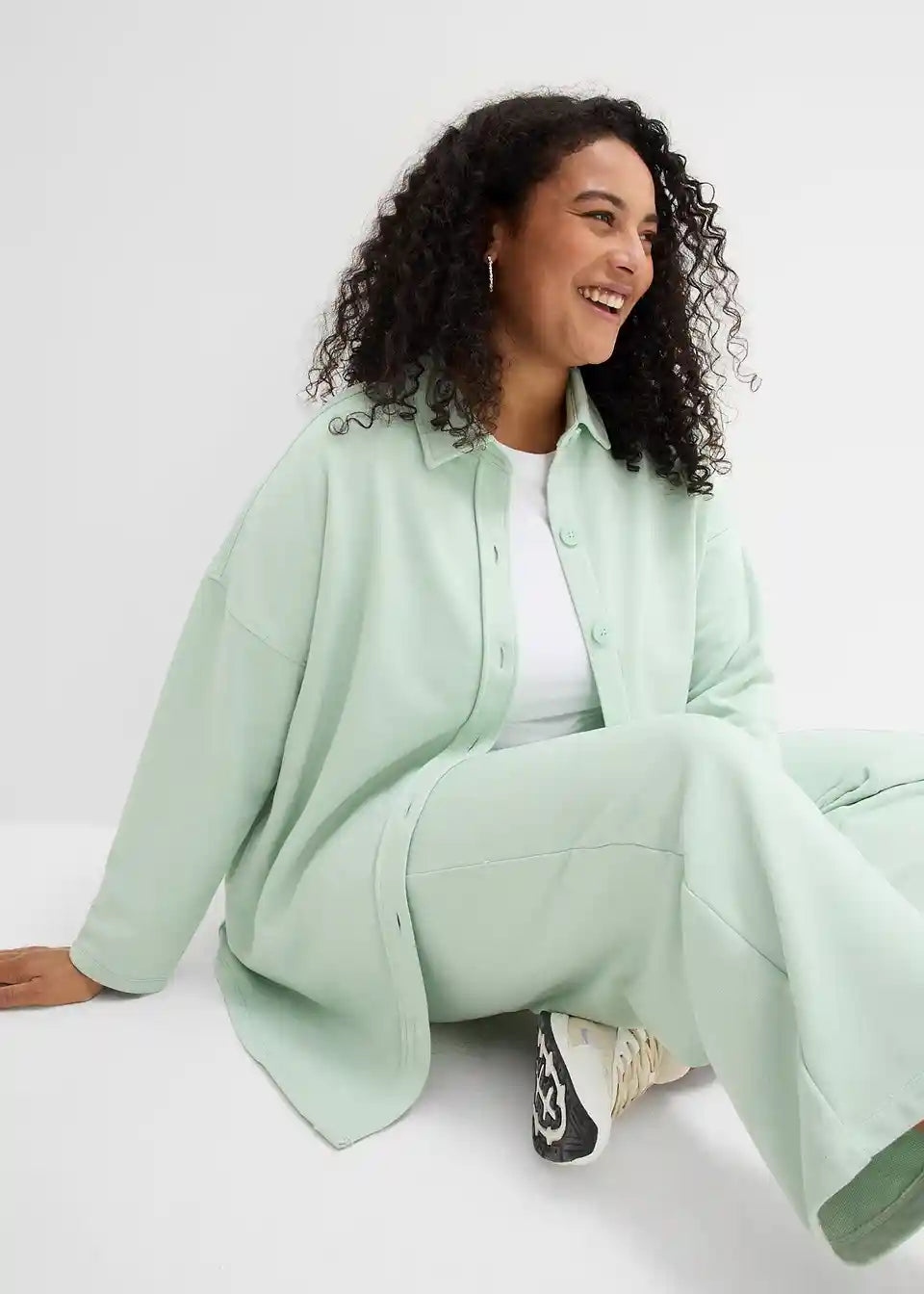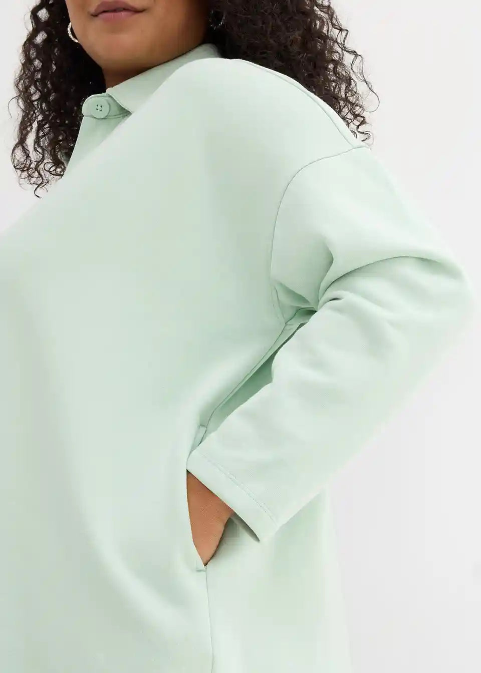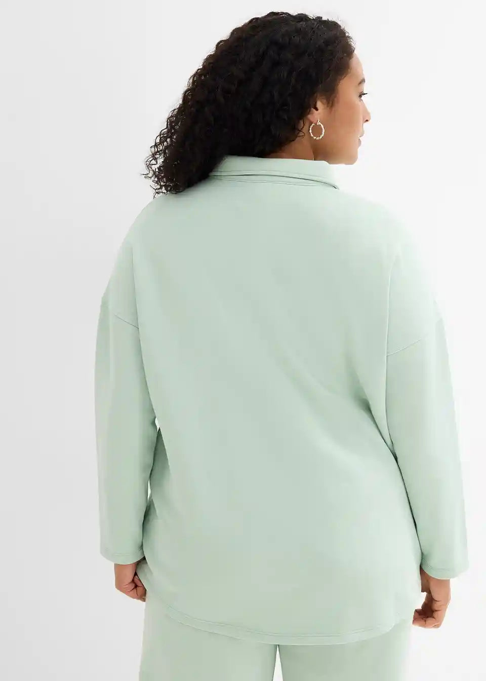 Lange Sweatjacke mit Knopfleiste und Eingriffstaschen