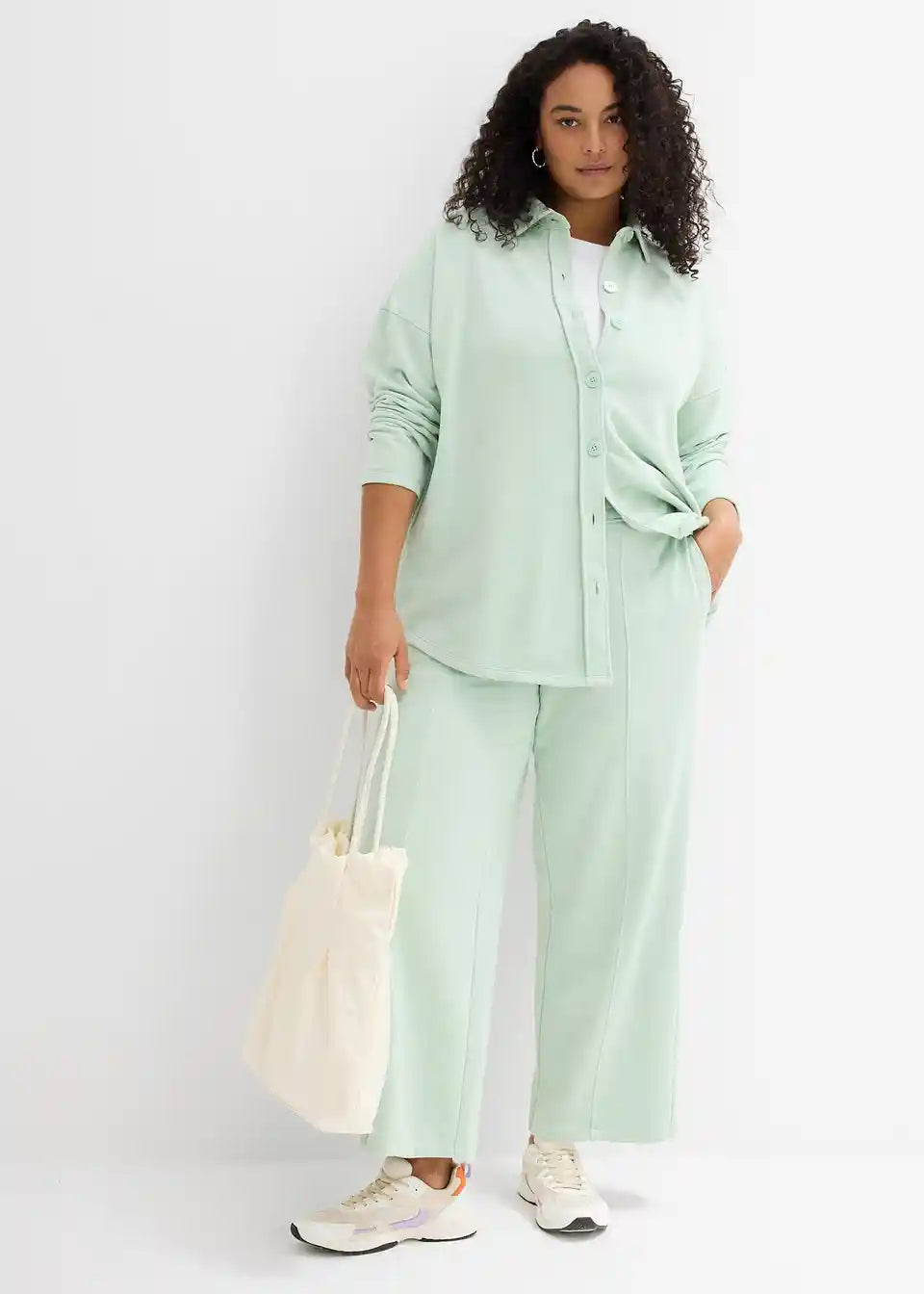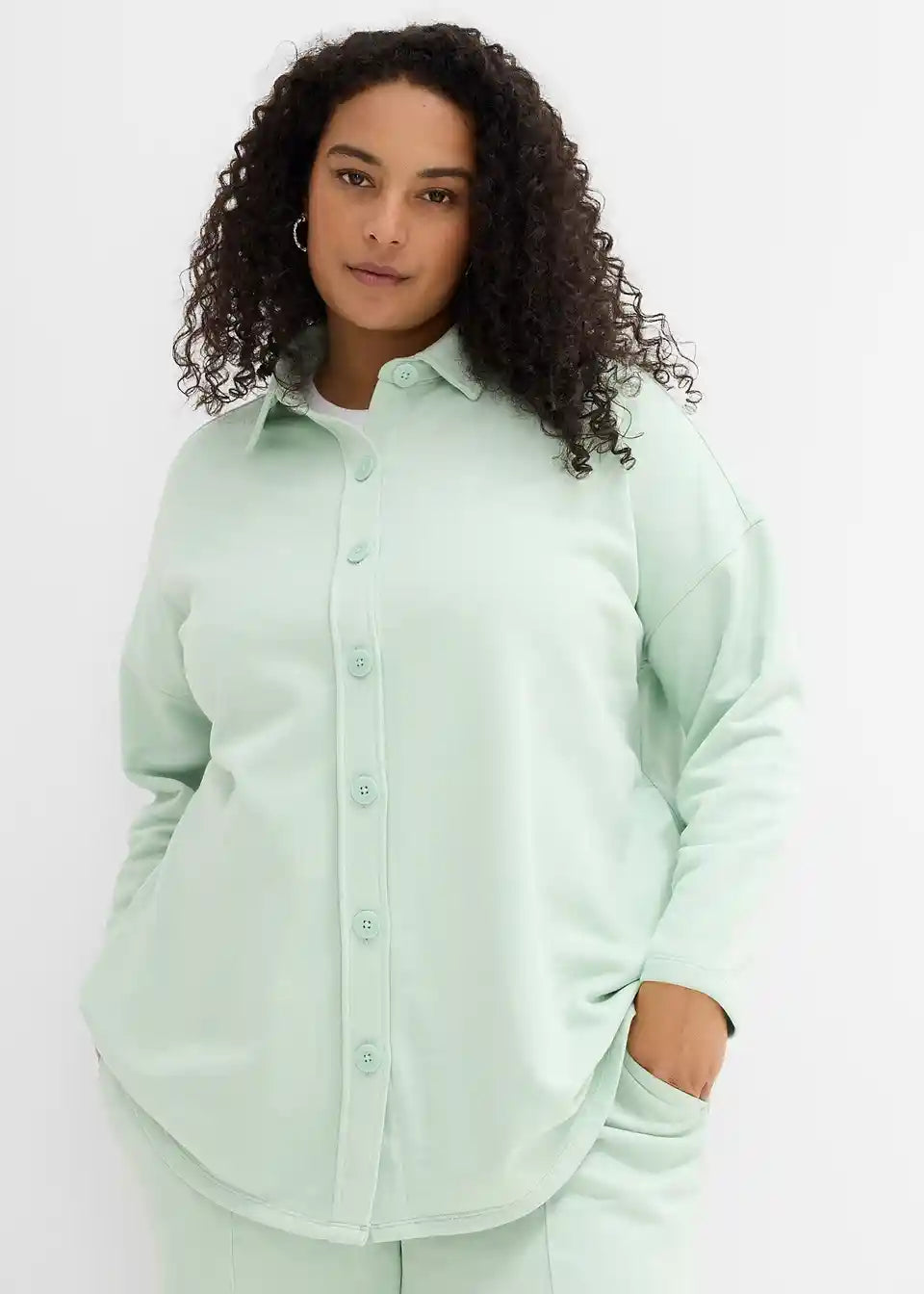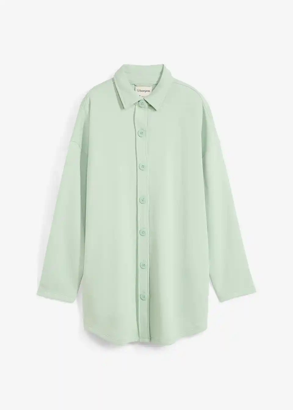 Lange Sweatjacke mit Knopfleiste und Eingriffstaschen
