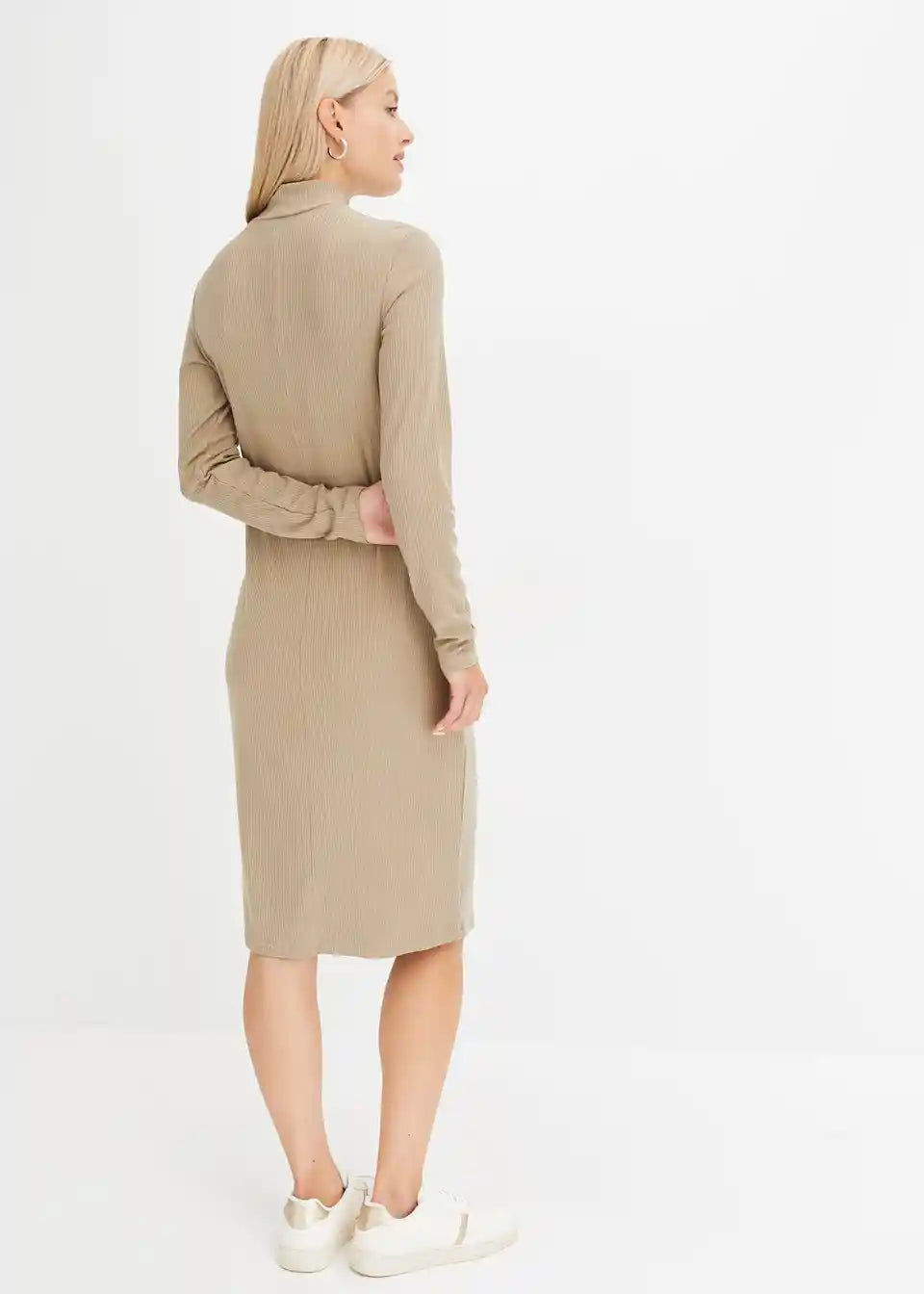 Das Material ist gut fließend, so dass es nicht alles, was man kaschieren möchte, nachzeichnet. Ich habe eine Nummer größer als meine übliche Größe gekauft. So ist es wirklich gut tragbar und nicht wurstig. Die Farbe Macchiato sieht richtig gut aus. Ich h