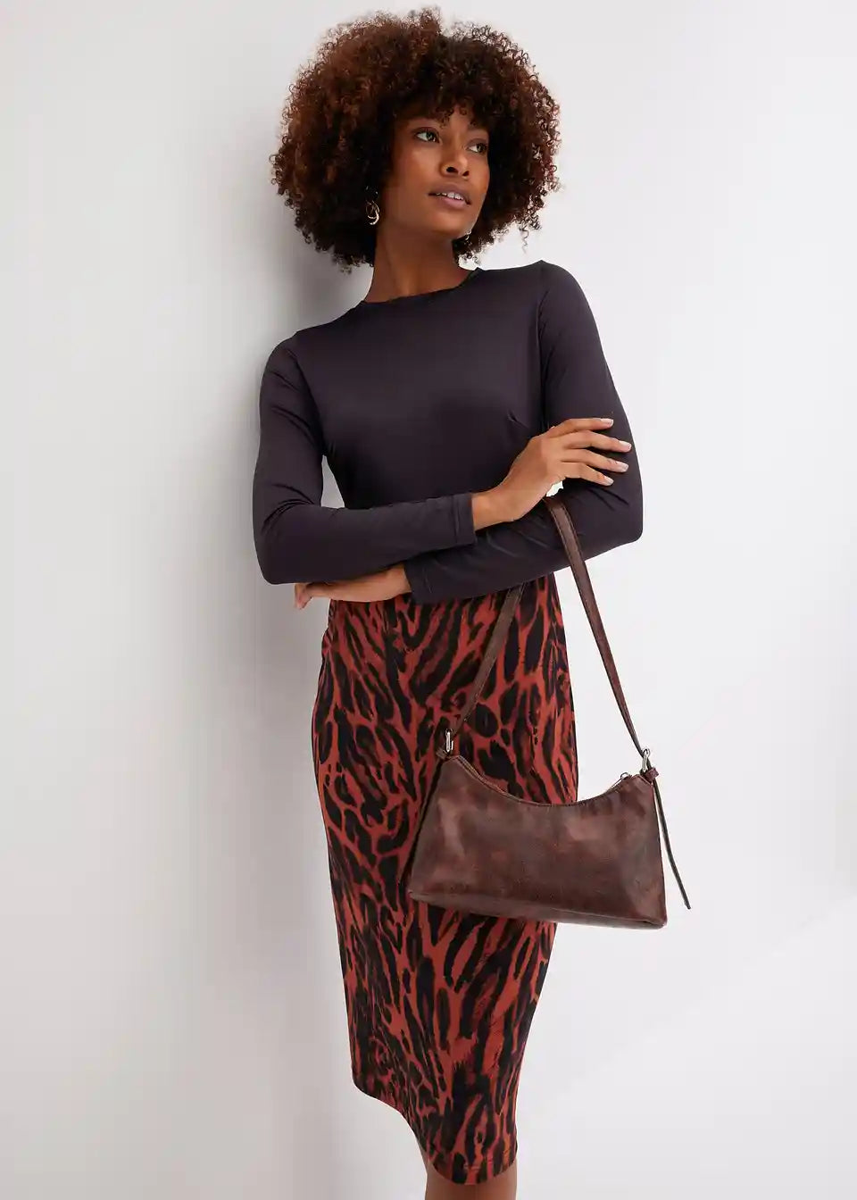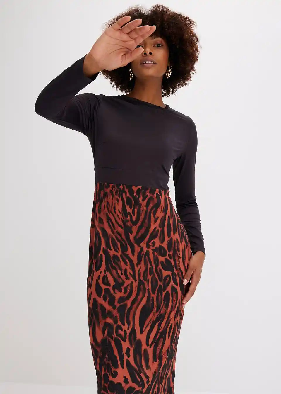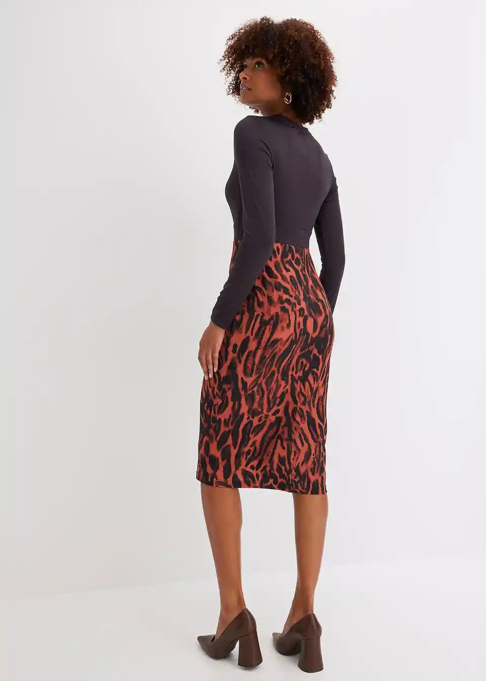 Modern und Feminin: Jerseykleid mit bedrucktem Rockteil.
