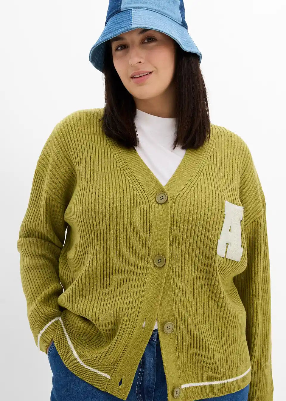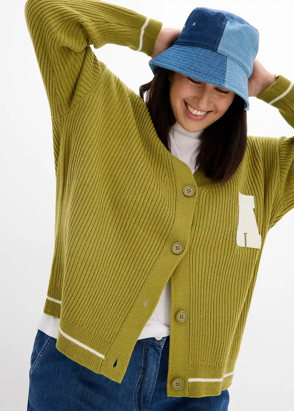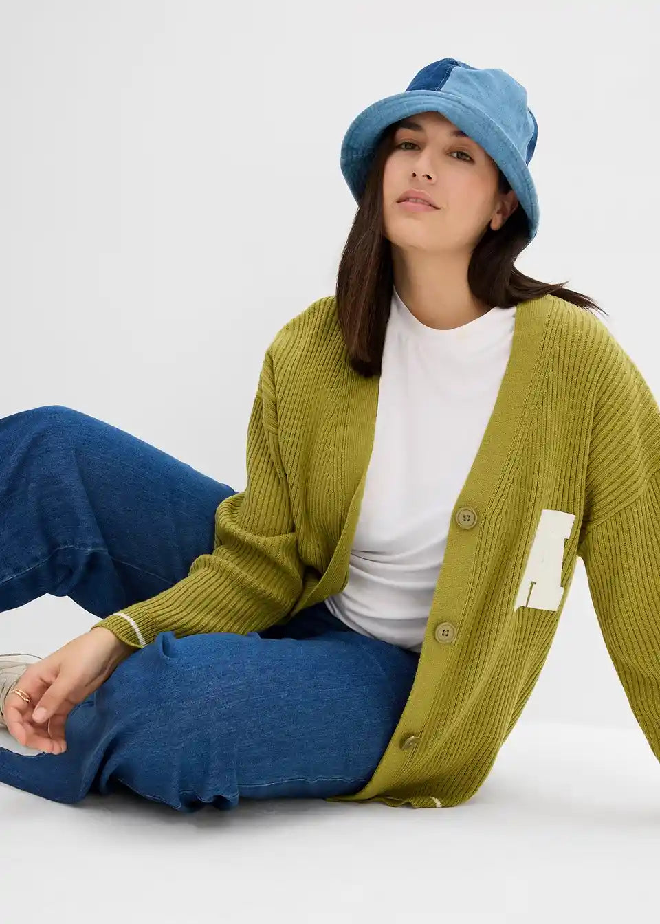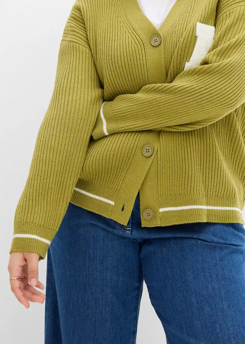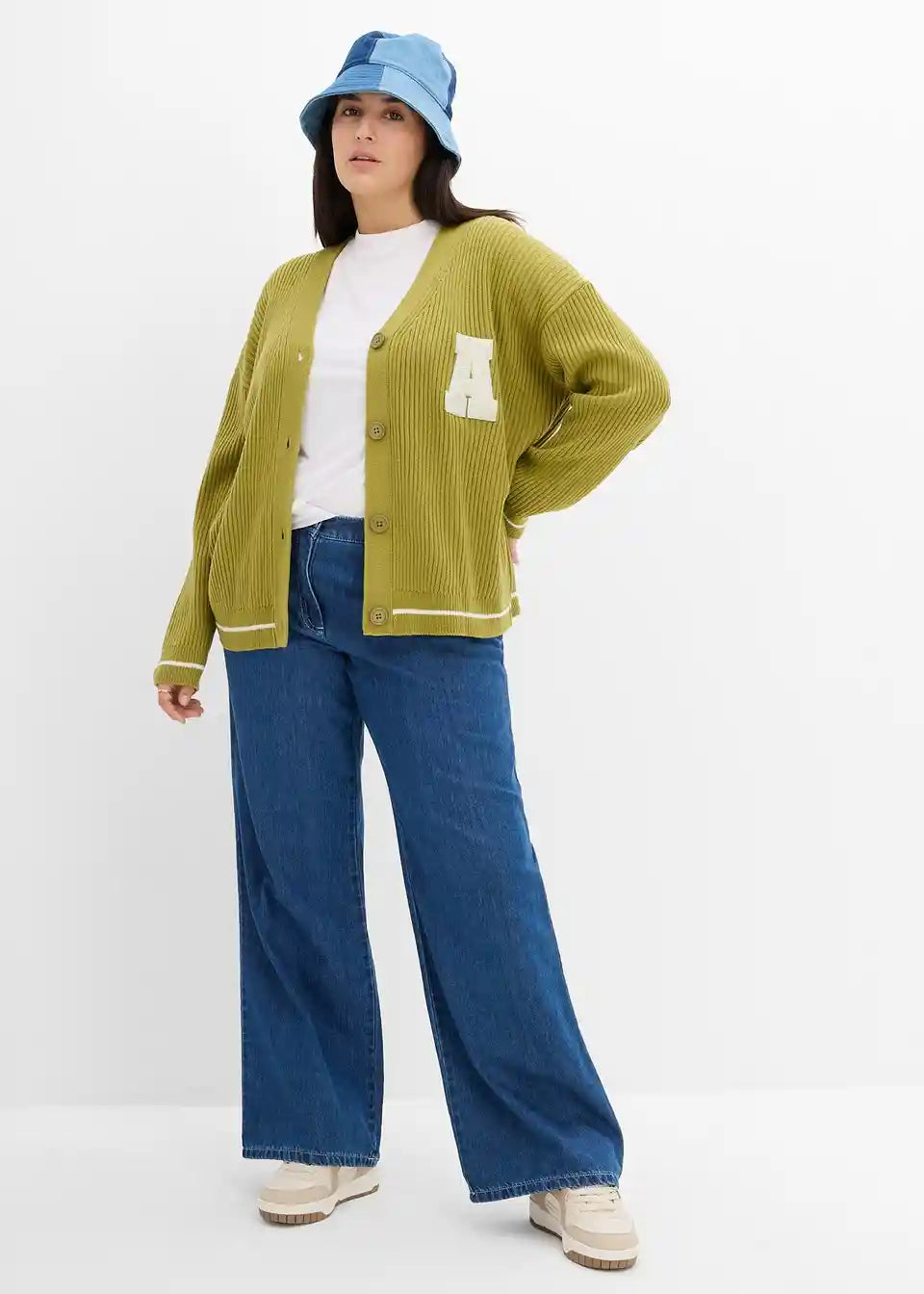 Modischer Oversize Cardigan mit Stickerei und V-Ausschnitt