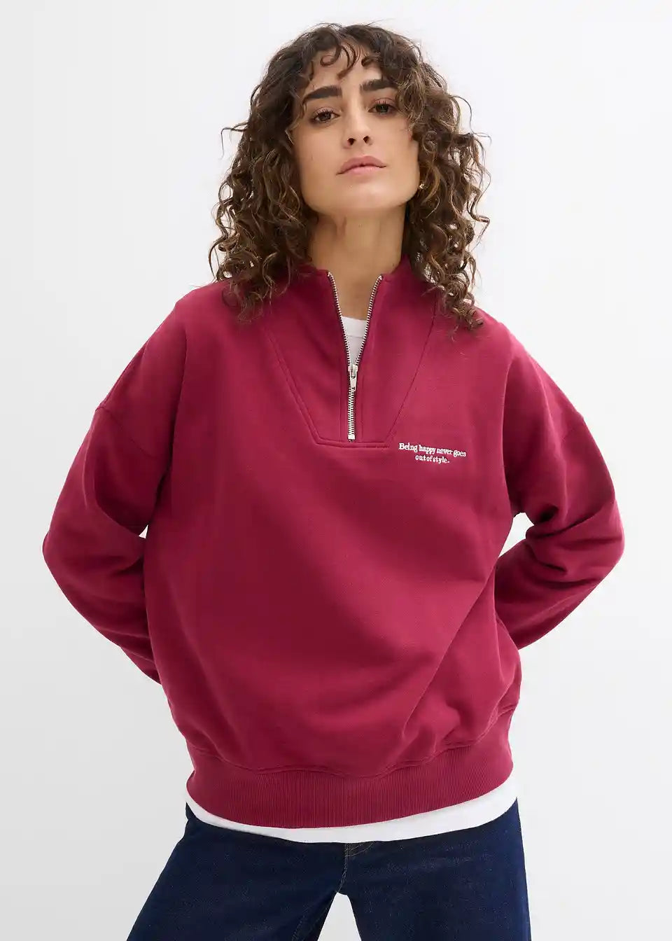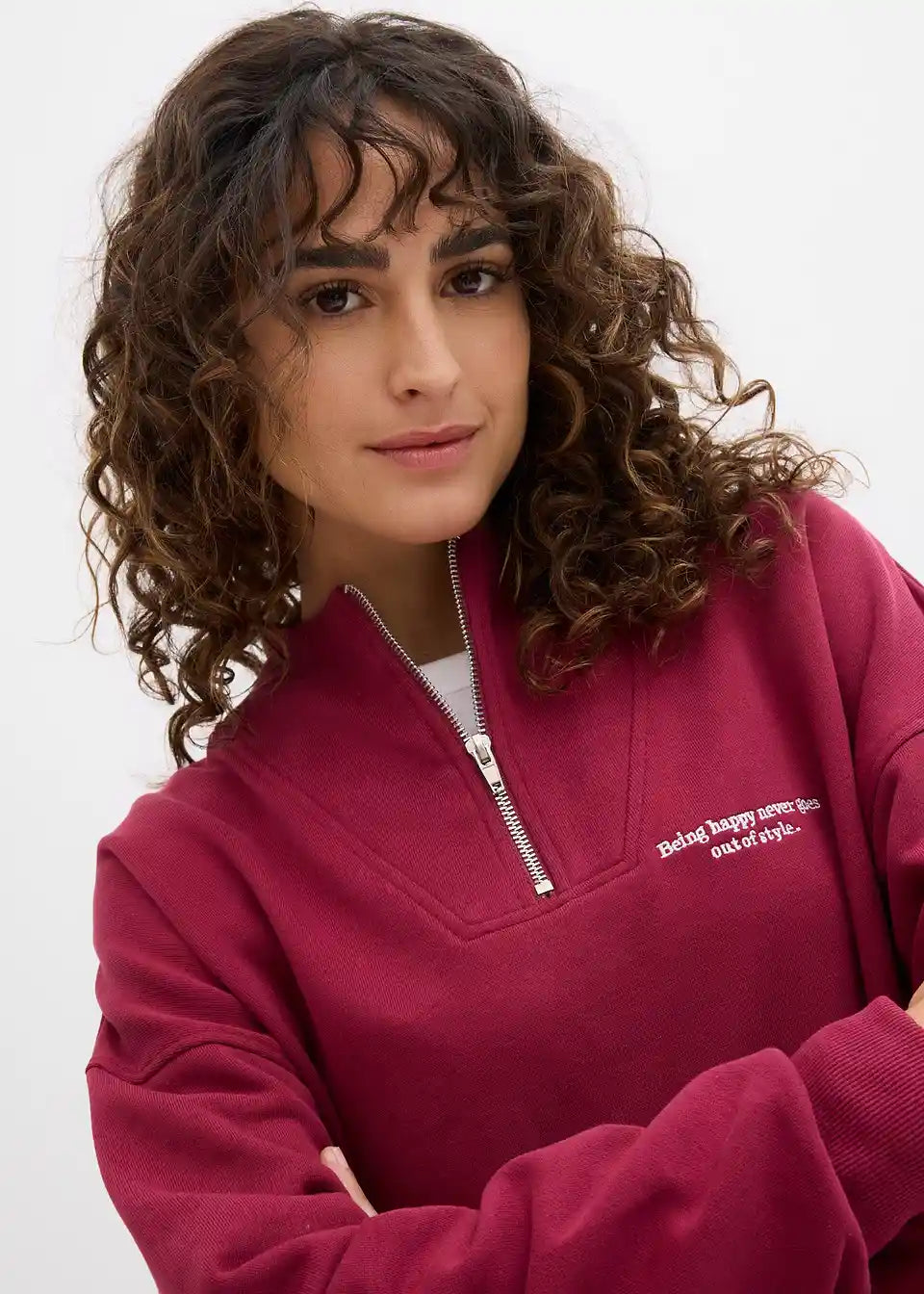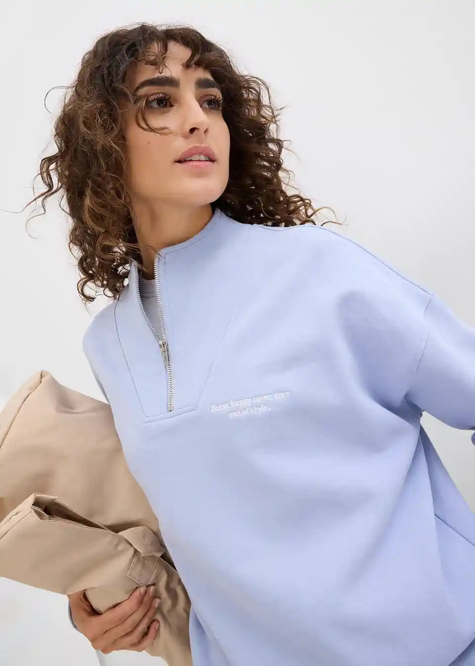 Modisches Oversize-Sweatshirt mit Reißverschluss und Stickerei
