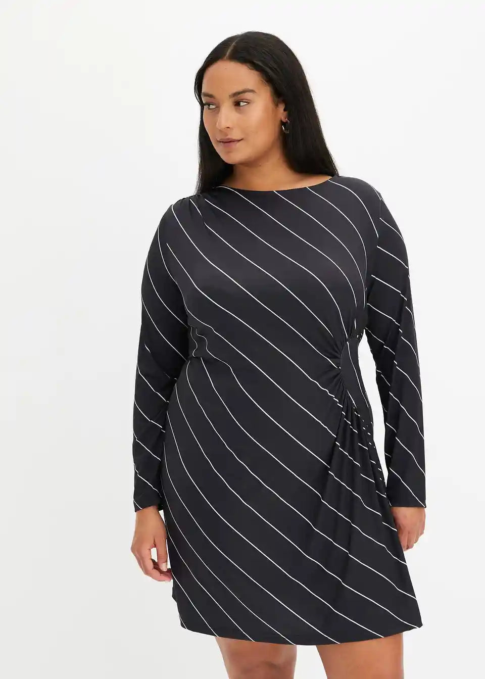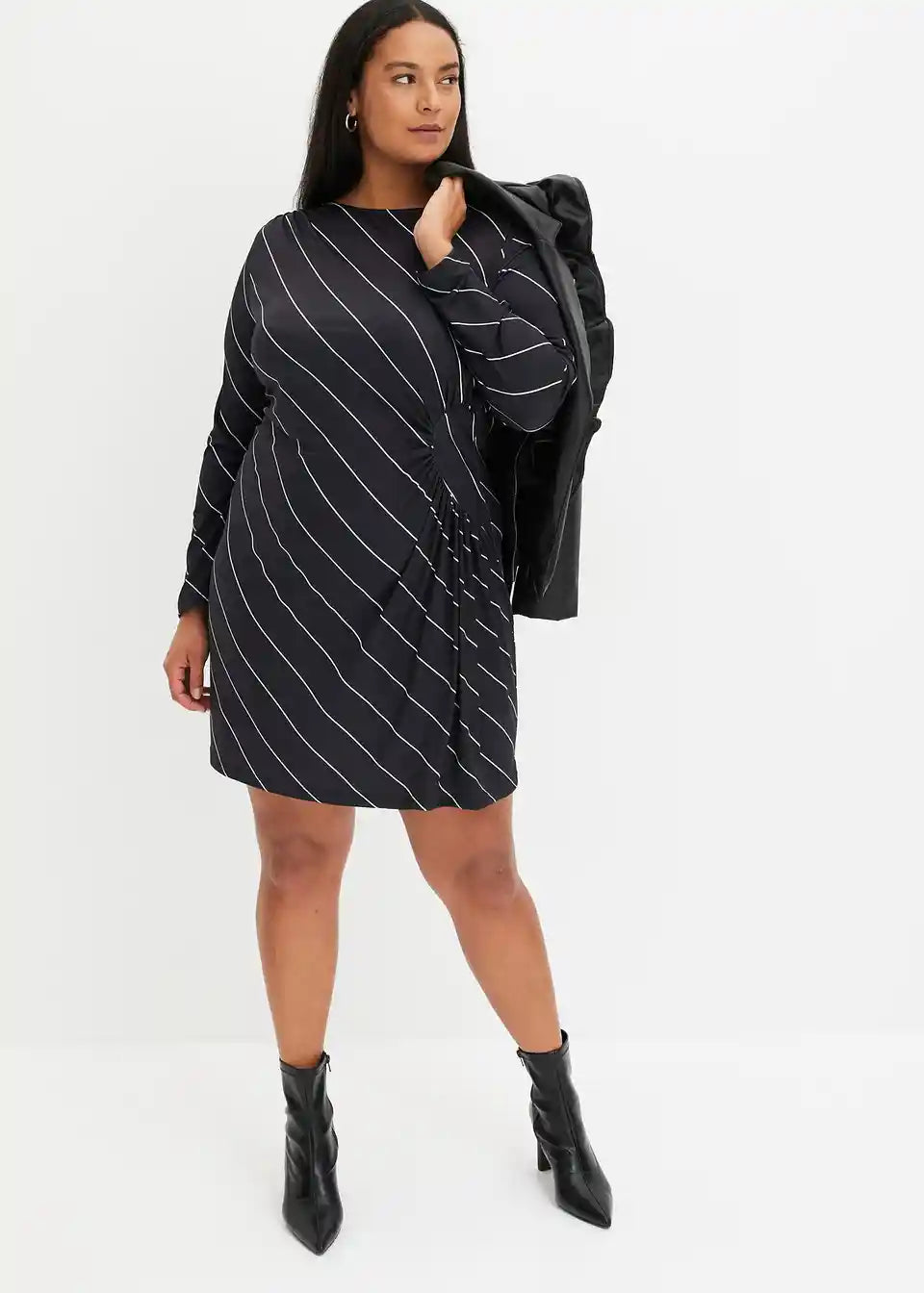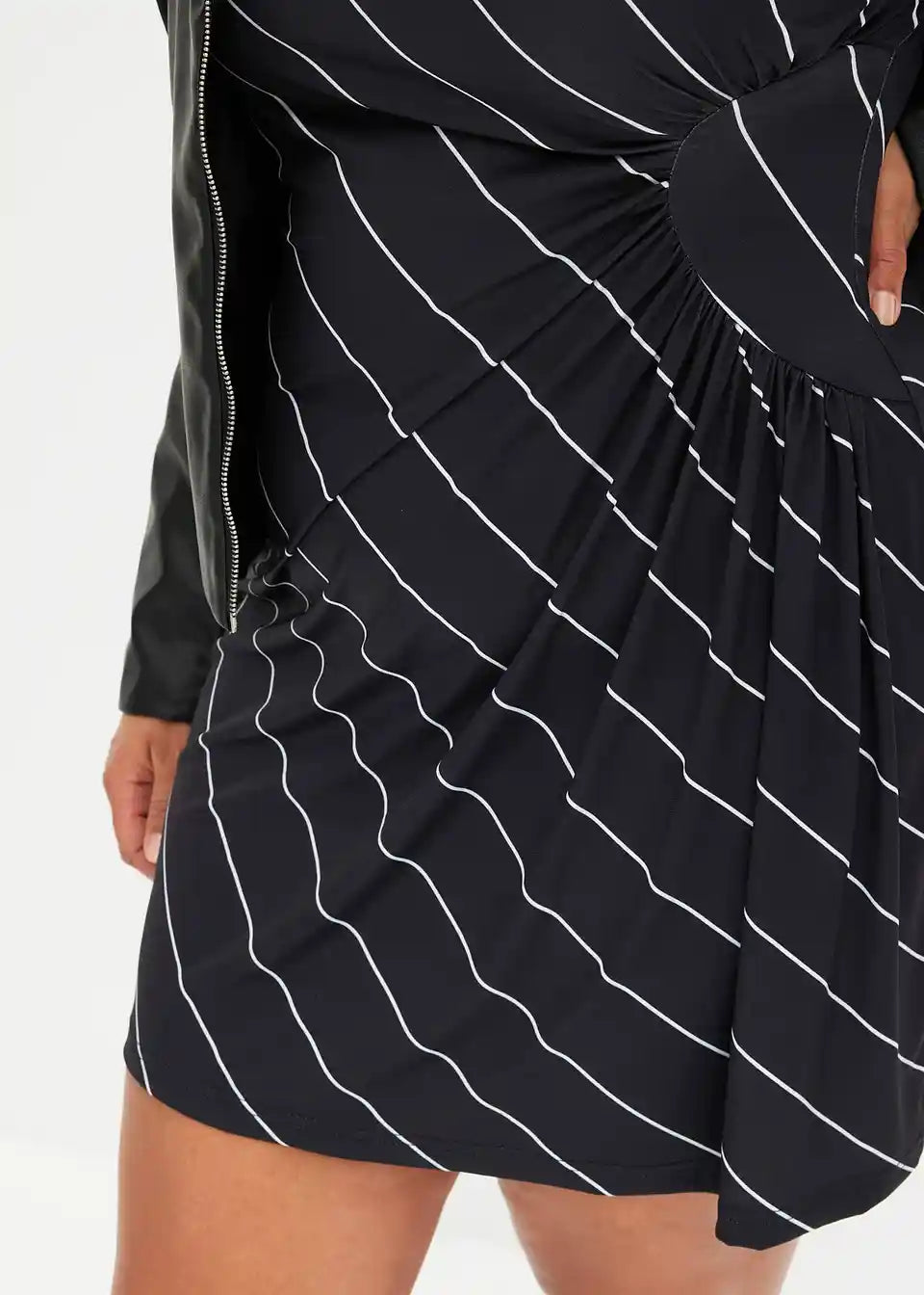 Auffallendes Kleid mit asymmetrischen Saum und Trompetenärmel