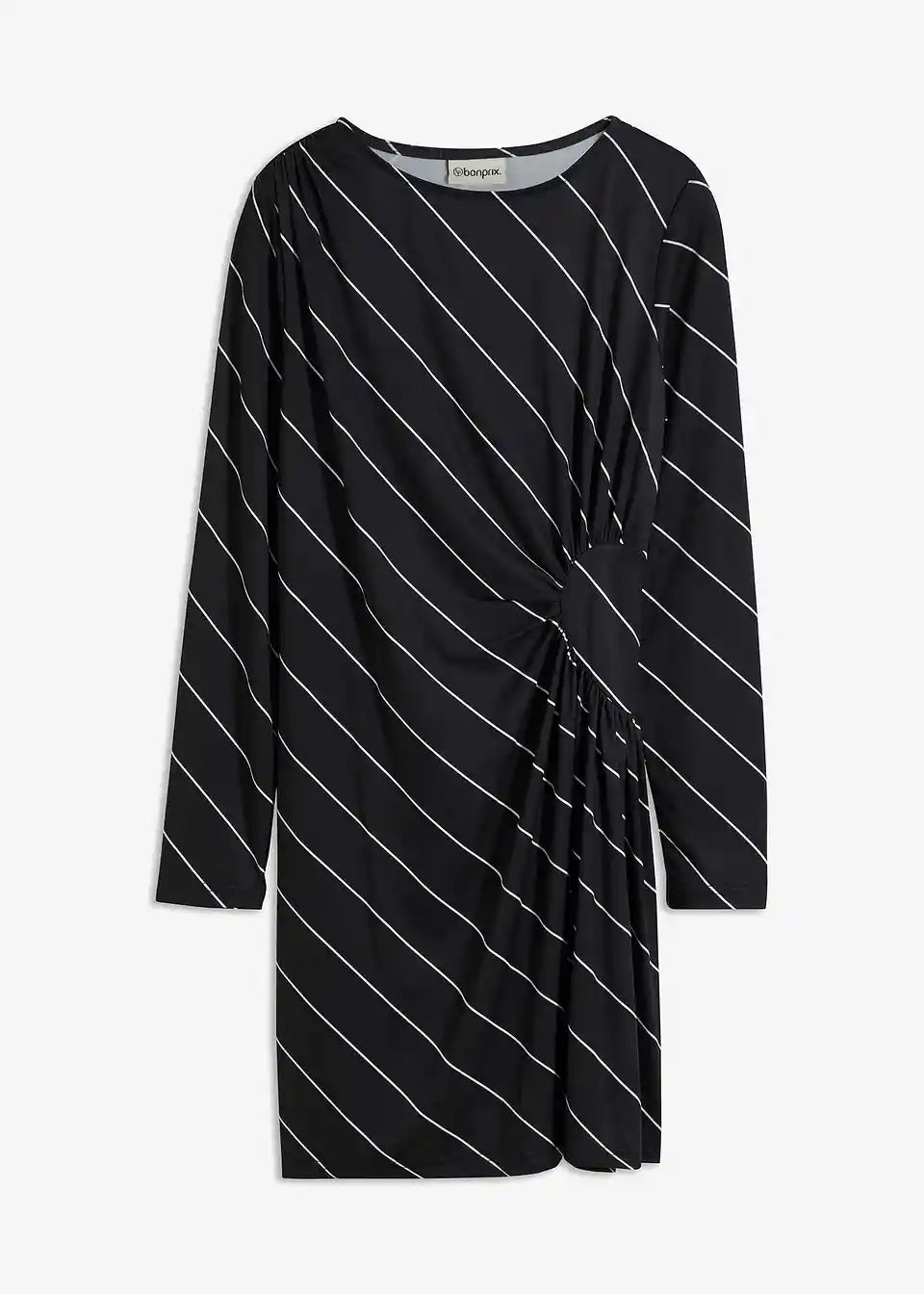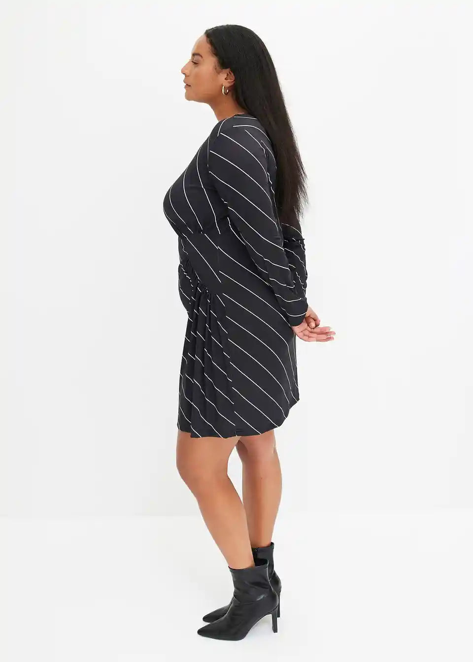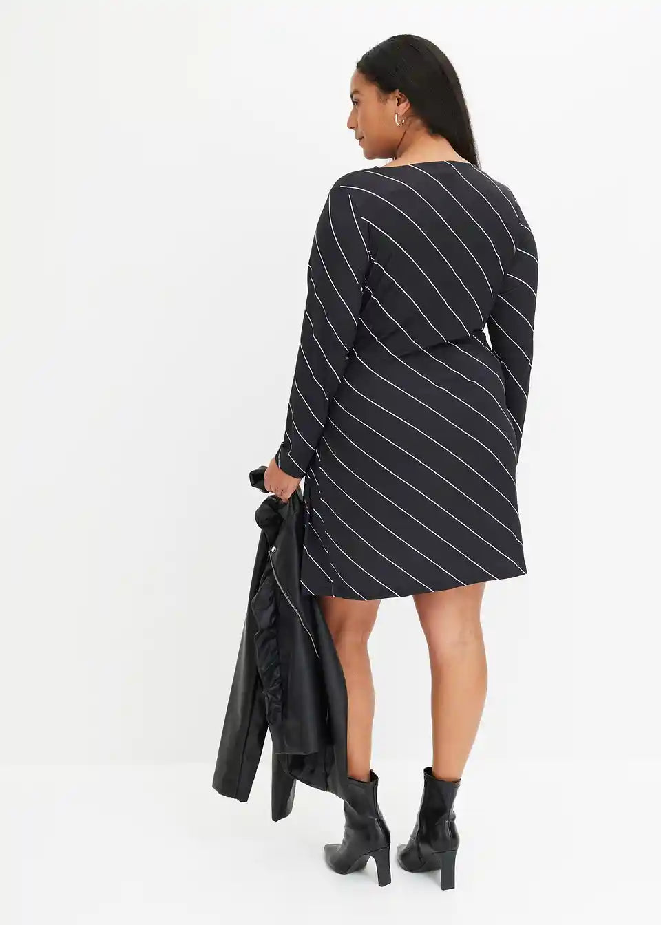 Auffallendes Kleid mit asymmetrischen Saum und Trompetenärmel