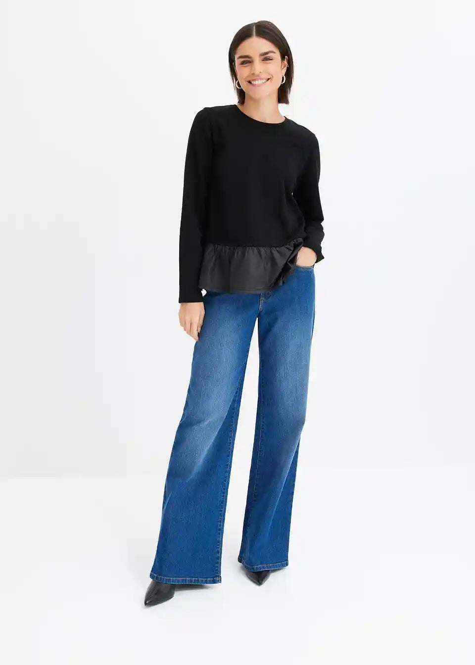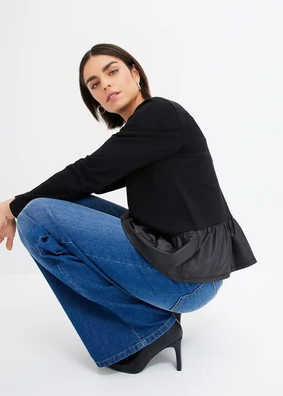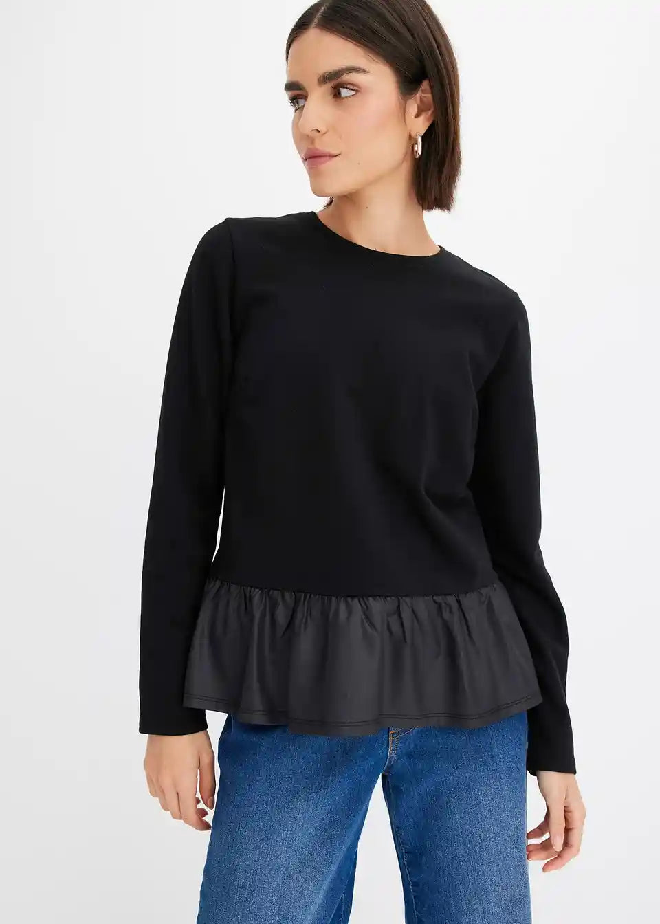 Shirt mit Lederimitat-Volant