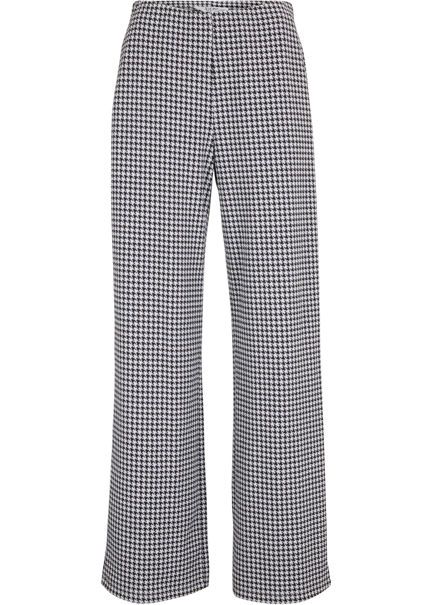 Stretch hlače s pepitastim vzorcem s širokimi hlačnicami