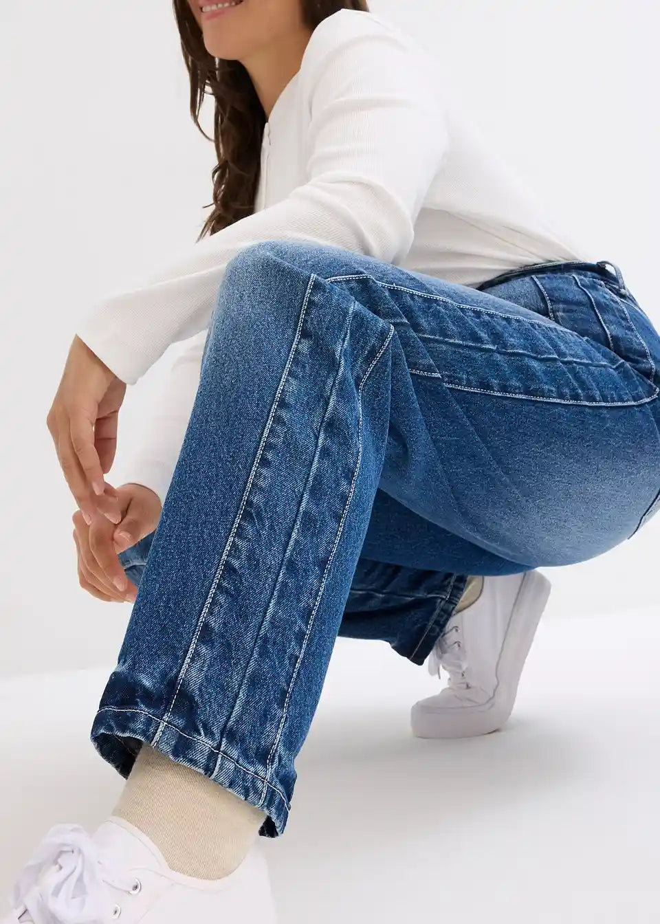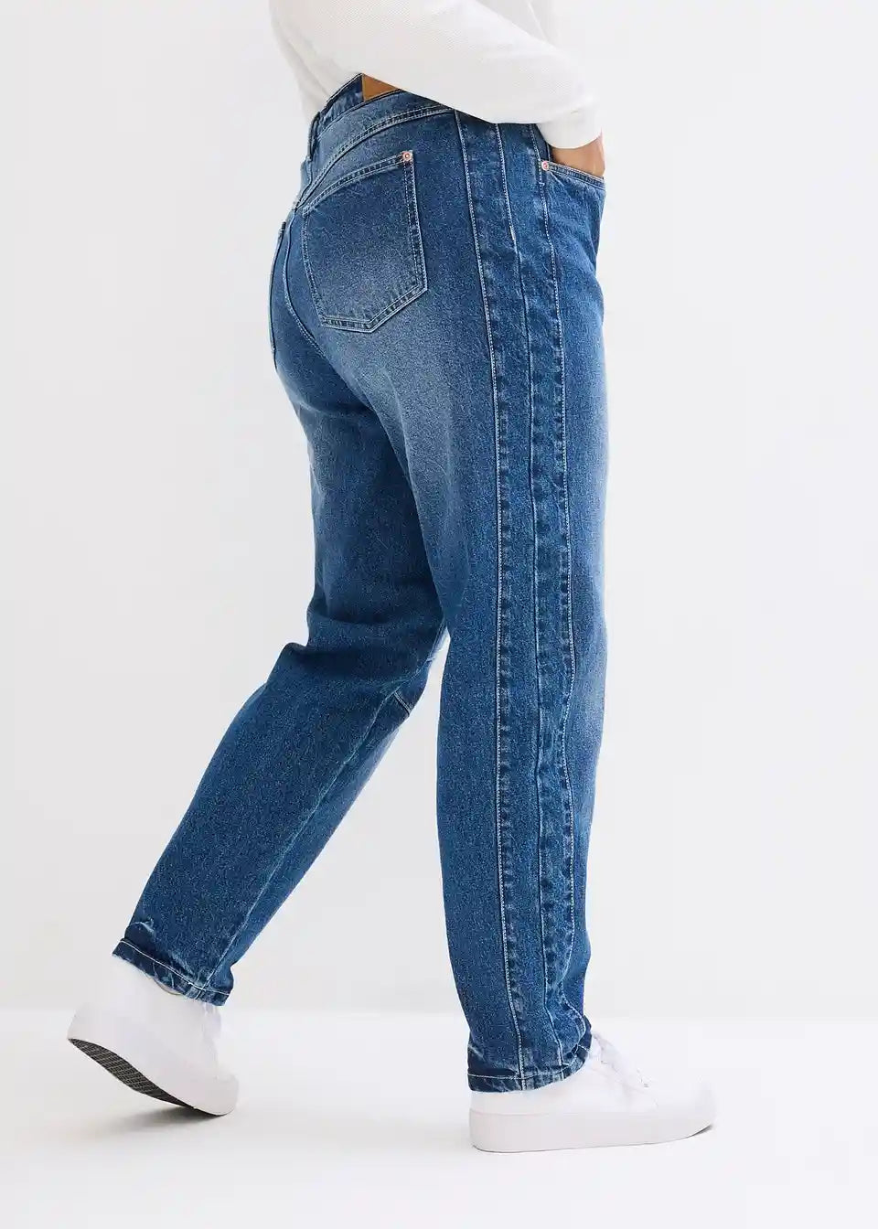 Hohe Mom Jeans mit aufgesetzten Nähten