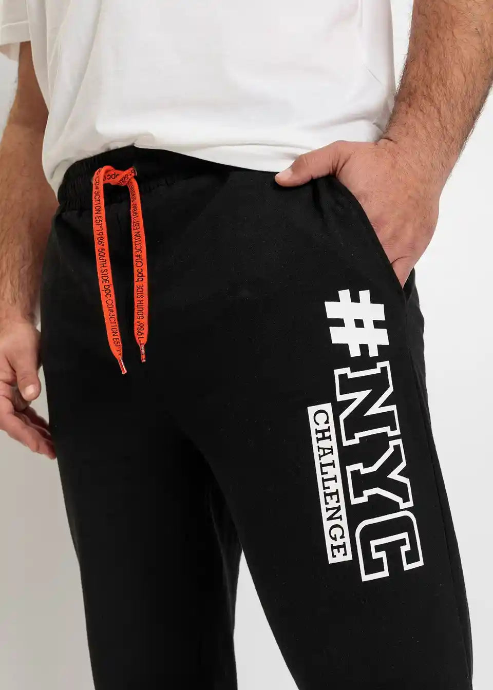 moderne Jogginghose mit Print vorne und Kontrastkordeln, innen weich angeraut